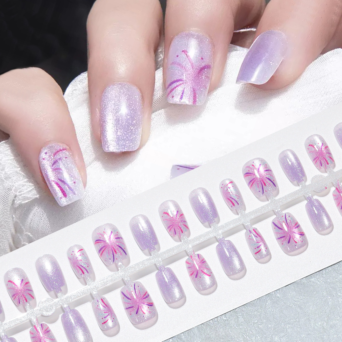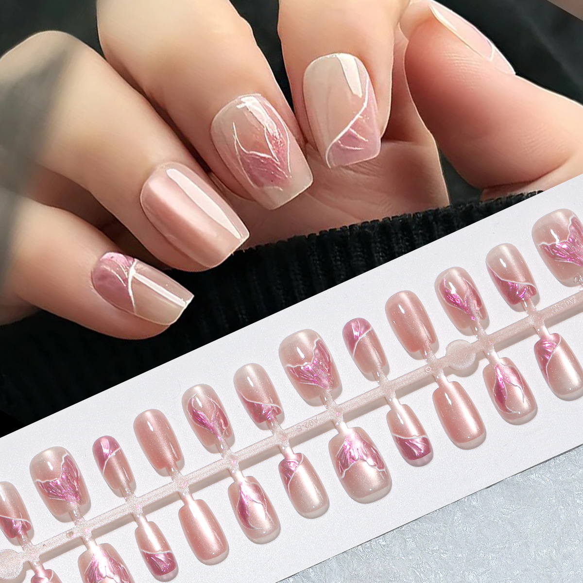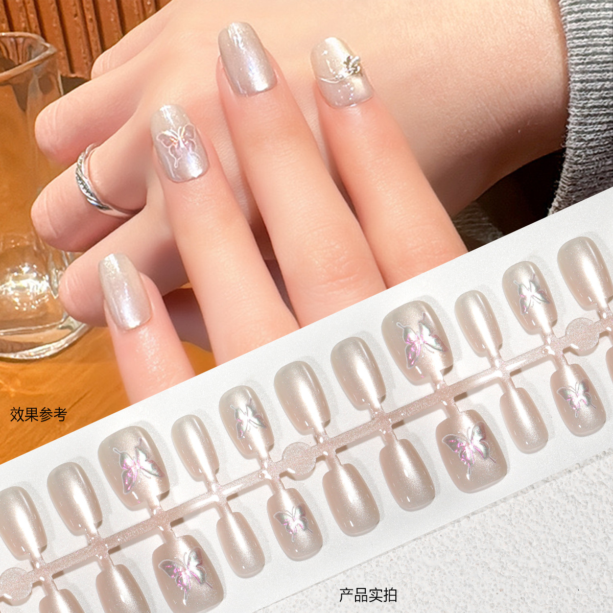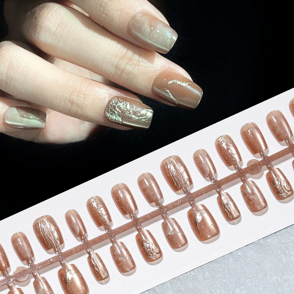30片猫眼短梯穿戴甲合集 DIY纯手工美甲片鎏金爆闪假指甲厂家直销
