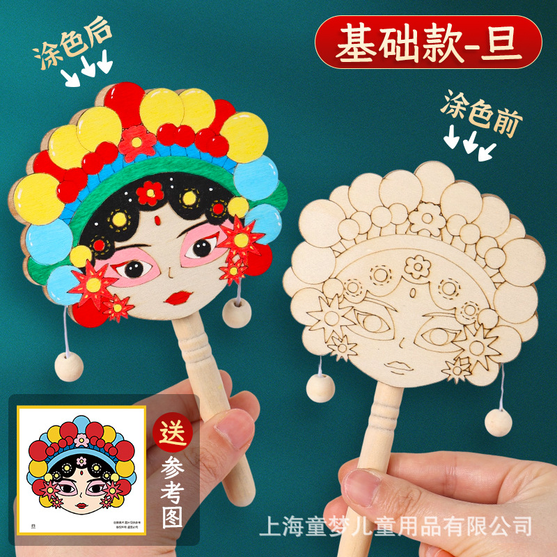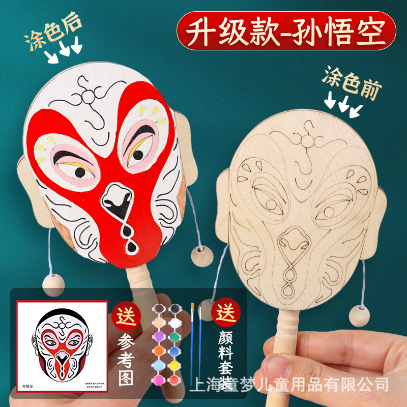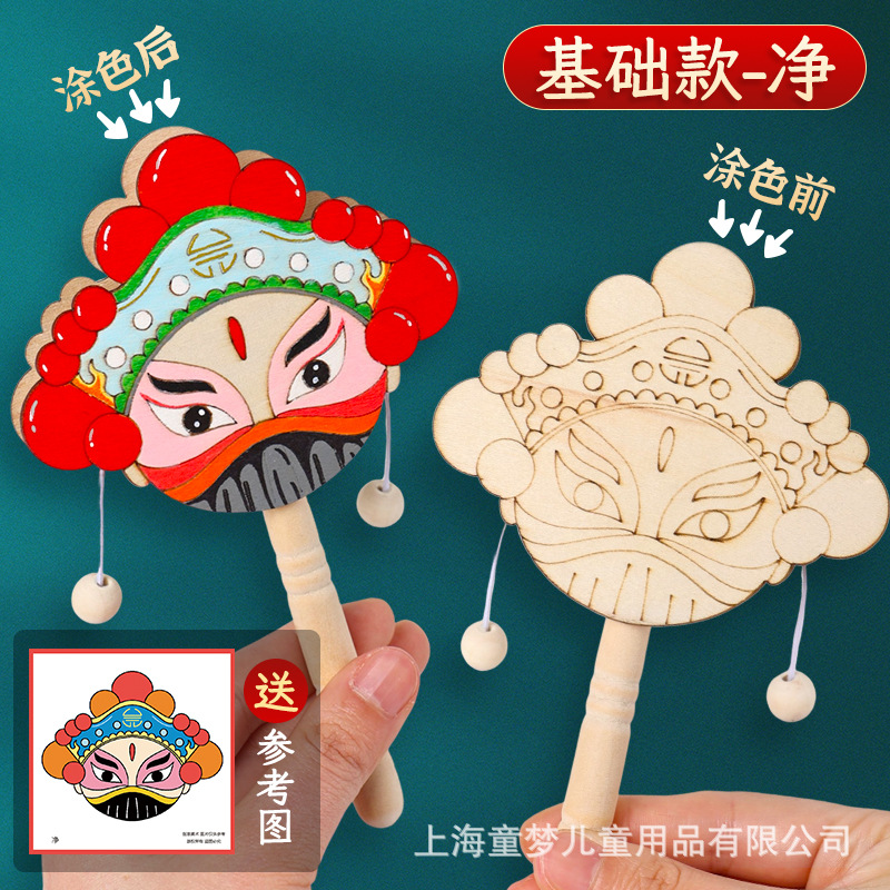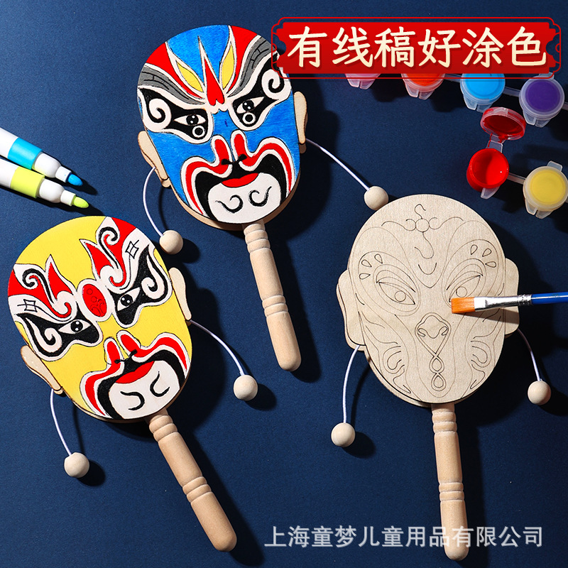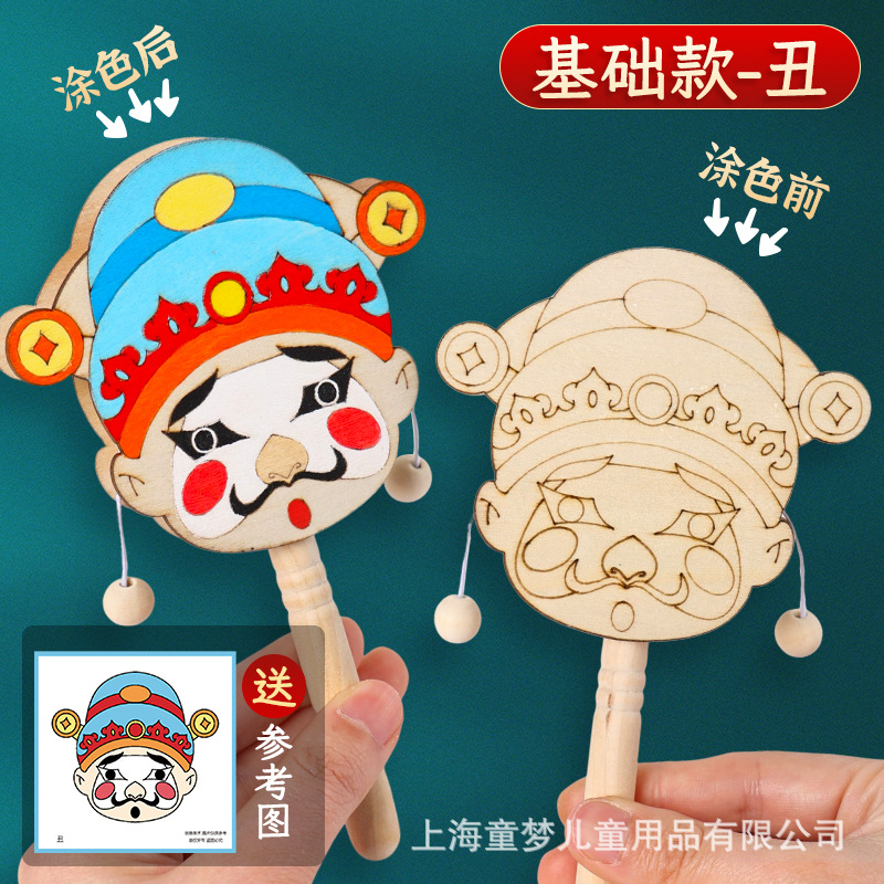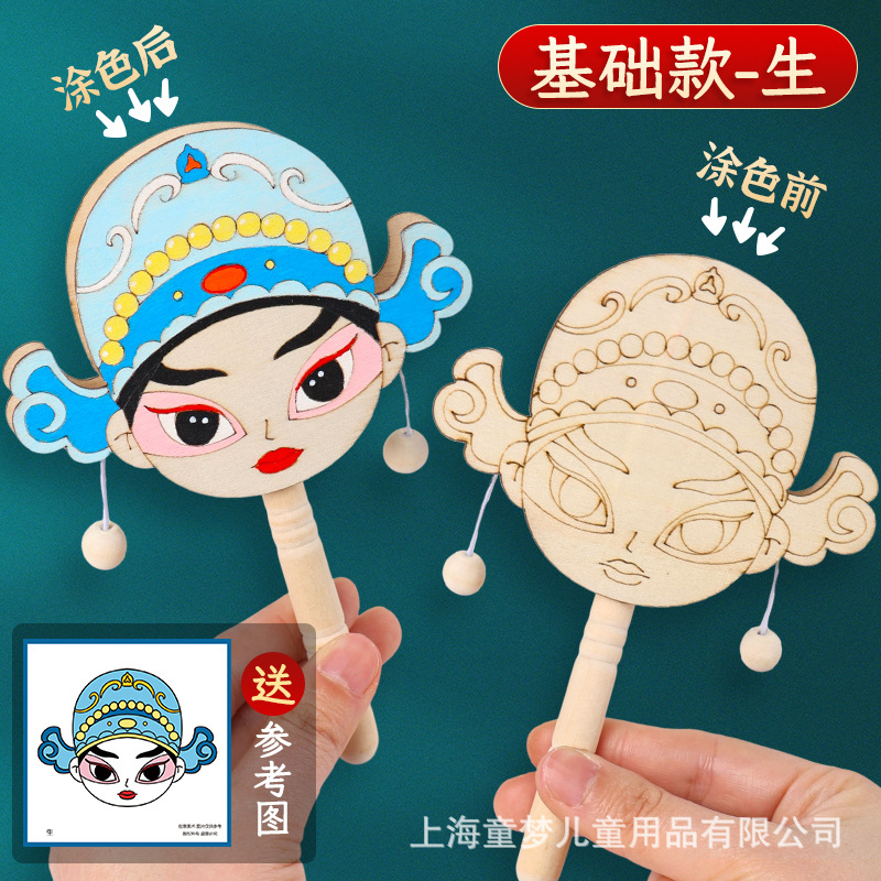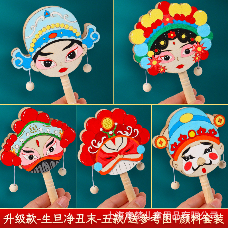 京剧脸谱拨浪鼓diy材料包传统非遗手工制作儿童手绘画幼儿园活动
