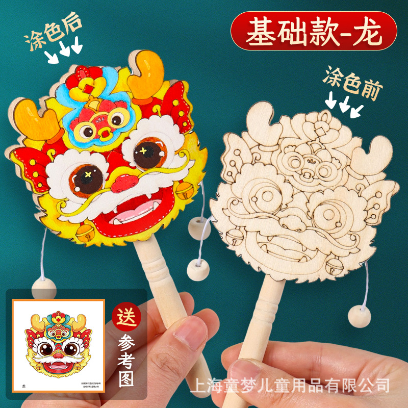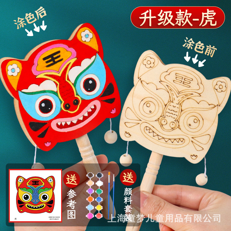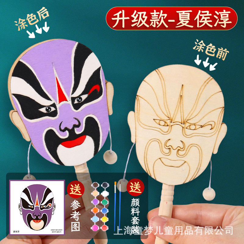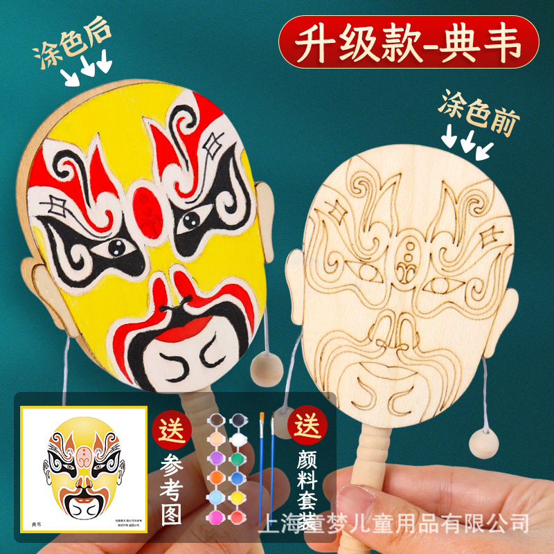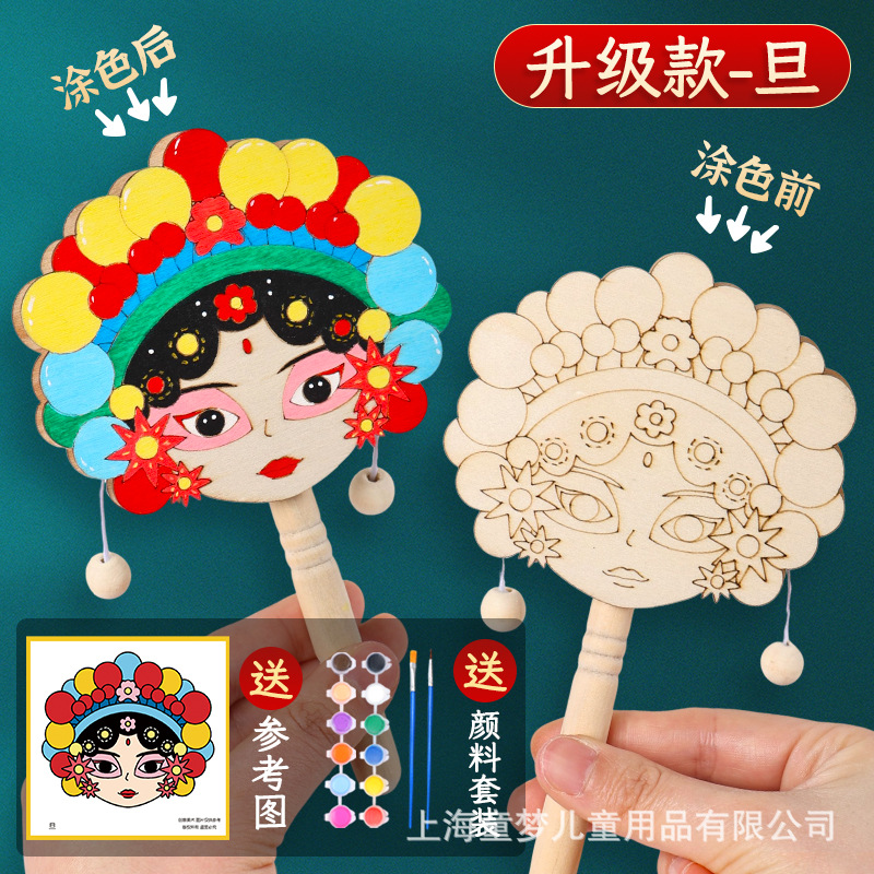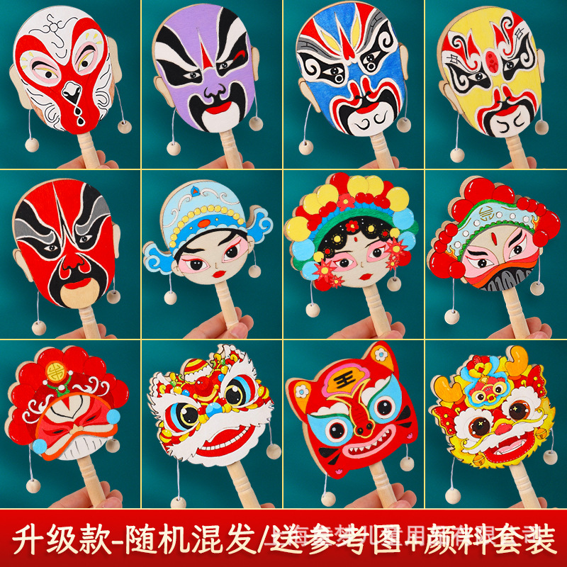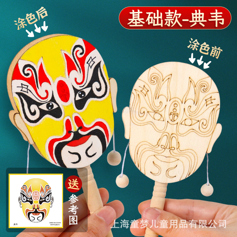 京剧脸谱拨浪鼓diy材料包传统非遗手工制作儿童手绘画幼儿园活动