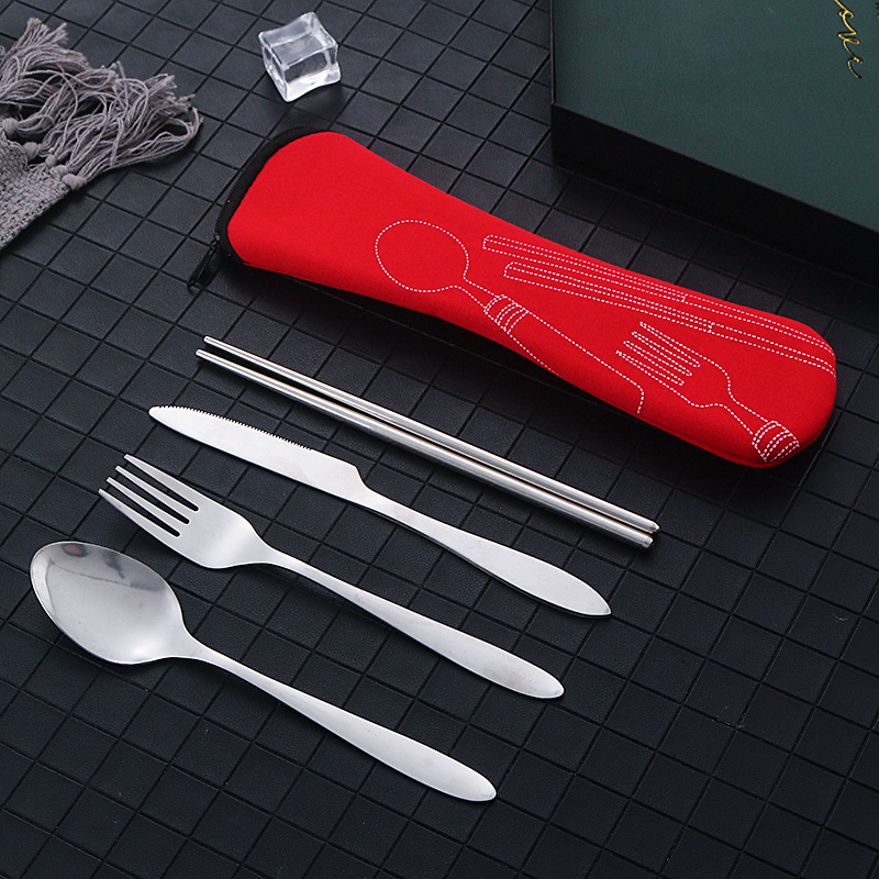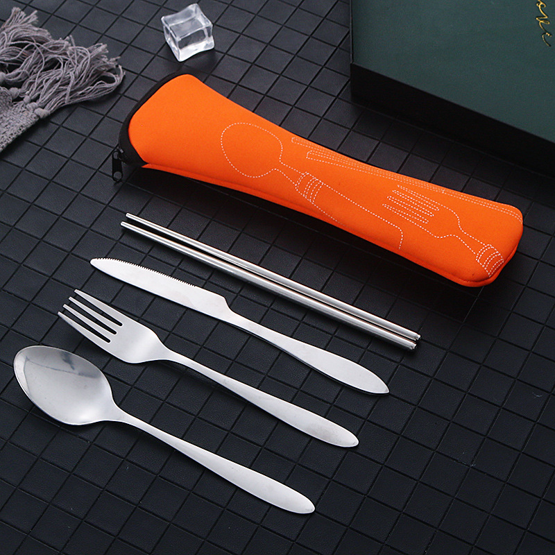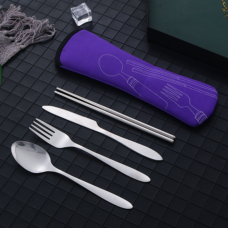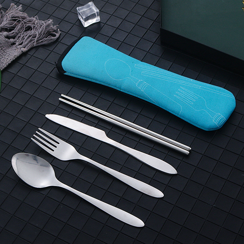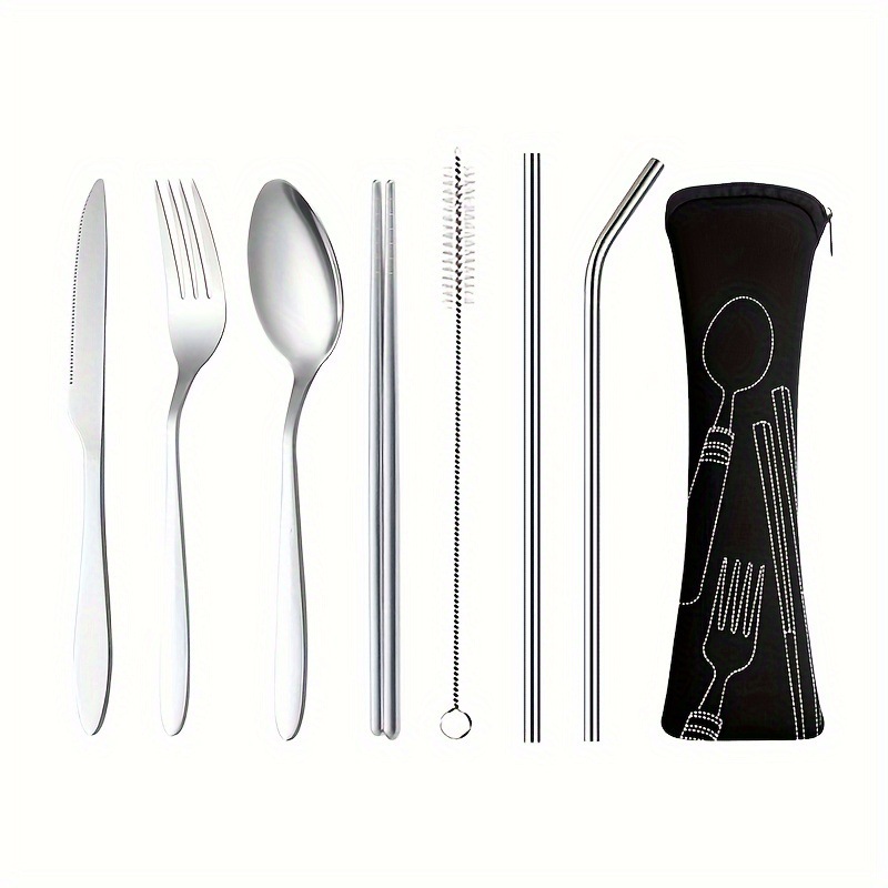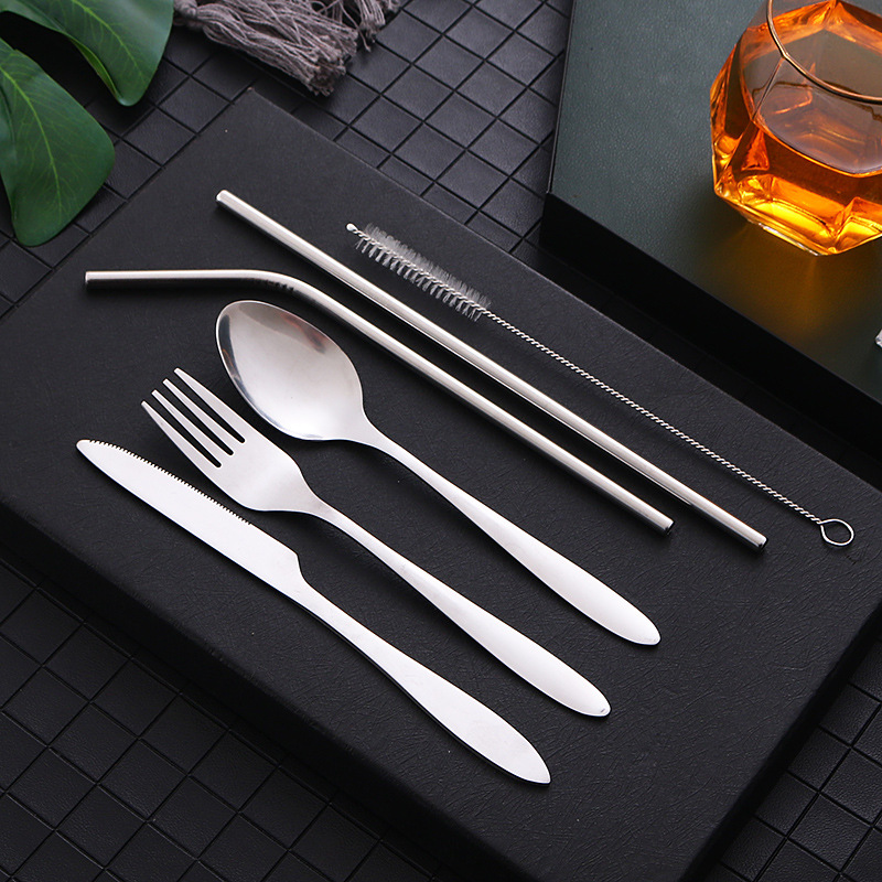 不锈钢便携餐具刀叉勺筷子吸管七件套学生户外餐具收纳袋礼品套装