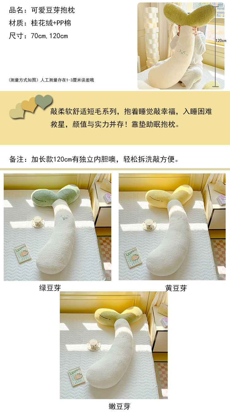 可爱豆芽长条抱枕女生睡觉床上侧睡夹腿靠枕孕妇枕头床头靠垫