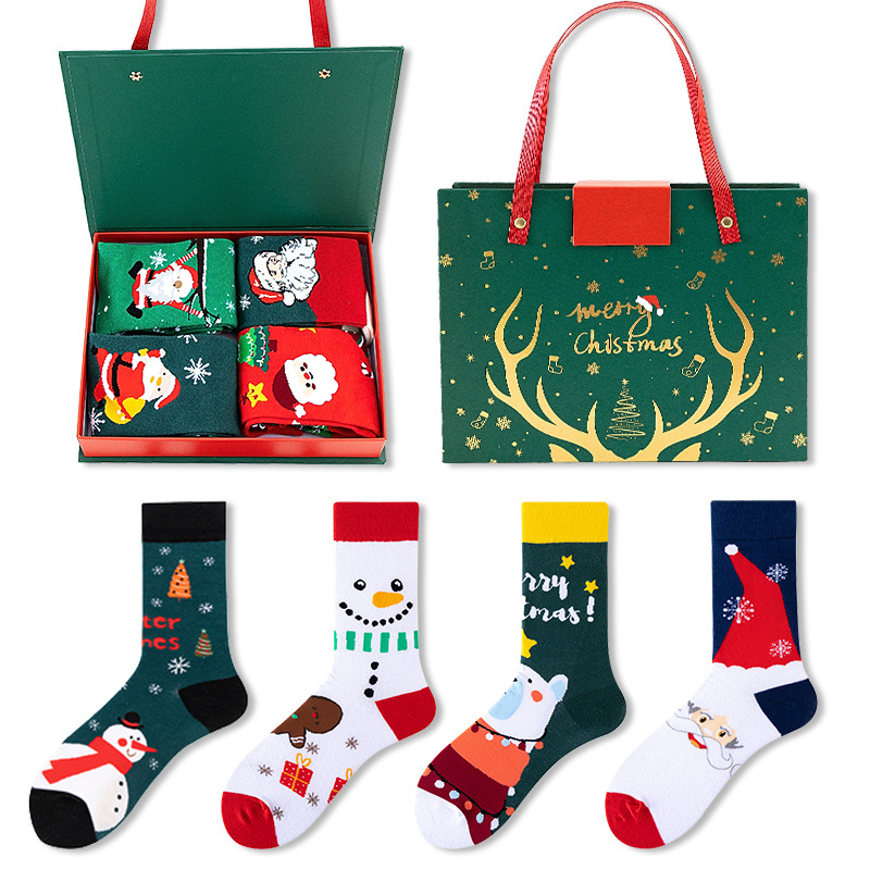 4双圣诞袜礼盒套装欧美跨境圣诞老人雪人卡通棉袜圣诞袜子批发