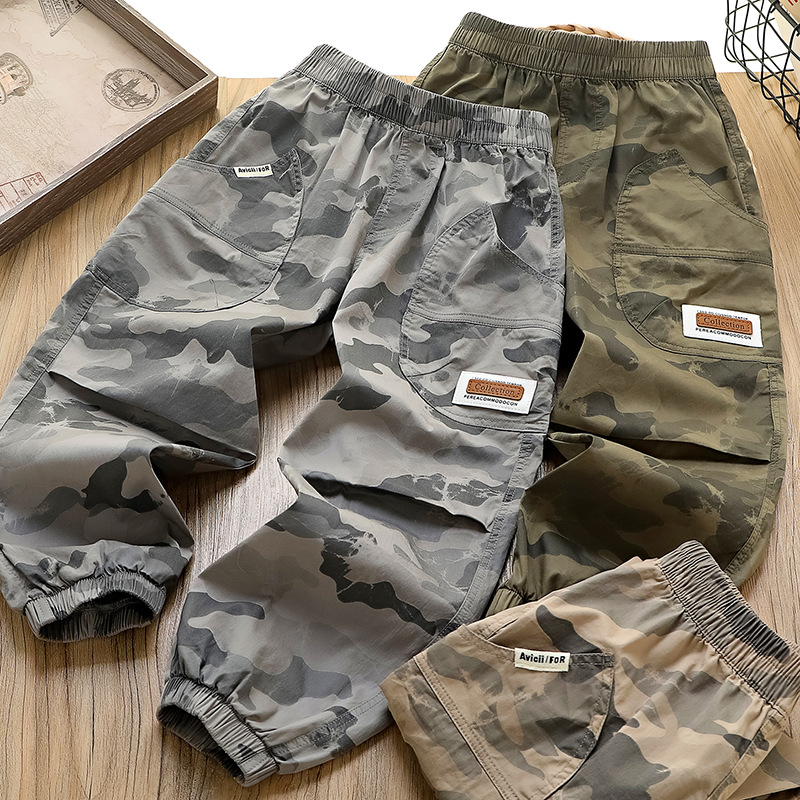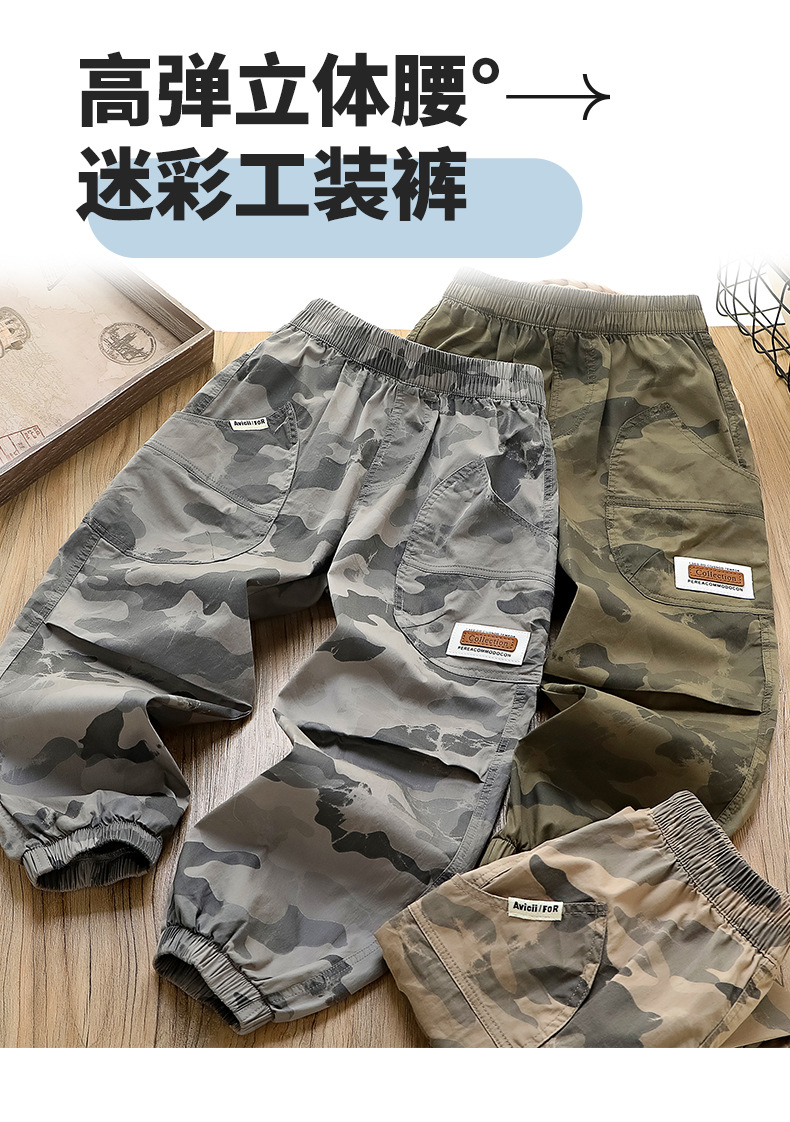 儿童迷彩男童裤子2025夏季新款中大童男孩防蚊裤速干洋气薄款长裤
