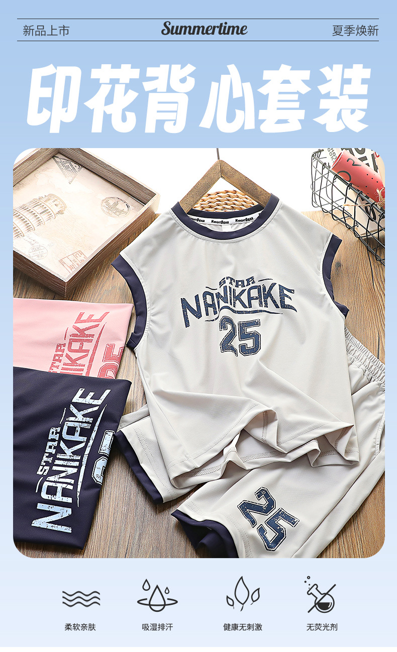 男童夏季背心套装薄款2025新款儿童速干无袖衣服男孩篮球服两件套