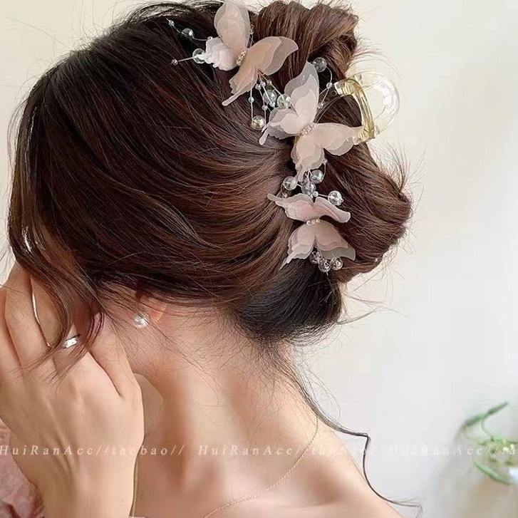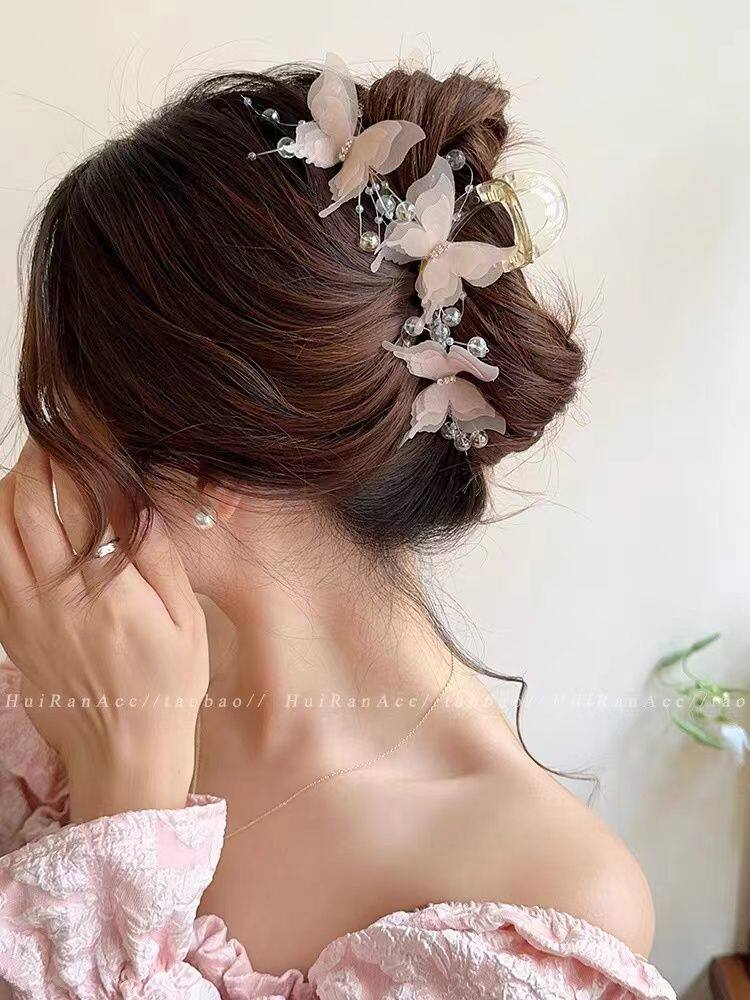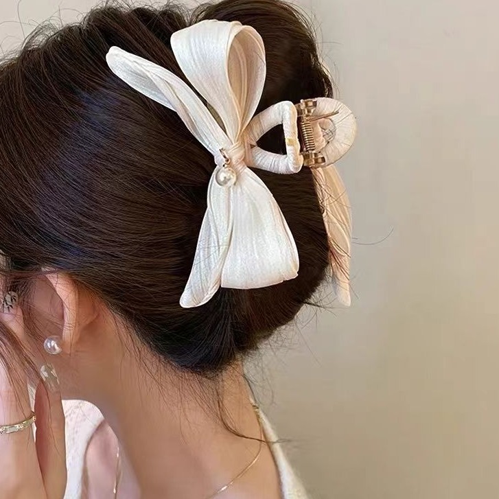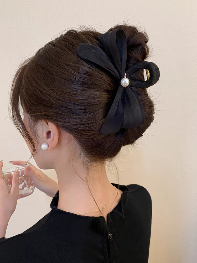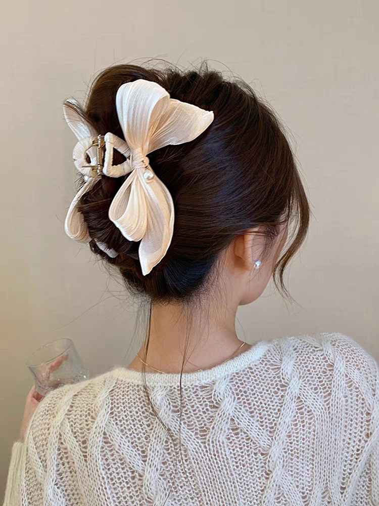法式优雅蝴蝶结珍珠抓夹女高级感后脑勺盘发发夹早春温柔气质发饰