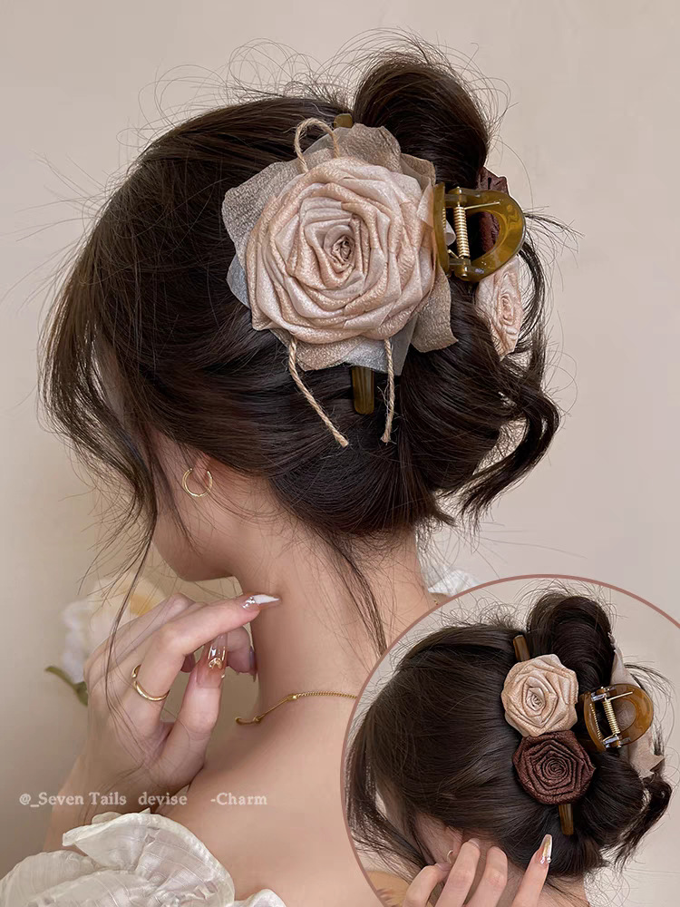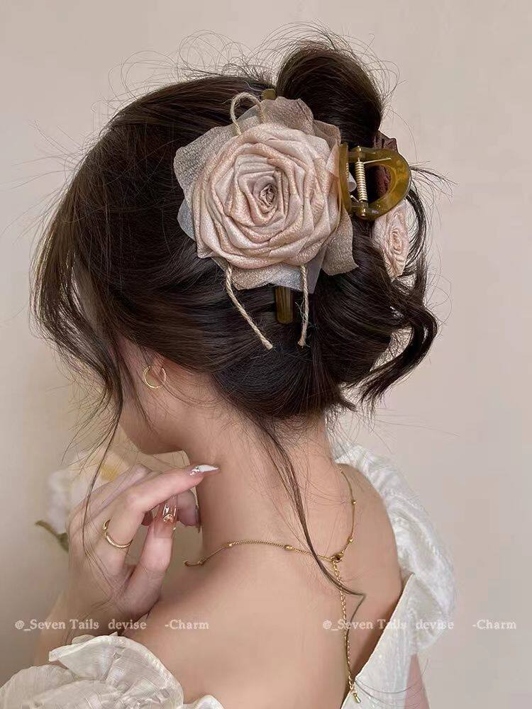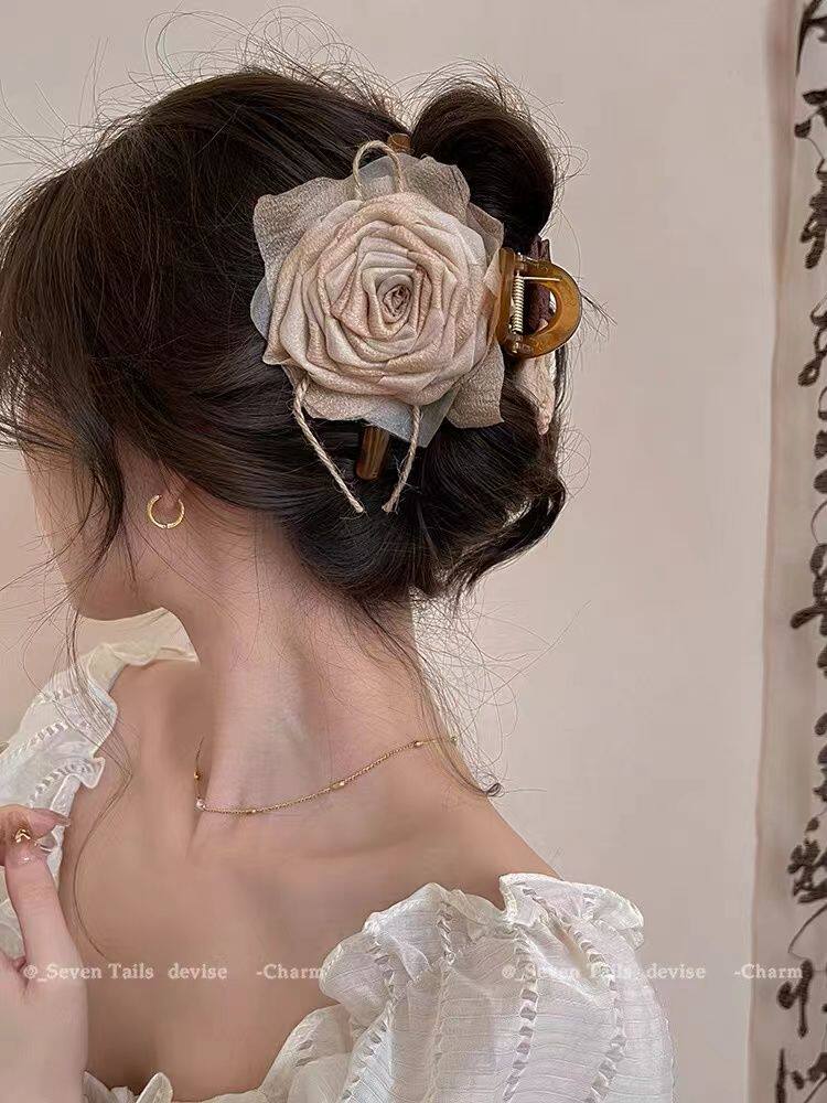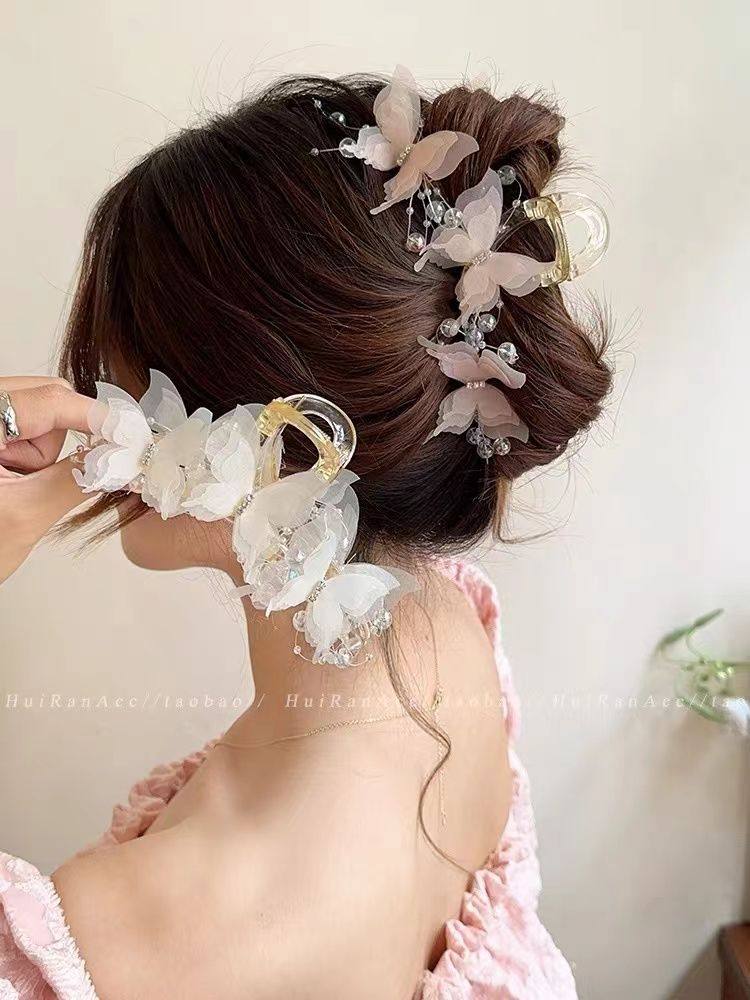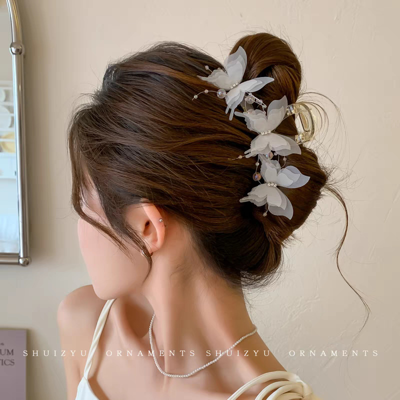 法式优雅蝴蝶结珍珠抓夹女高级感后脑勺盘发发夹早春温柔气质发饰