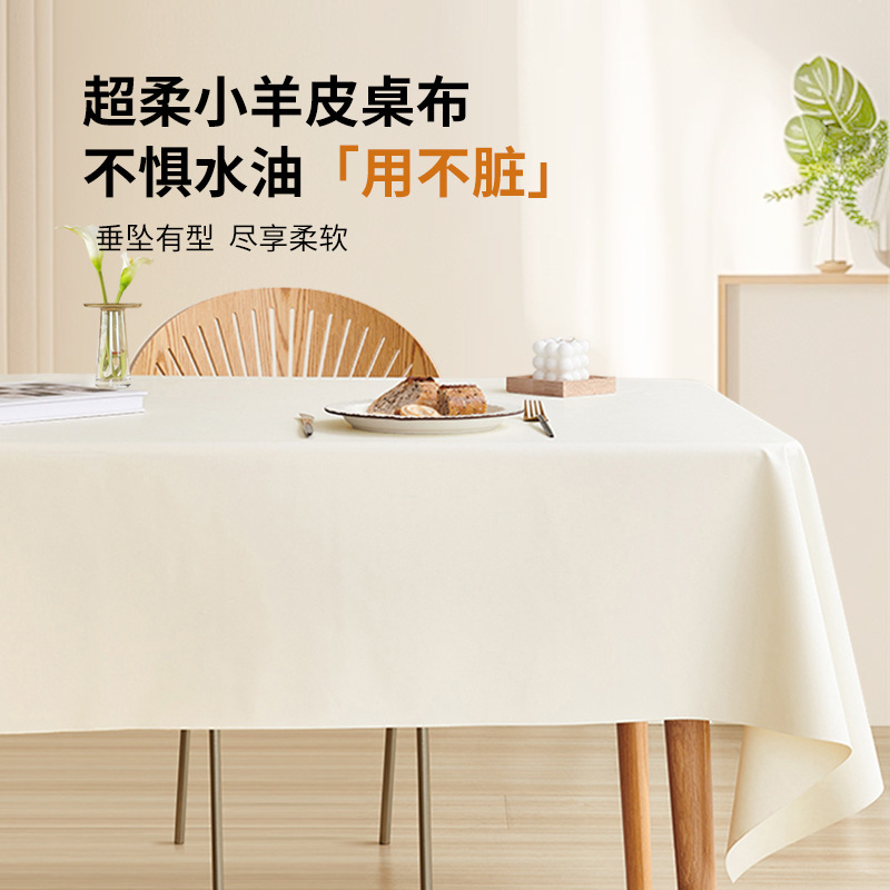 小羊皮白桌布轻奢高级感免洗防水防油茶几桌垫家用餐桌布网红台布