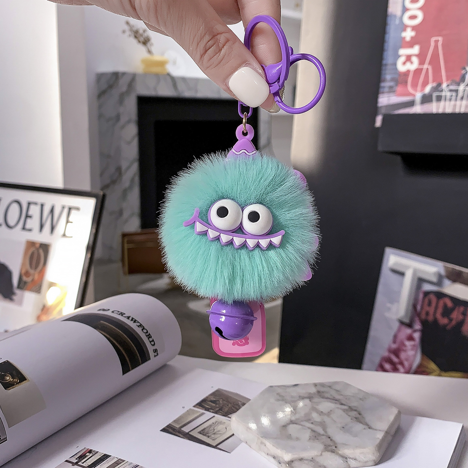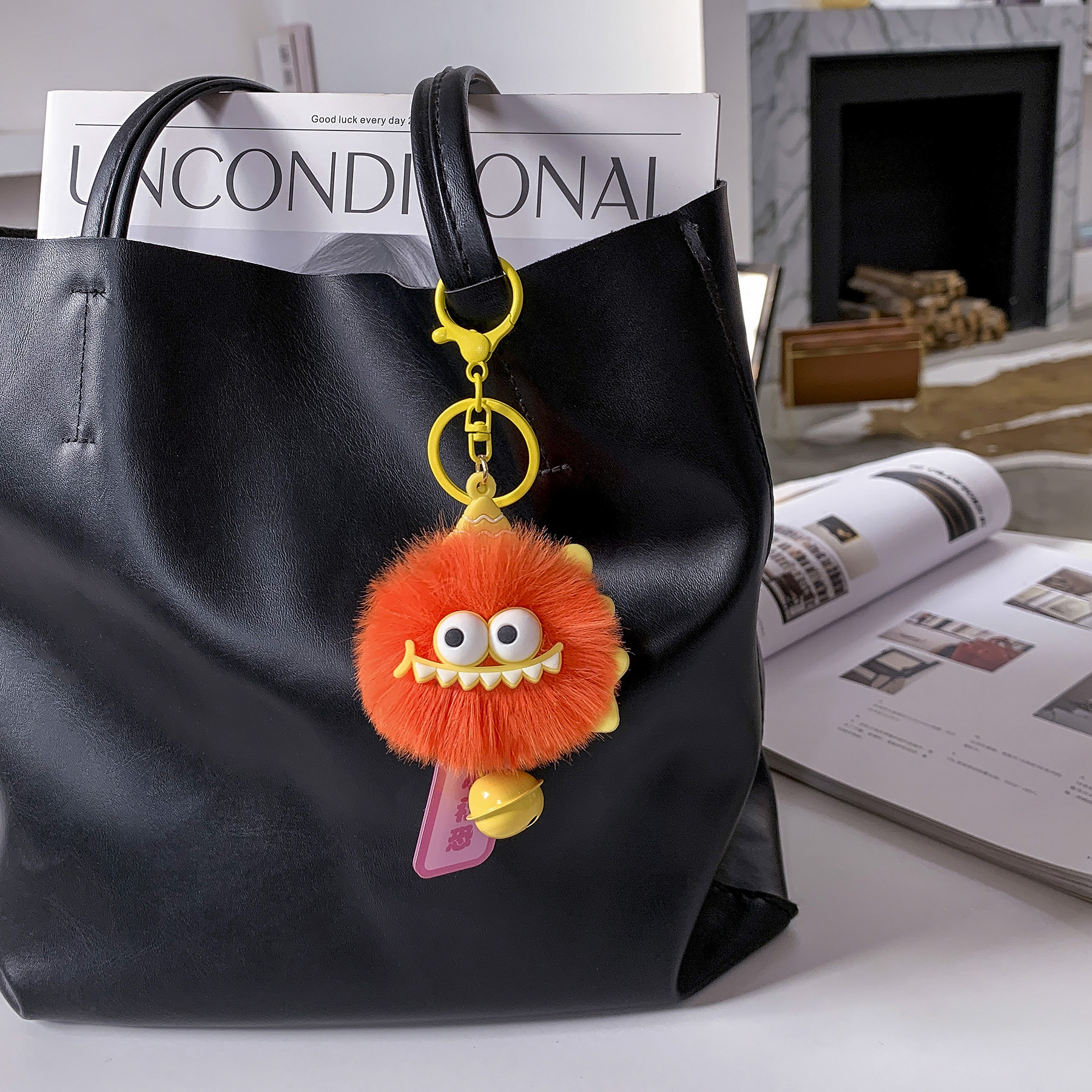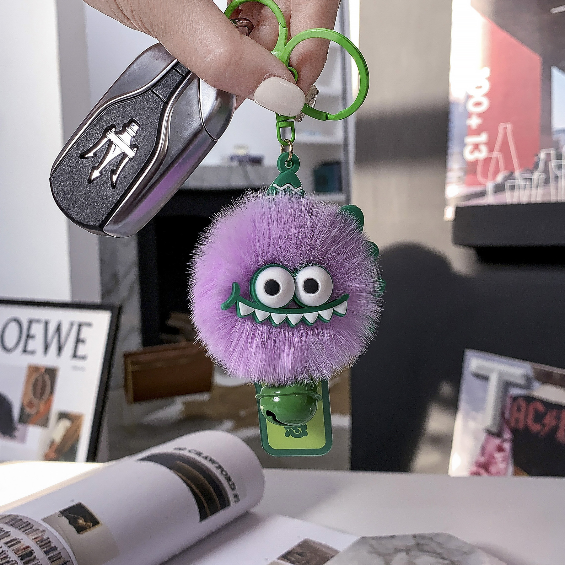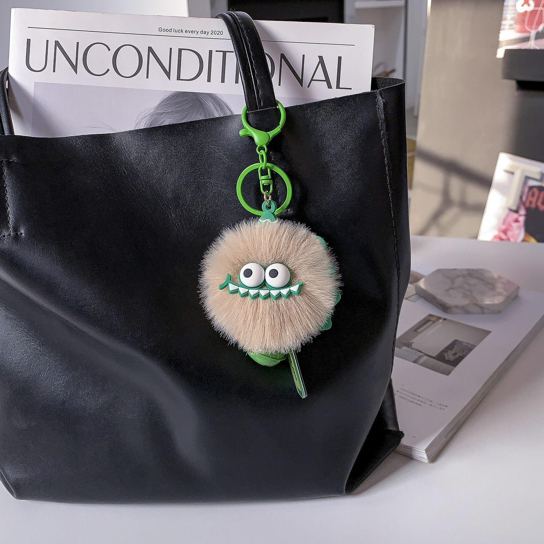 仿兔毛钥匙扣皮草挂件毛绒可爱小社恐恐龙铃铛包挂件手机