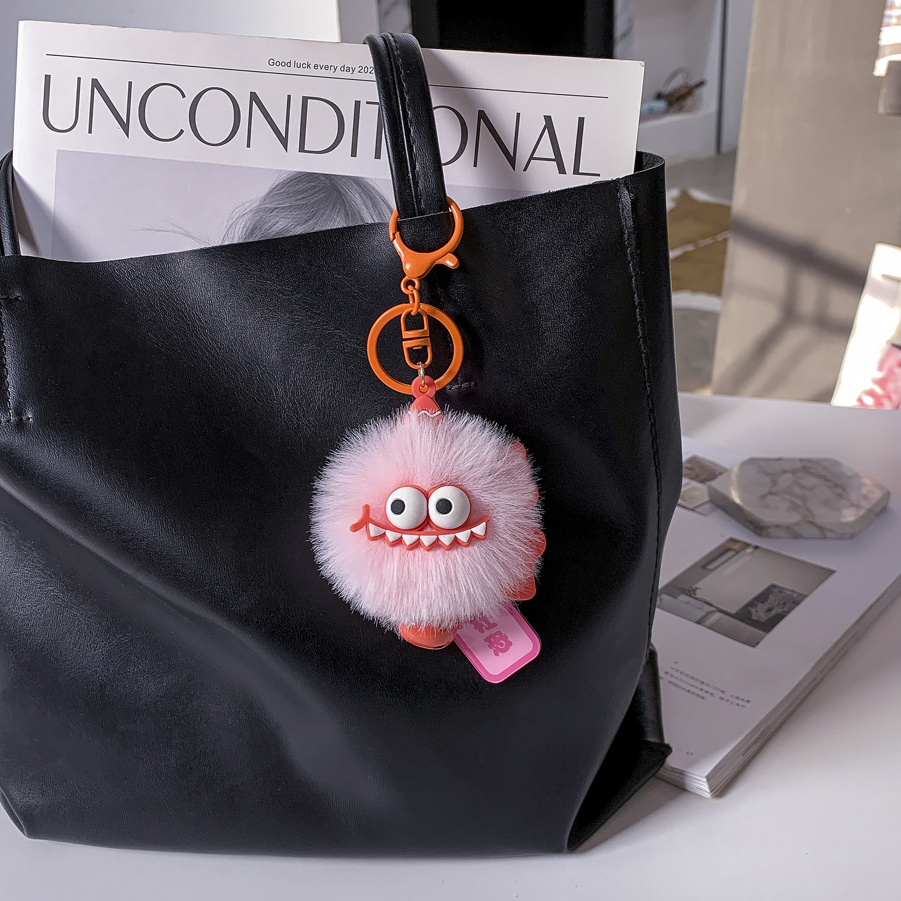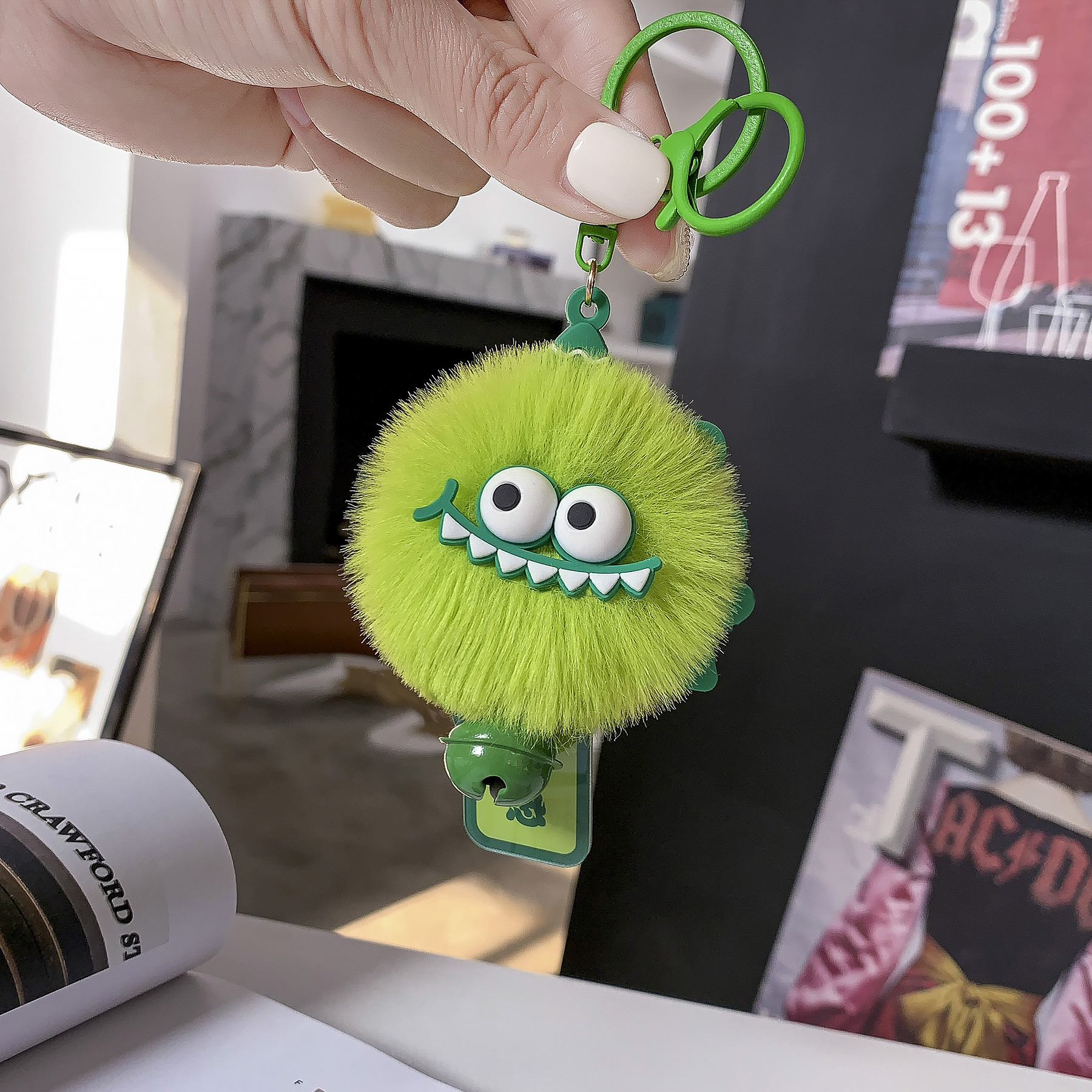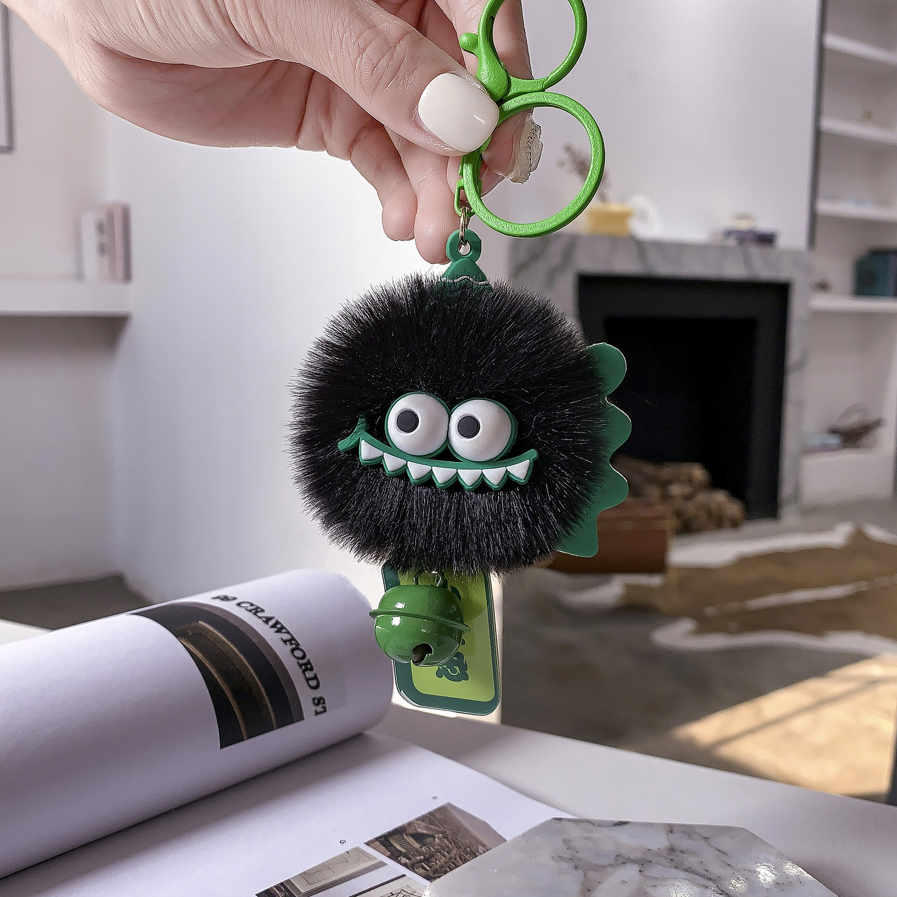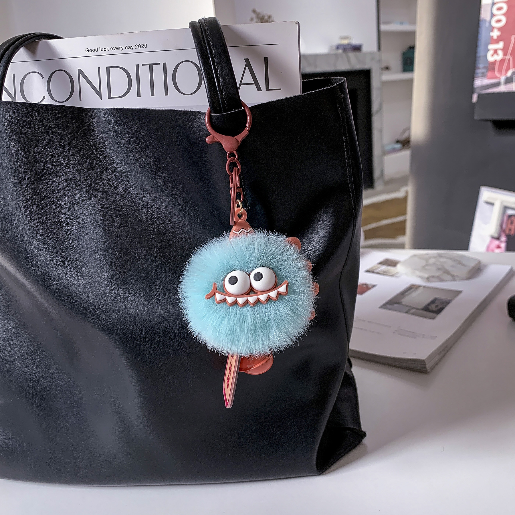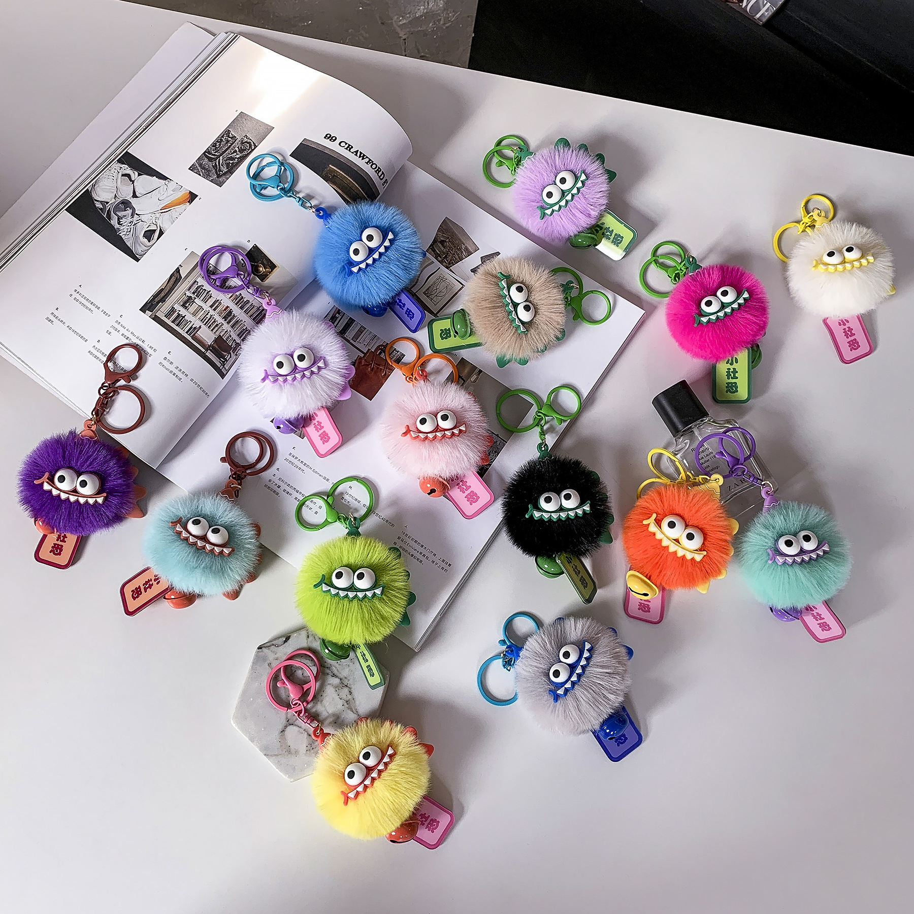 仿兔毛钥匙扣皮草挂件毛绒可爱小社恐恐龙铃铛包挂件手机