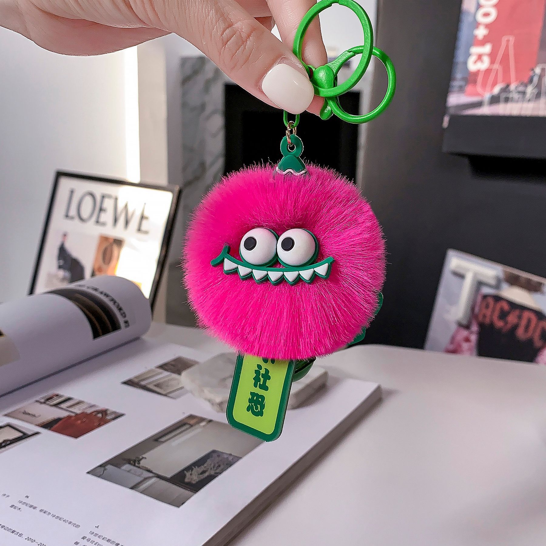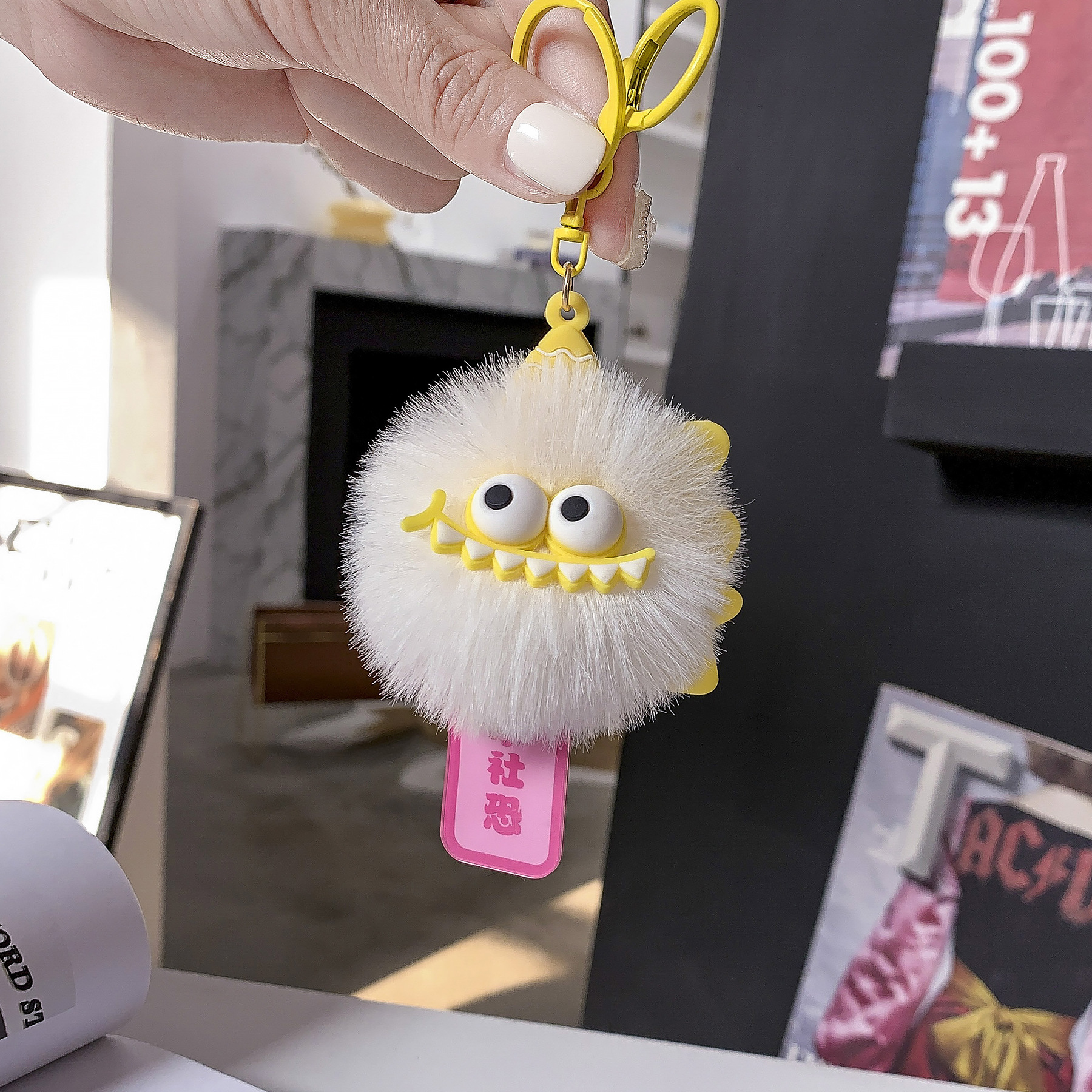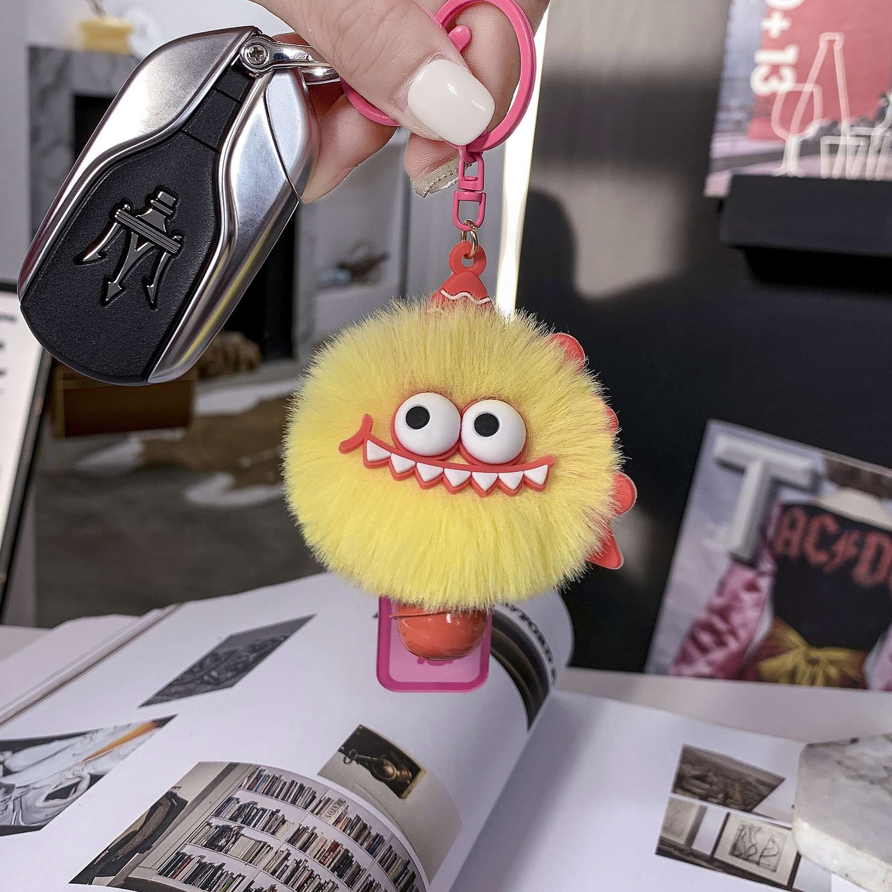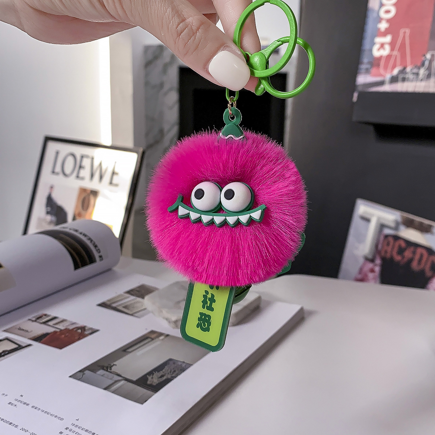 仿兔毛钥匙扣皮草挂件毛绒可爱小社恐恐龙铃铛包挂件手机