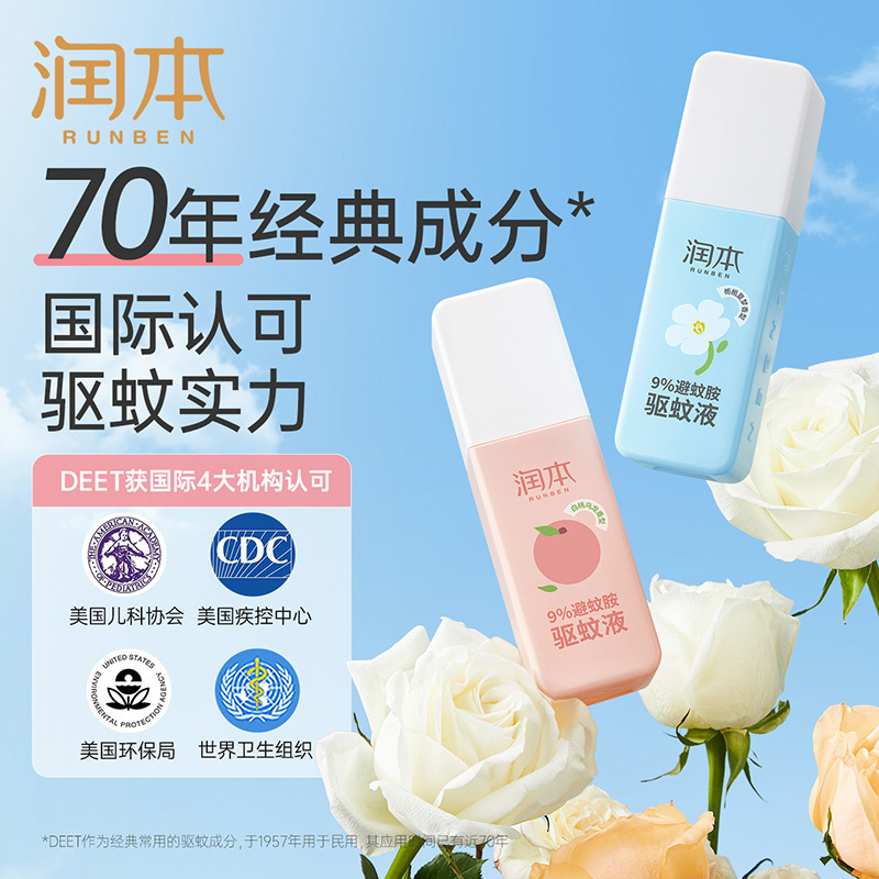 润本9%避蚊胺驱蚊液75ml*喷雾宝宝户外随身便携两款香型