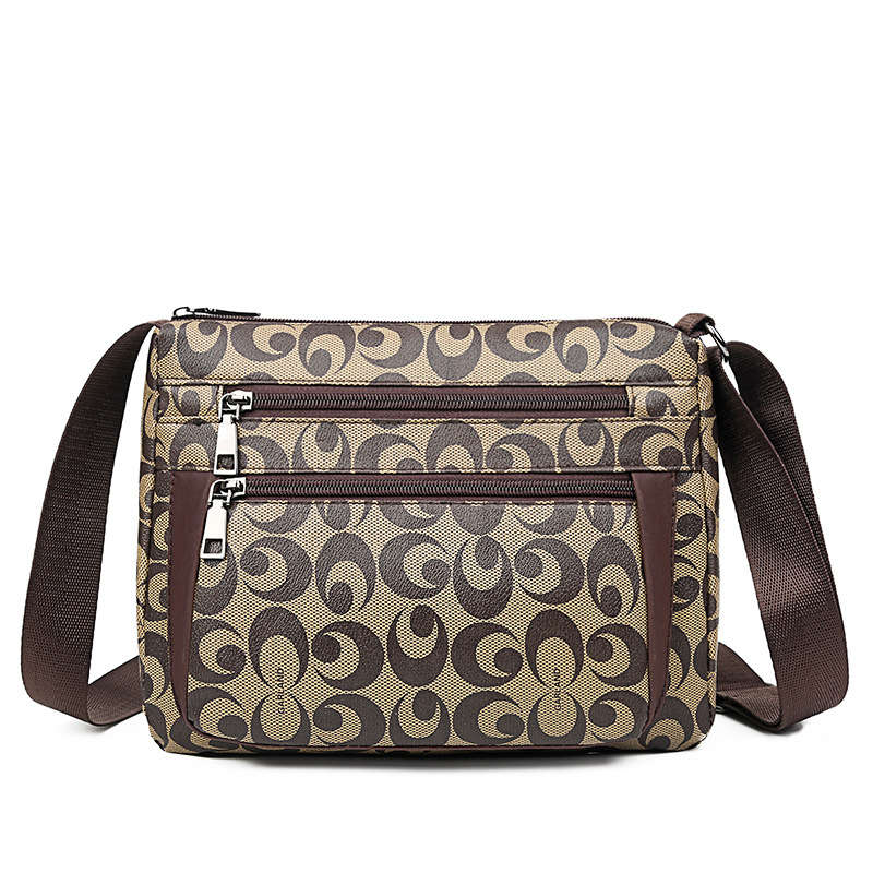 欧美风新款女包潮流时尚中年软皮质感妈妈包 简约印花斜挎单肩包