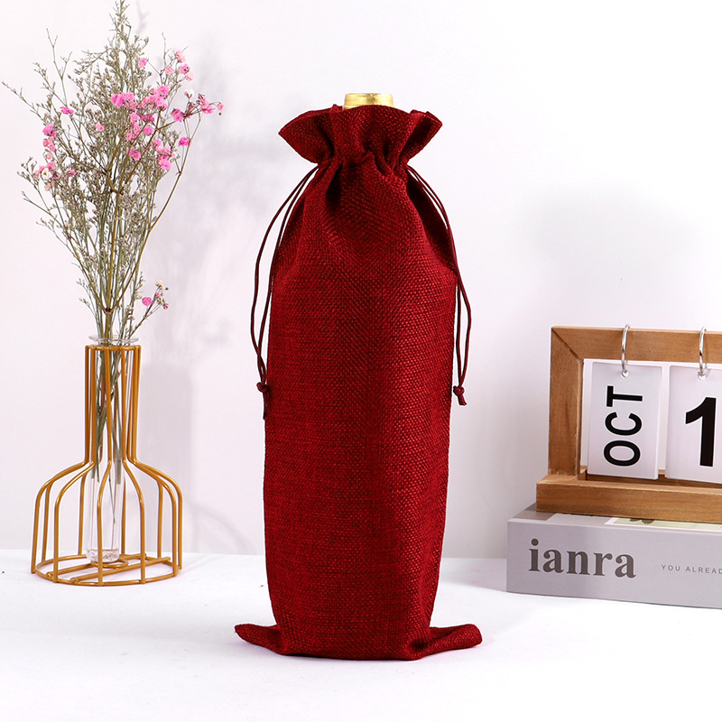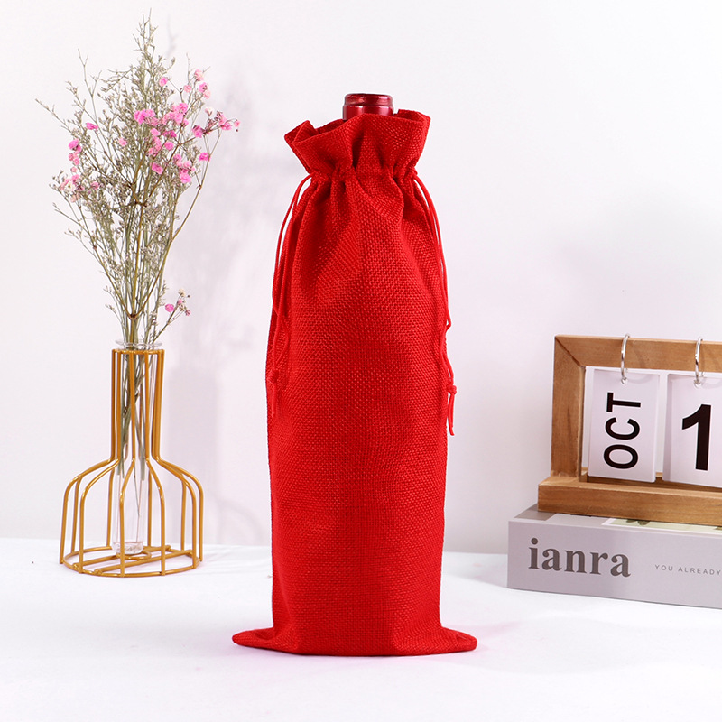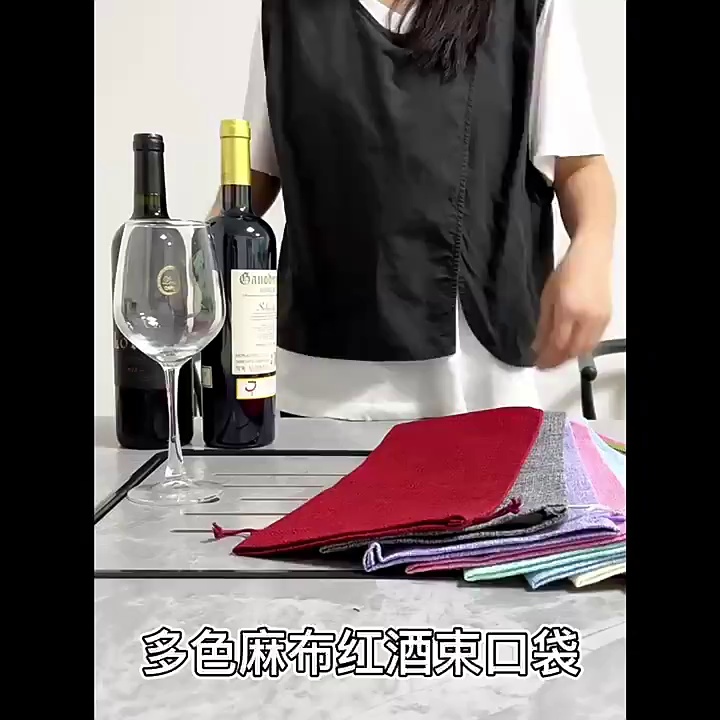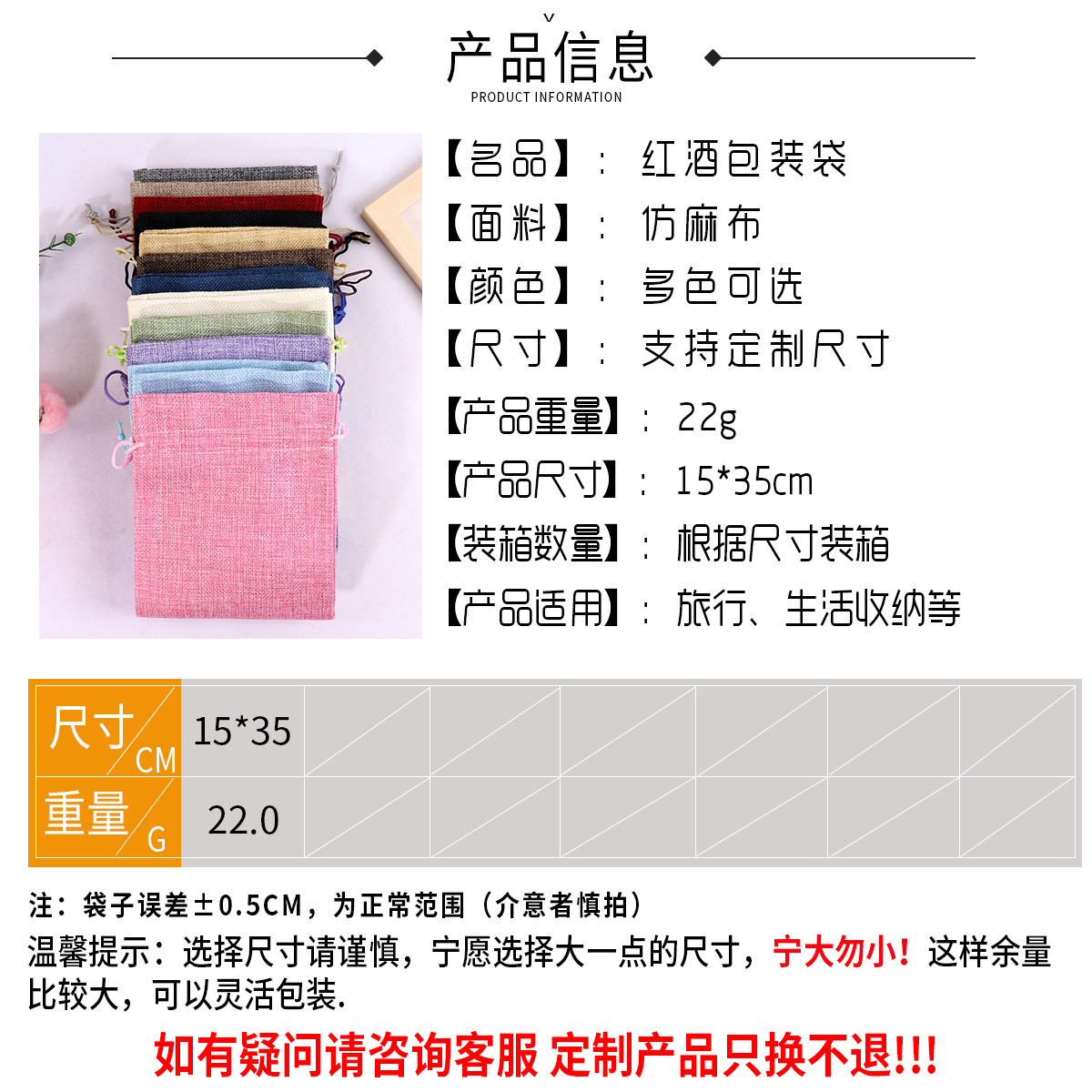 抽绳束口麻布红酒袋现货批发香槟红酒包装袋粗麻红酒袋套装可印刷