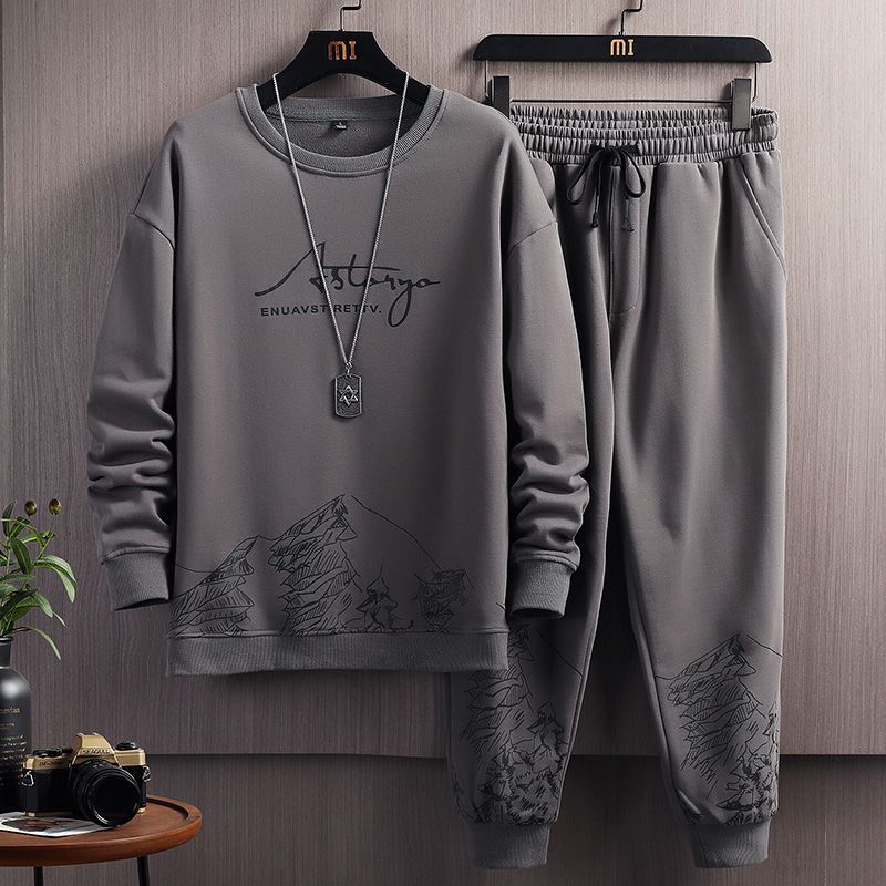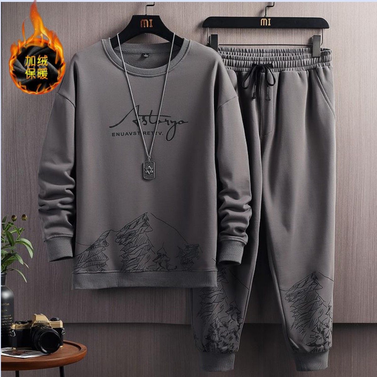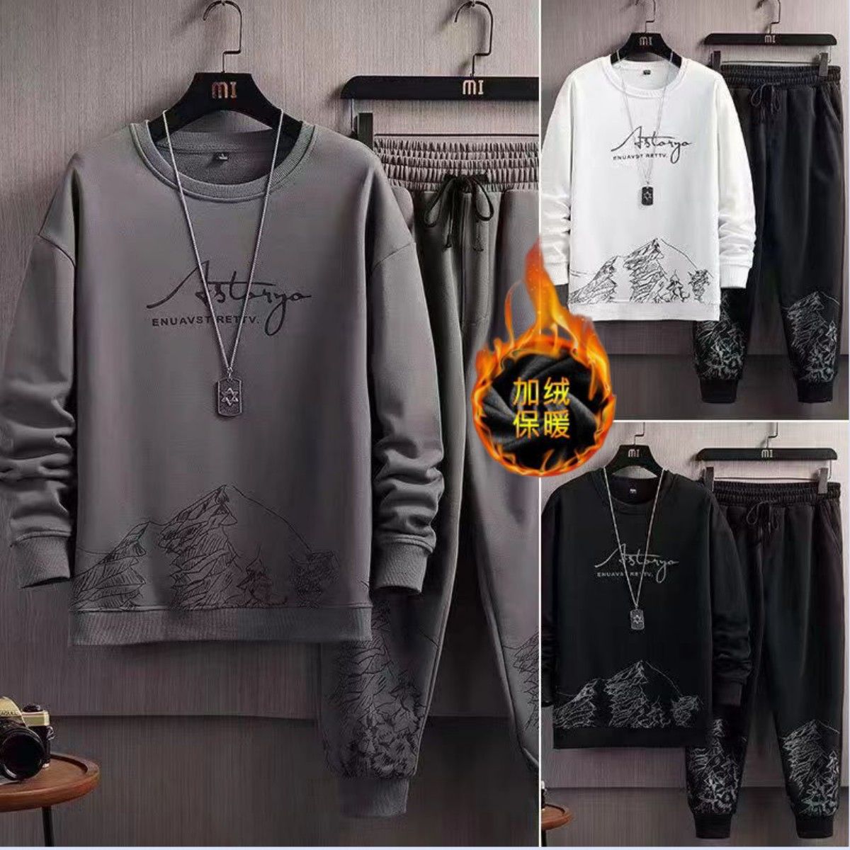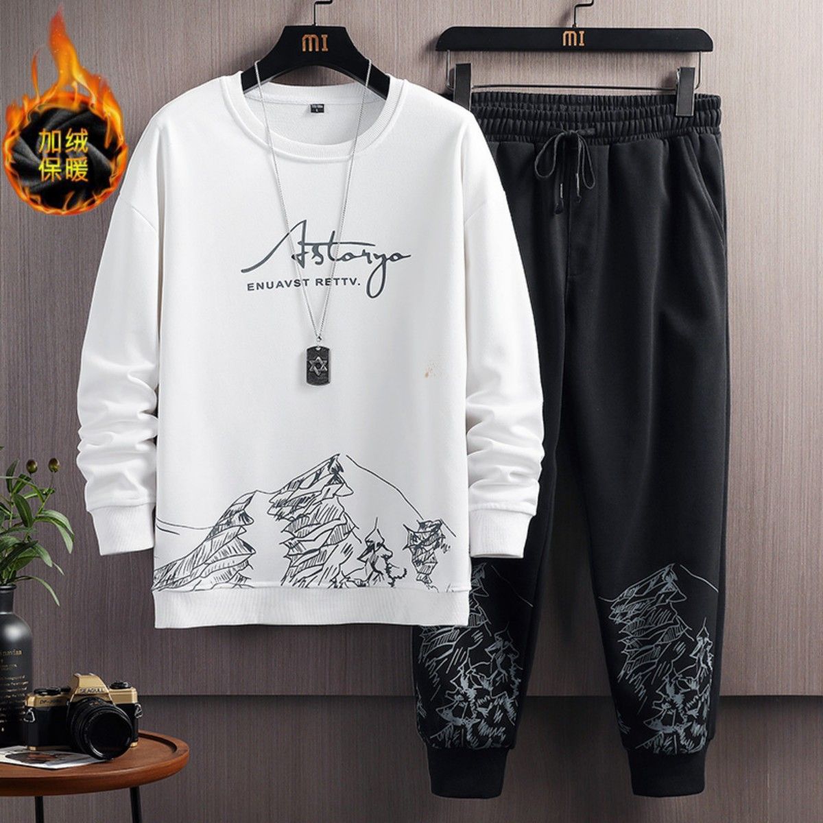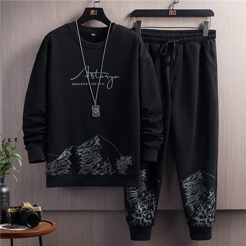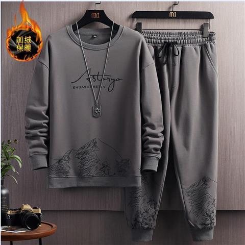 长袖t恤卫衣男士秋冬季加绒ins潮牌休闲长裤一套搭配帅气运动套装