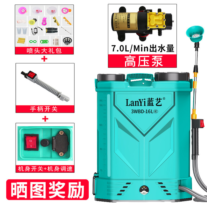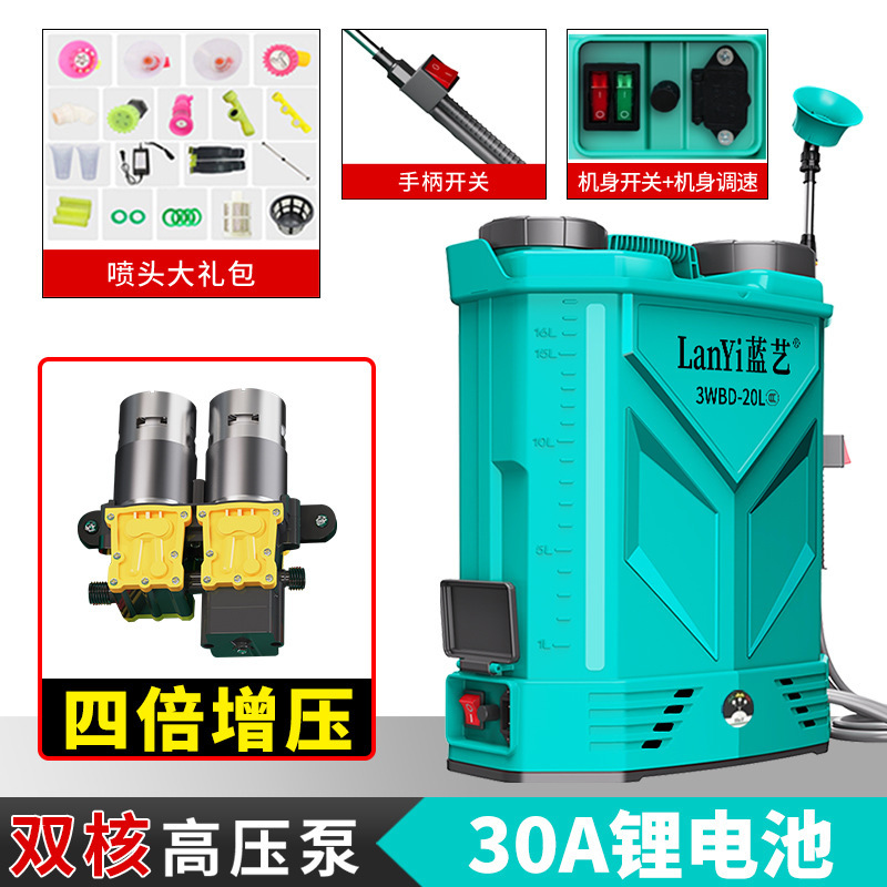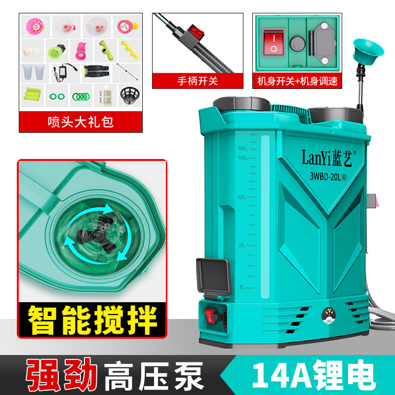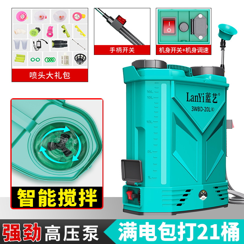蓝艺高压农用电动喷雾器锂电池新型背负式智能喷洒农药喷壶打药机