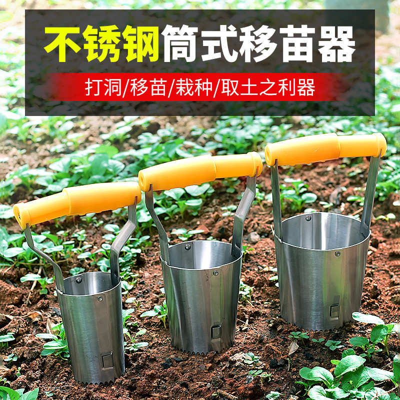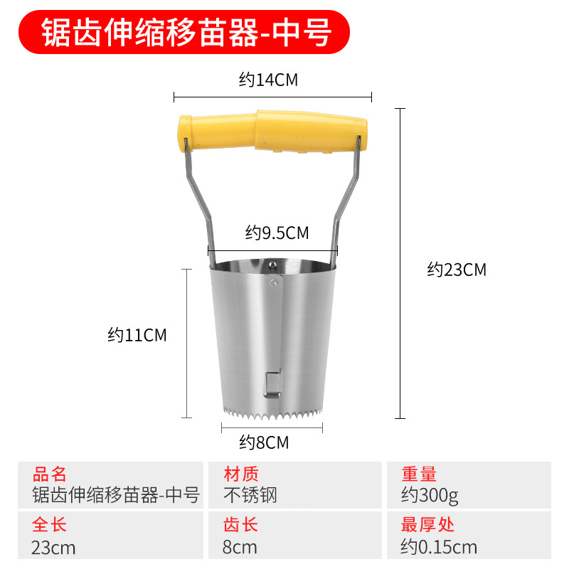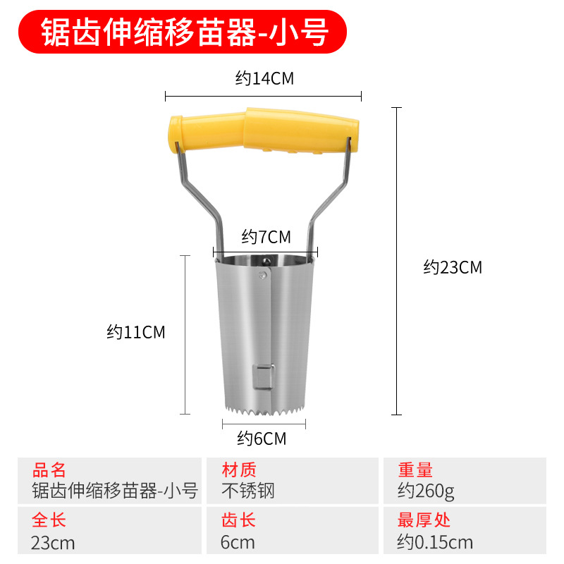 锯齿开刃不锈钢移苗器花筒移栽器塑胶柄伸缩移花器园艺打孔移栽器