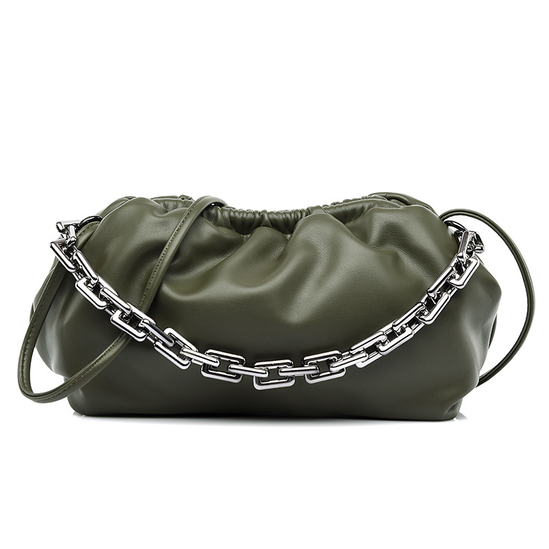 网红链条洋气包时尚单肩斜挎包褶皱腋下云朵女包跨境批发