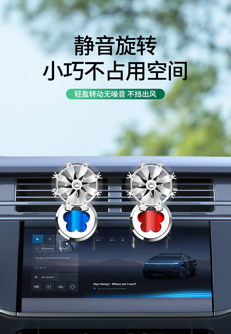 车载汽车出风口香水装饰品摆件扇叶会转动小风扇精油车用除异味