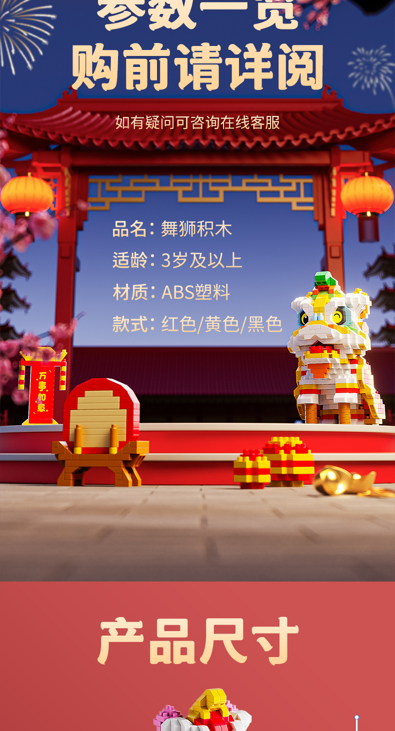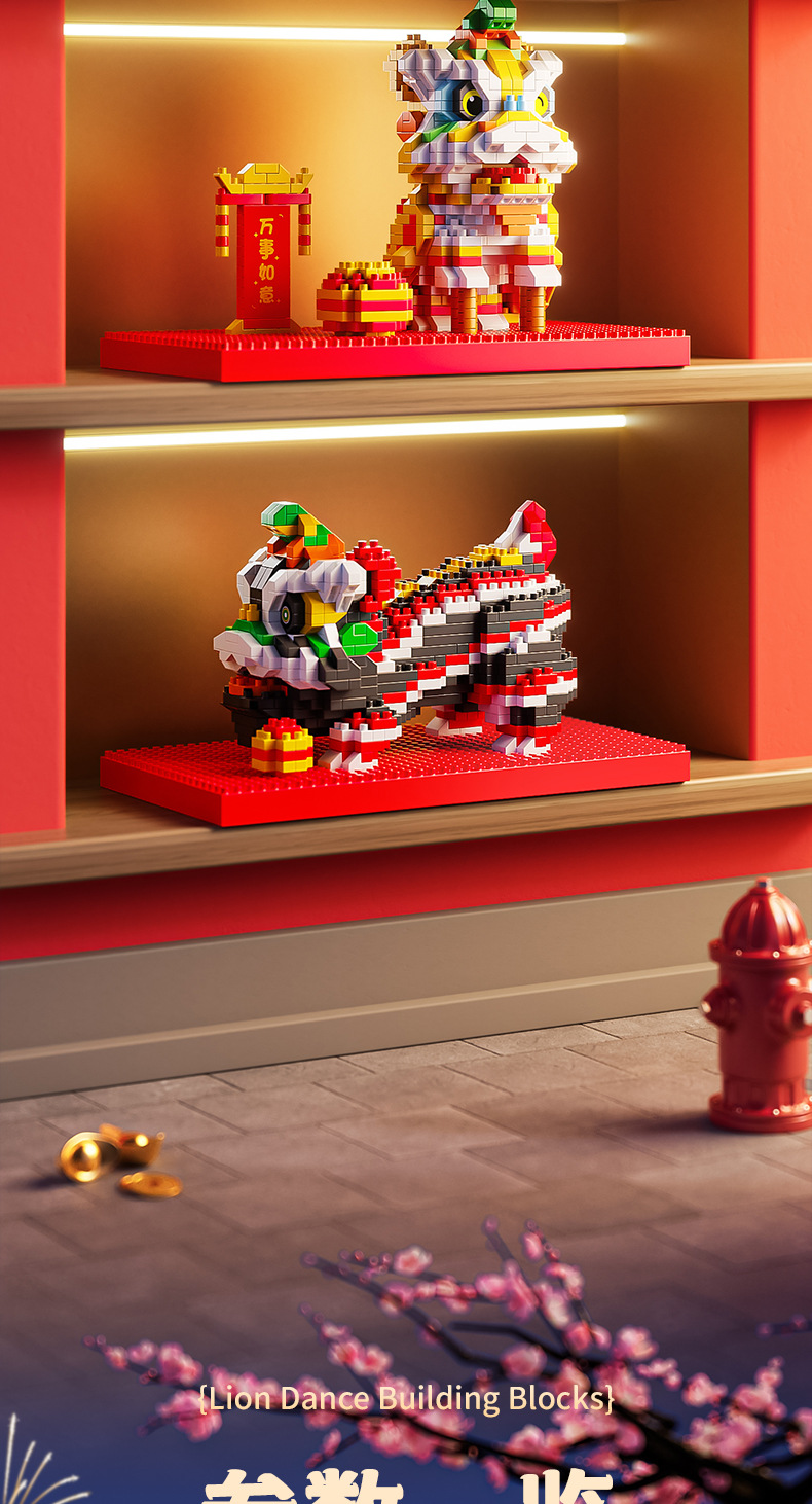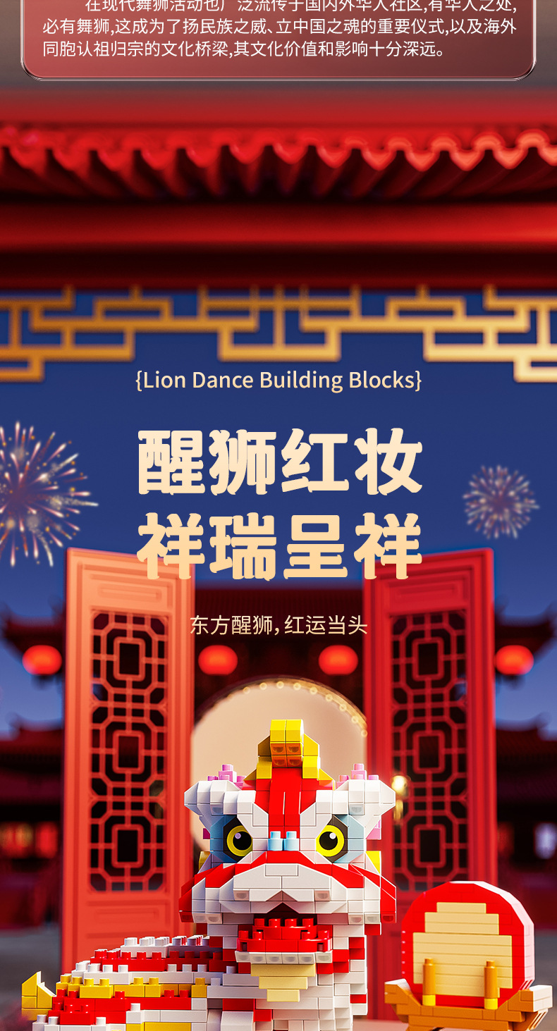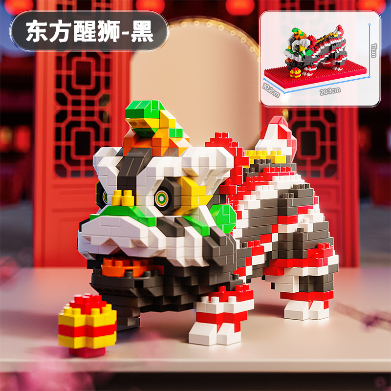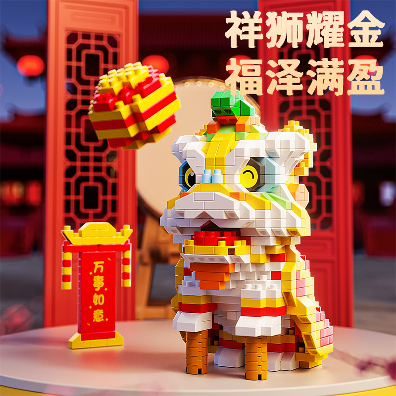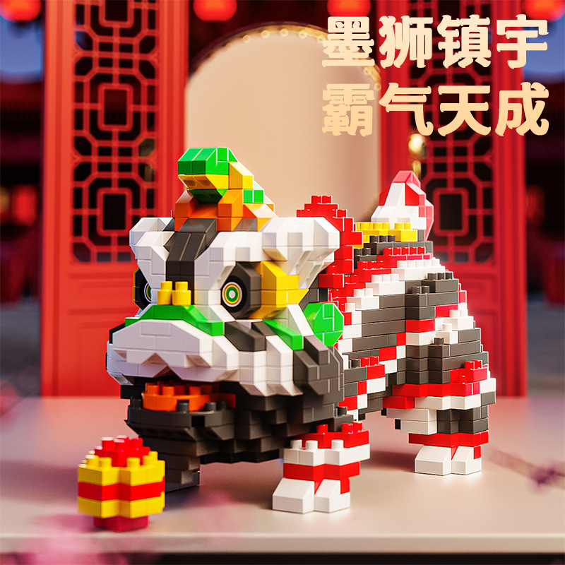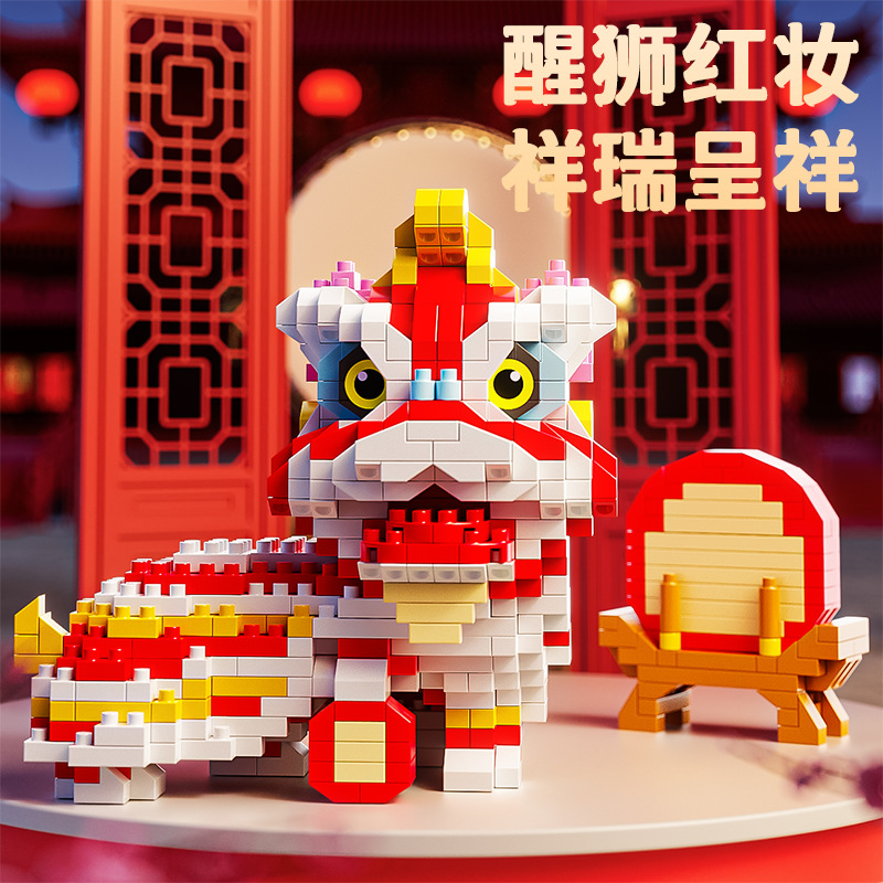 兼容乐高国潮纳福醒狮积木摆件吉祥物狮儿童拼装积木龙年舞狮礼物