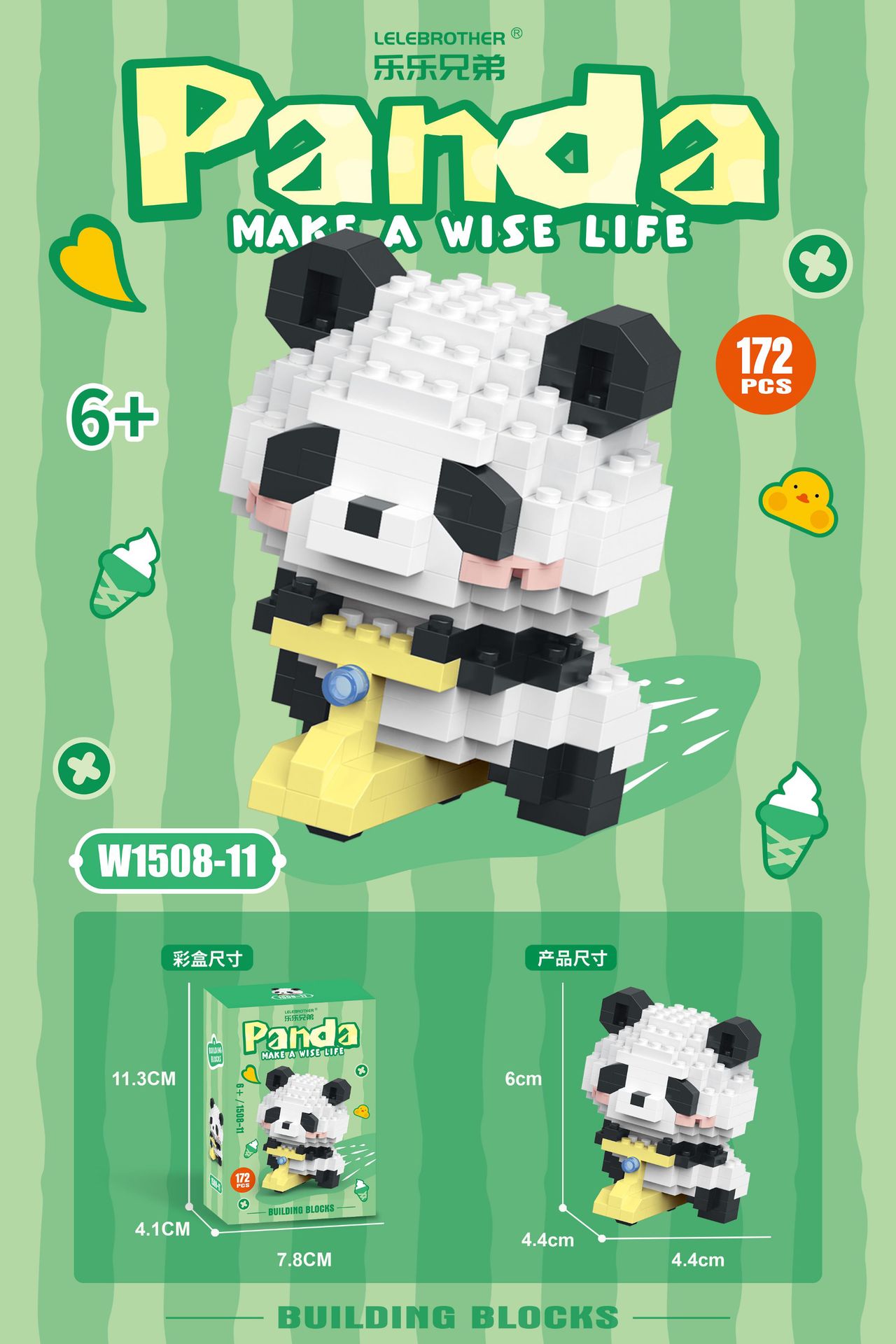 兼容乐高积木熊猫萌兰益智拼装积木公仔儿童摆件礼物玩具批发摆摊