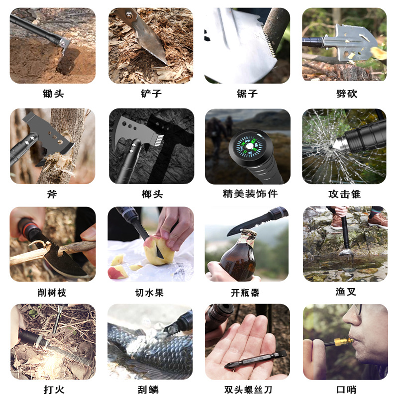 多功能工兵铲斧头套装 户外野营折叠车载加长工兵铲子斧头套装