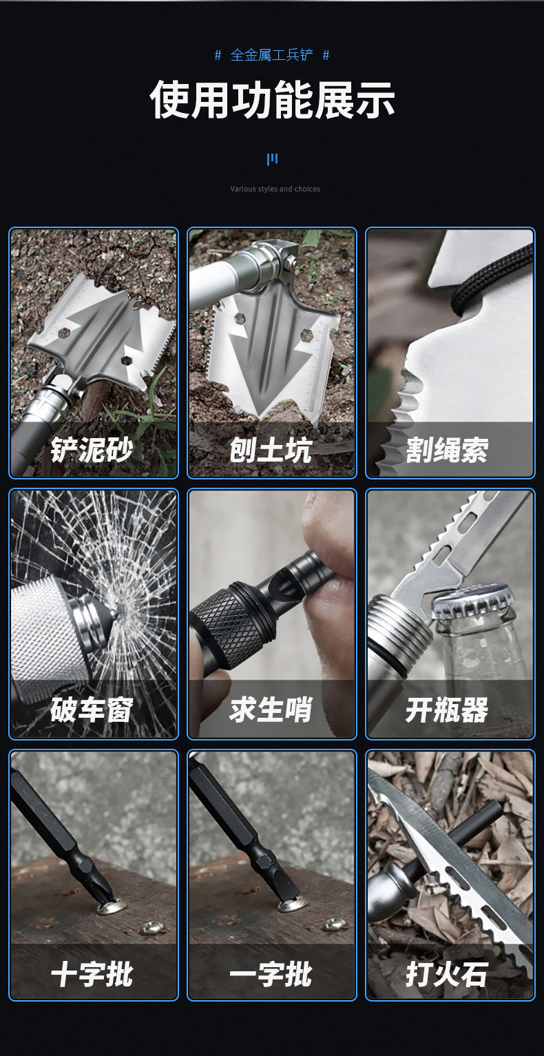 露营工兵铲多功能铁锹户外车载折叠钓鱼工具铲野外求生兵工铲子
