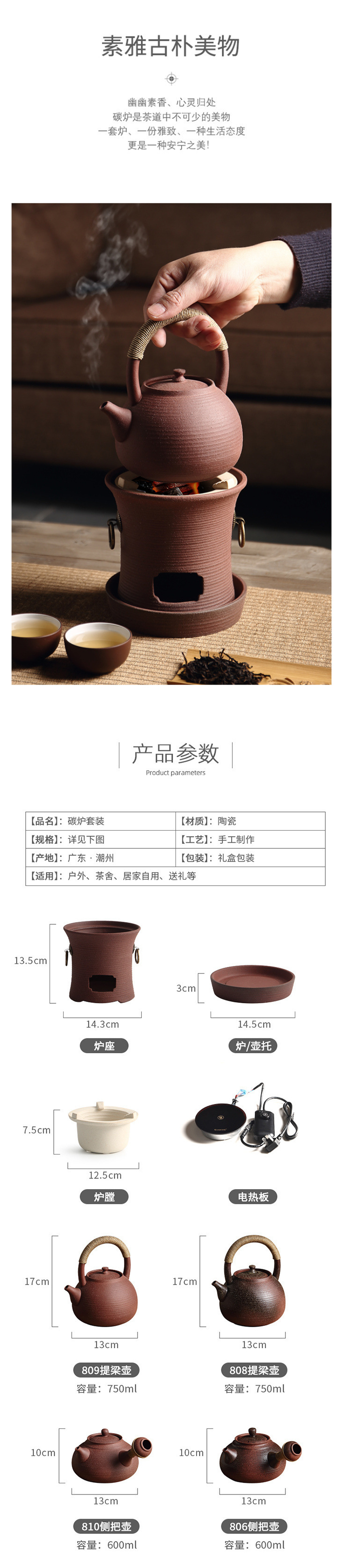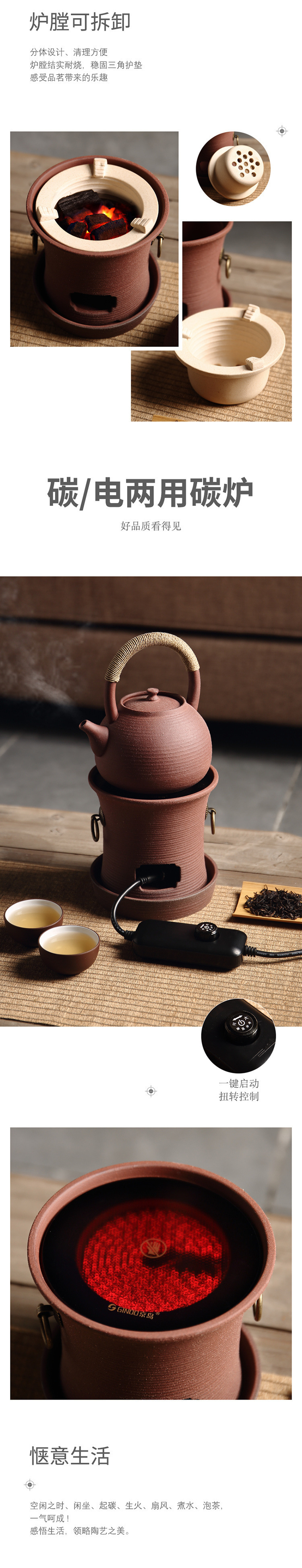 复古红泥碳炉户外煮茶炉便携式潮汕围炉煮茶一整套炭烧煮茶炉露营