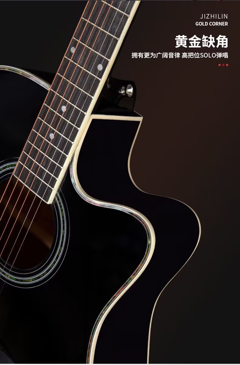 新手41寸缺角民谣全椴木亮光吉他工厂批发吉他 guita电箱现货
