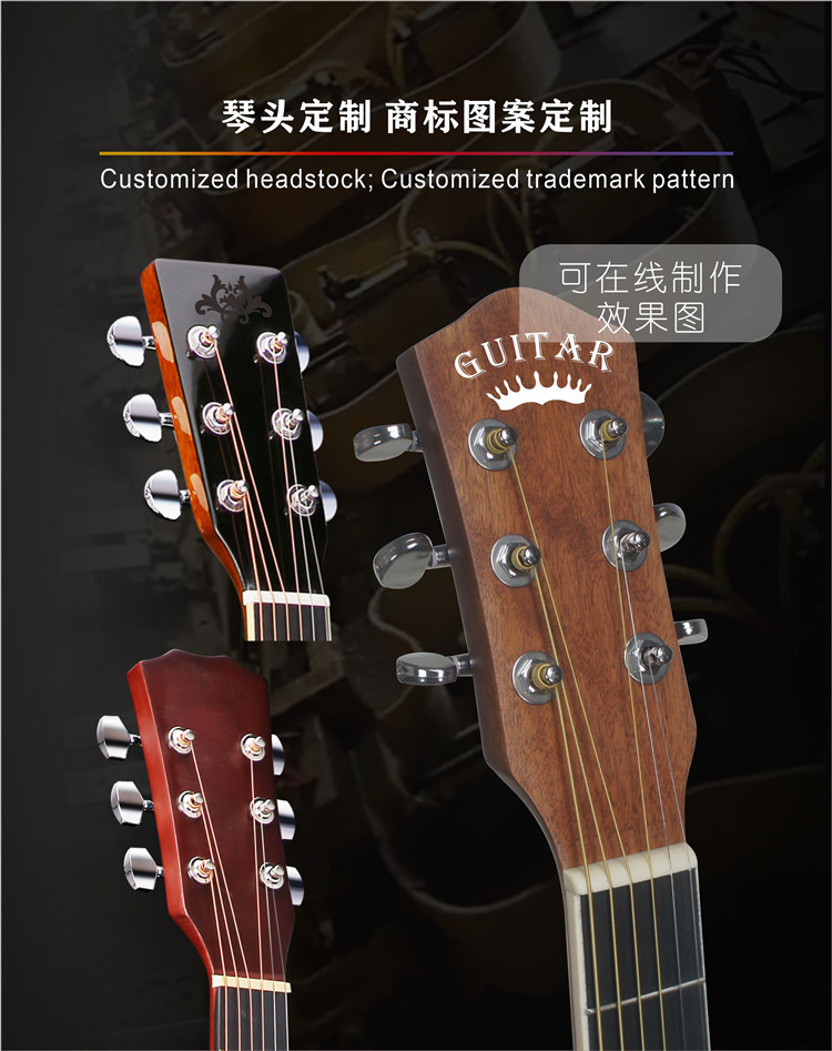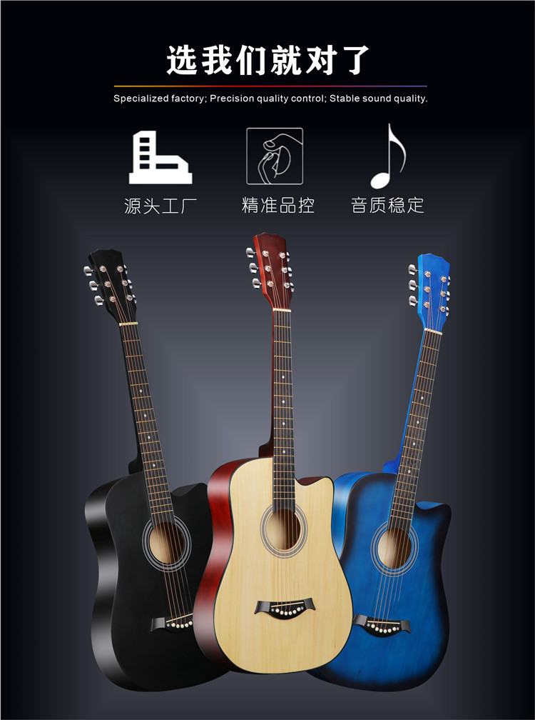 厂家直销初学者民谣吉他多色尺寸可选严选木材Custom folk guitar
