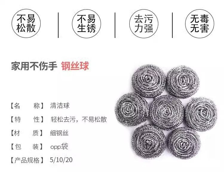 不锈钢钢丝球清洁球不掉渣不生锈 擦锅去污洗碗球不掉丝大号洗锅