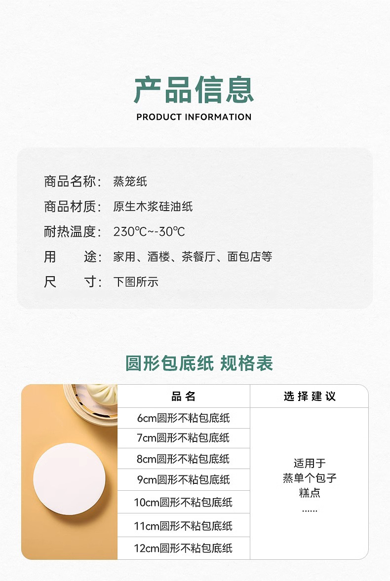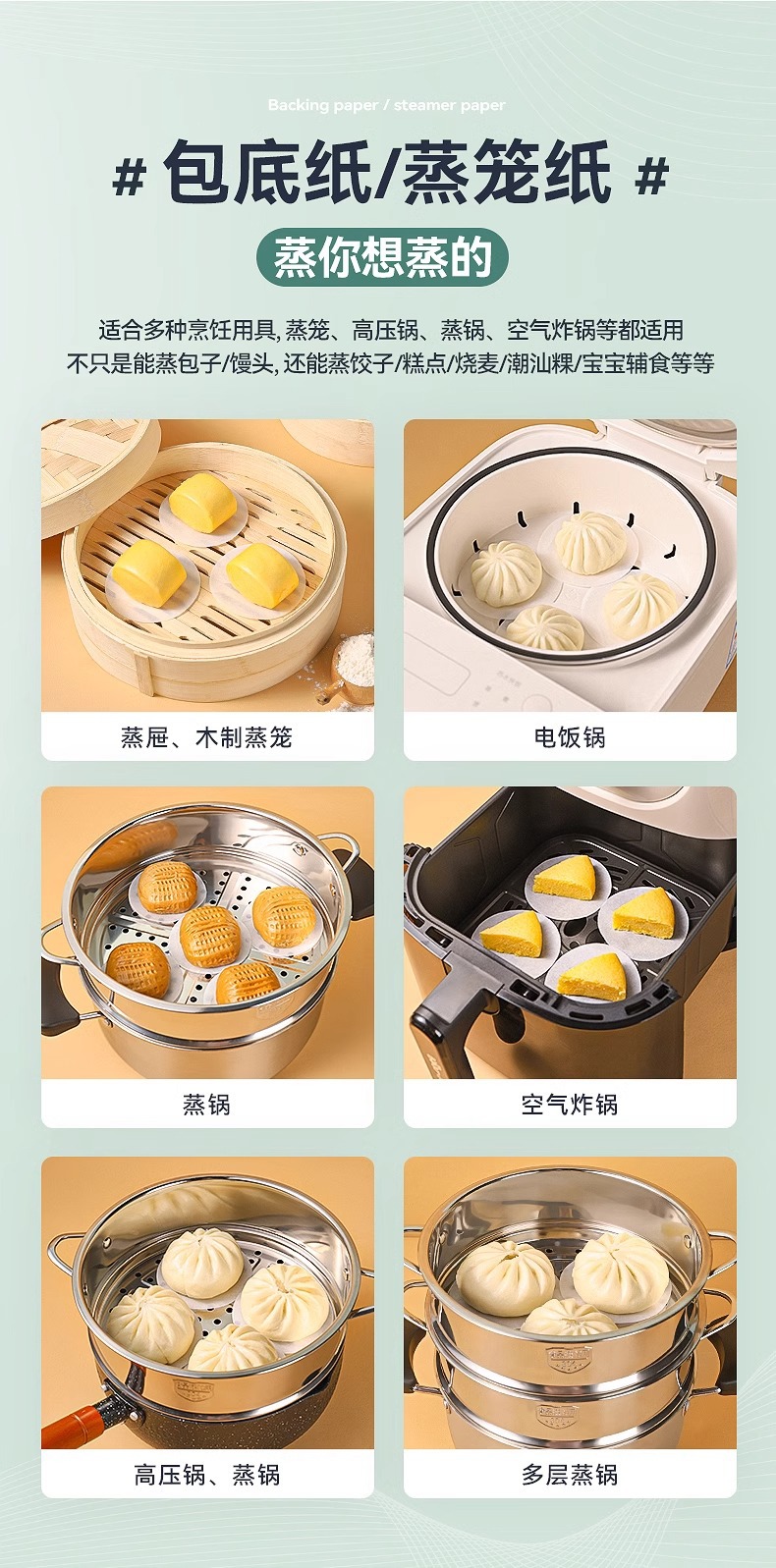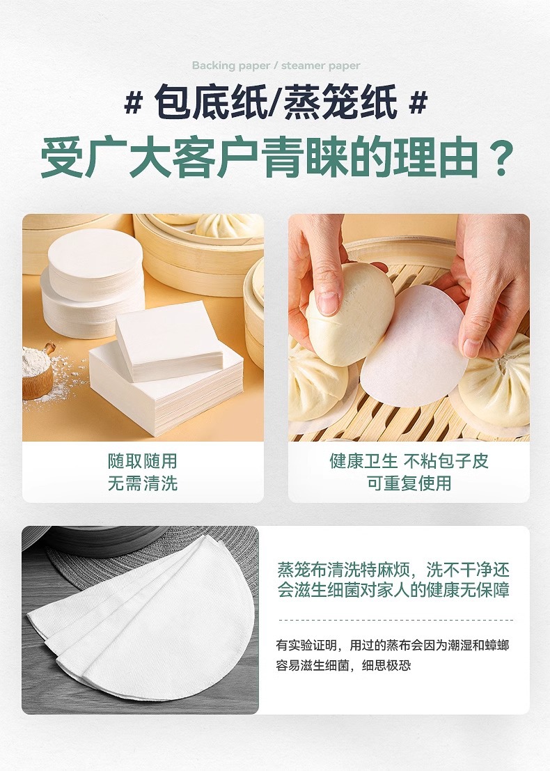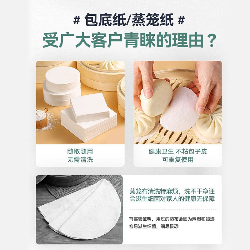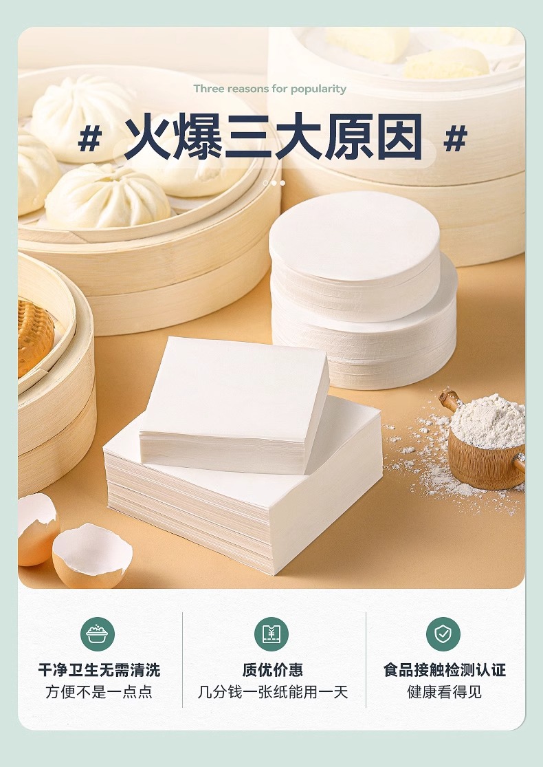 一次性蒸笼纸不粘耐蒸纸家用蒸包子用的垫纸食品级包底纸热蒸垫纸