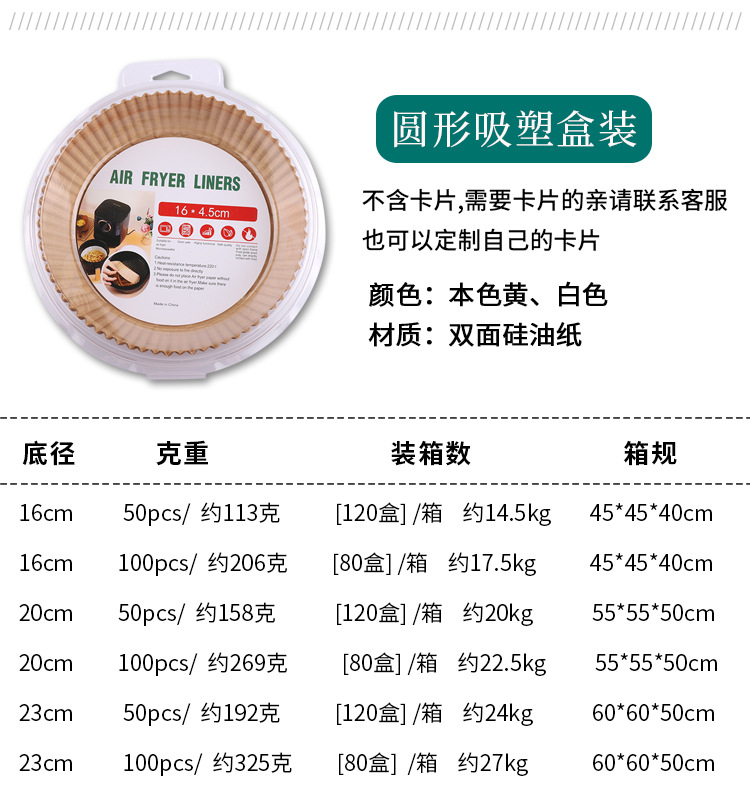 空气炸锅专用纸吸油纸盘纸托食品级一次性垫纸圆形家用烘焙硅油纸