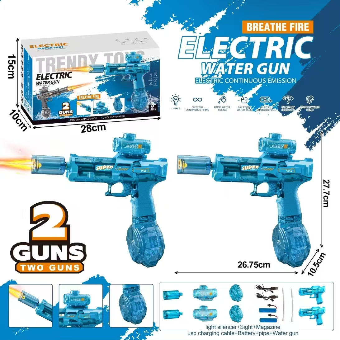 跨境爆款喷火电动水枪冰鼠火光手自一体冰爆外贸电动水枪玩具批发