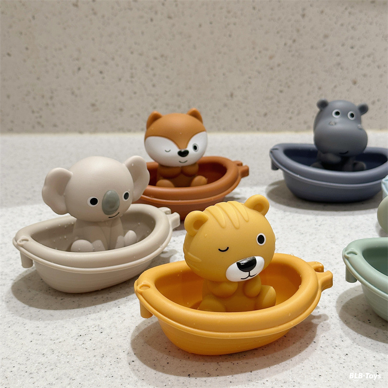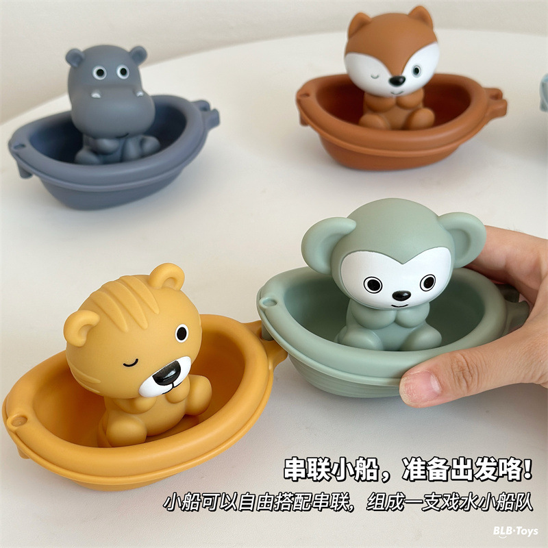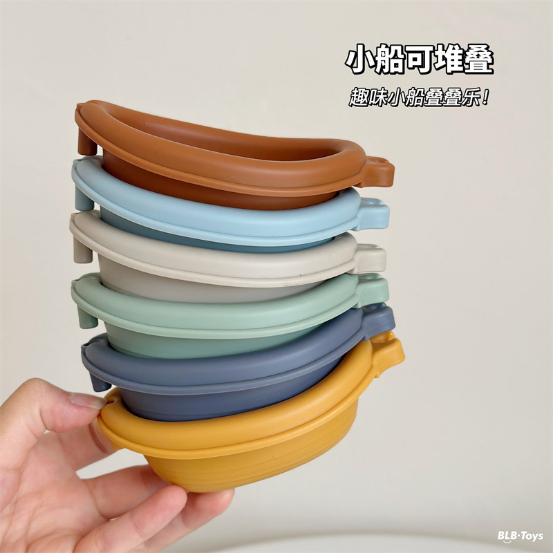 儿童浴室玩具可堆叠浮船小船婴幼儿洗澡戏水叠叠船动物手指套玩具