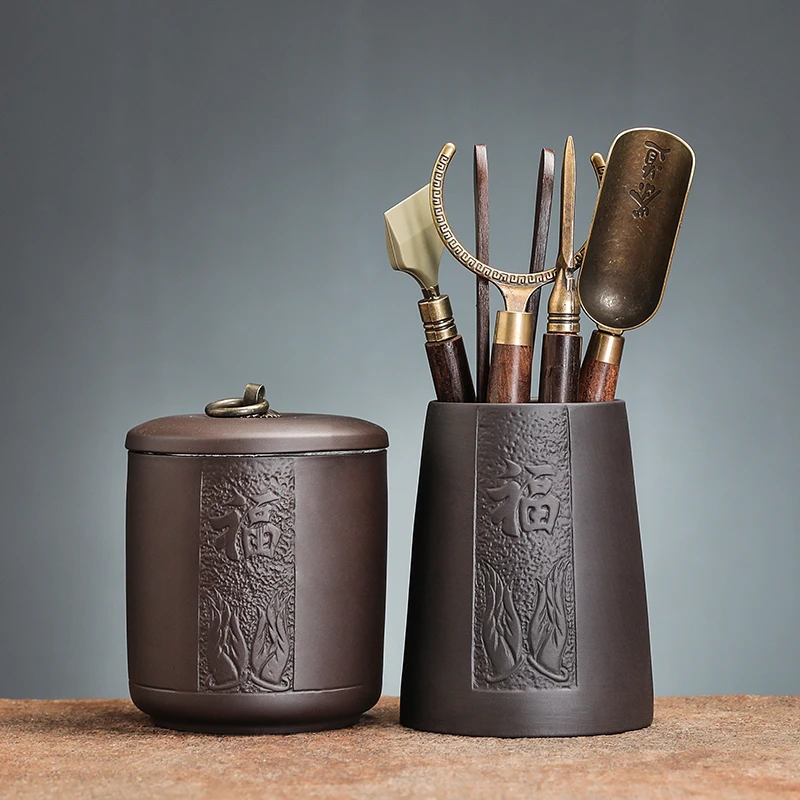 | purple sand baifu tea ceremony six items wood burning tea pot(紫砂百福茶道六君子加材烧茶叶罐) | USD $5.81 | 999999 piece available |
