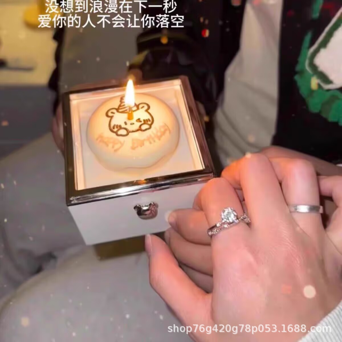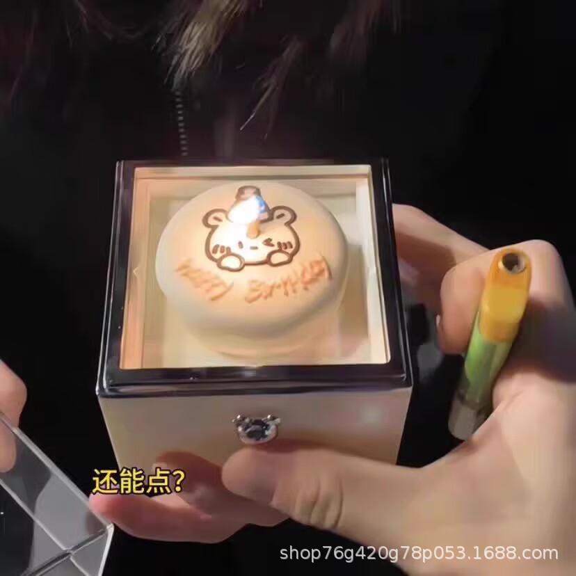 表白旋转首饰盒小熊闺蜜情人节戒指盒惊喜生日礼物男蛋糕送女朋友