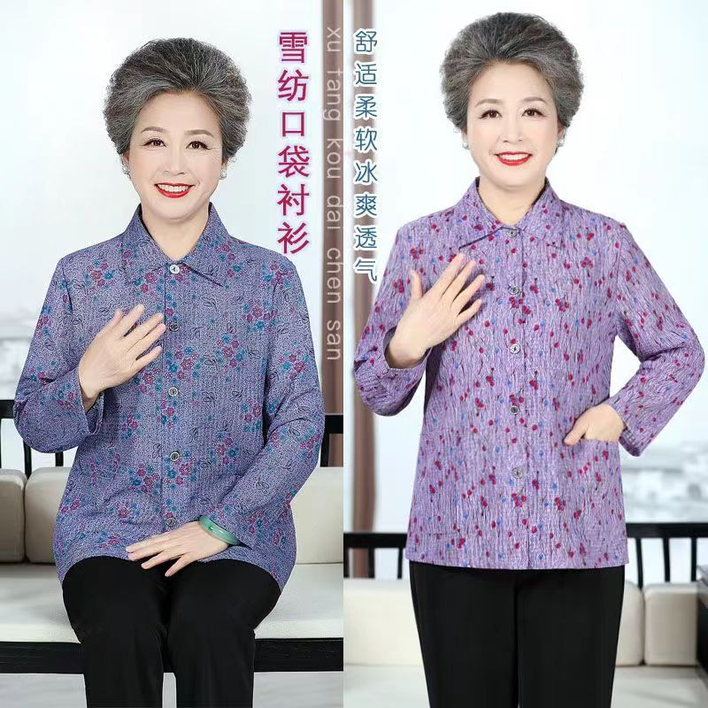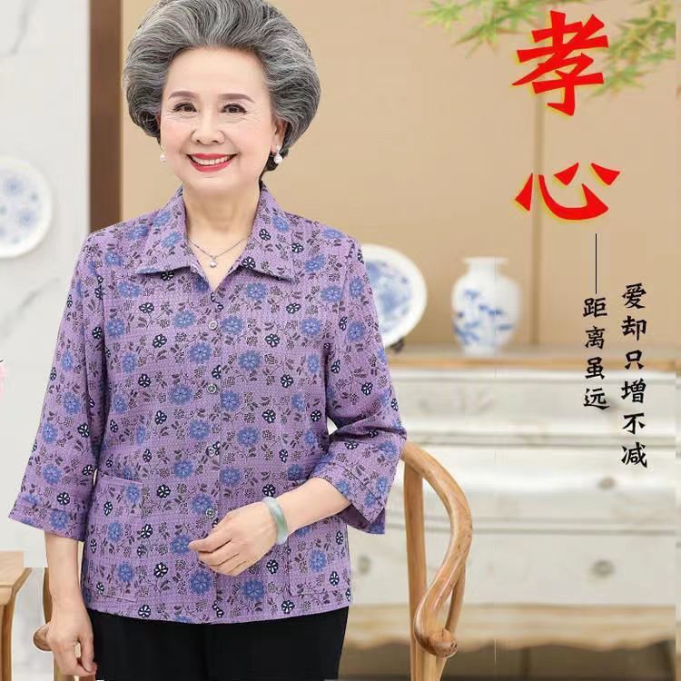 老太太衬衣夏装中老年雪纺中 袖衬衫休闲夏装上衣时尚印花七分袖