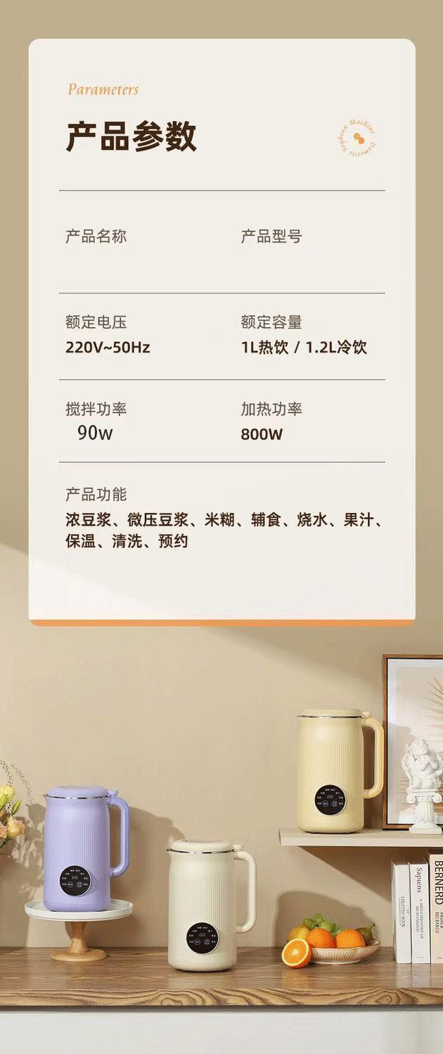 正品加热豆浆机自动家用小型破壁多功能免煮免滤榨汁米糊辅食机