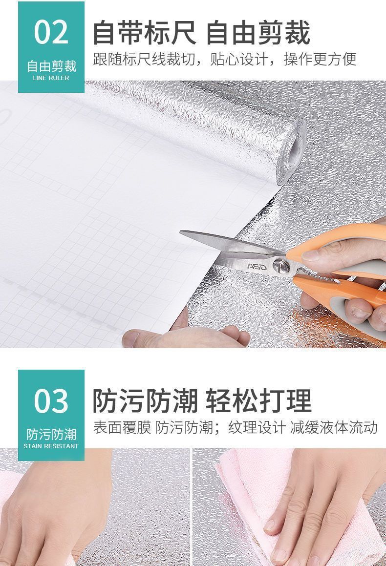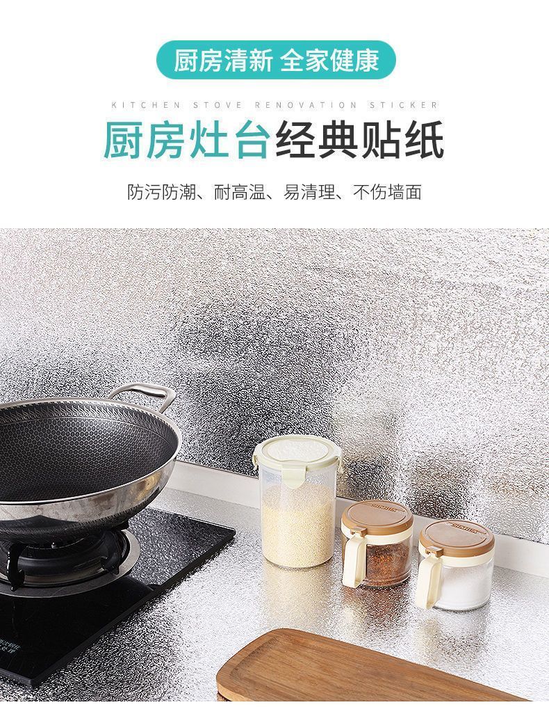 厨房防油贴纸墙面防烫耐高温橱柜防水防潮自粘墙贴油烟机灶台贴纸