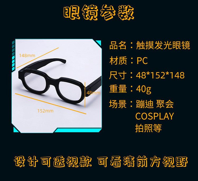 | colorful luminous glasses wide edge foldable rechargeable 11(七彩发光眼镜宽边可折叠充电款11) | USD $3.83 | 999999 piece available |