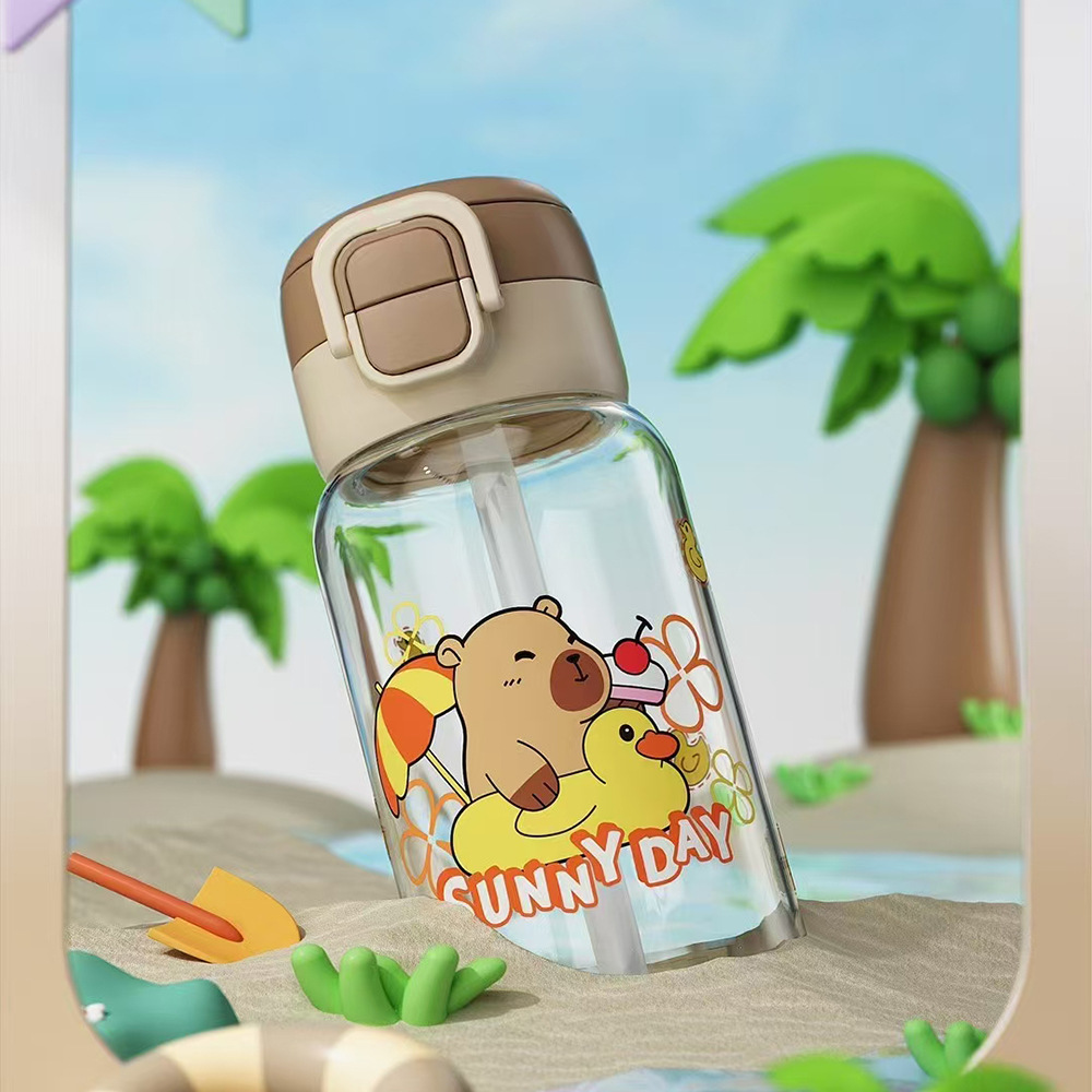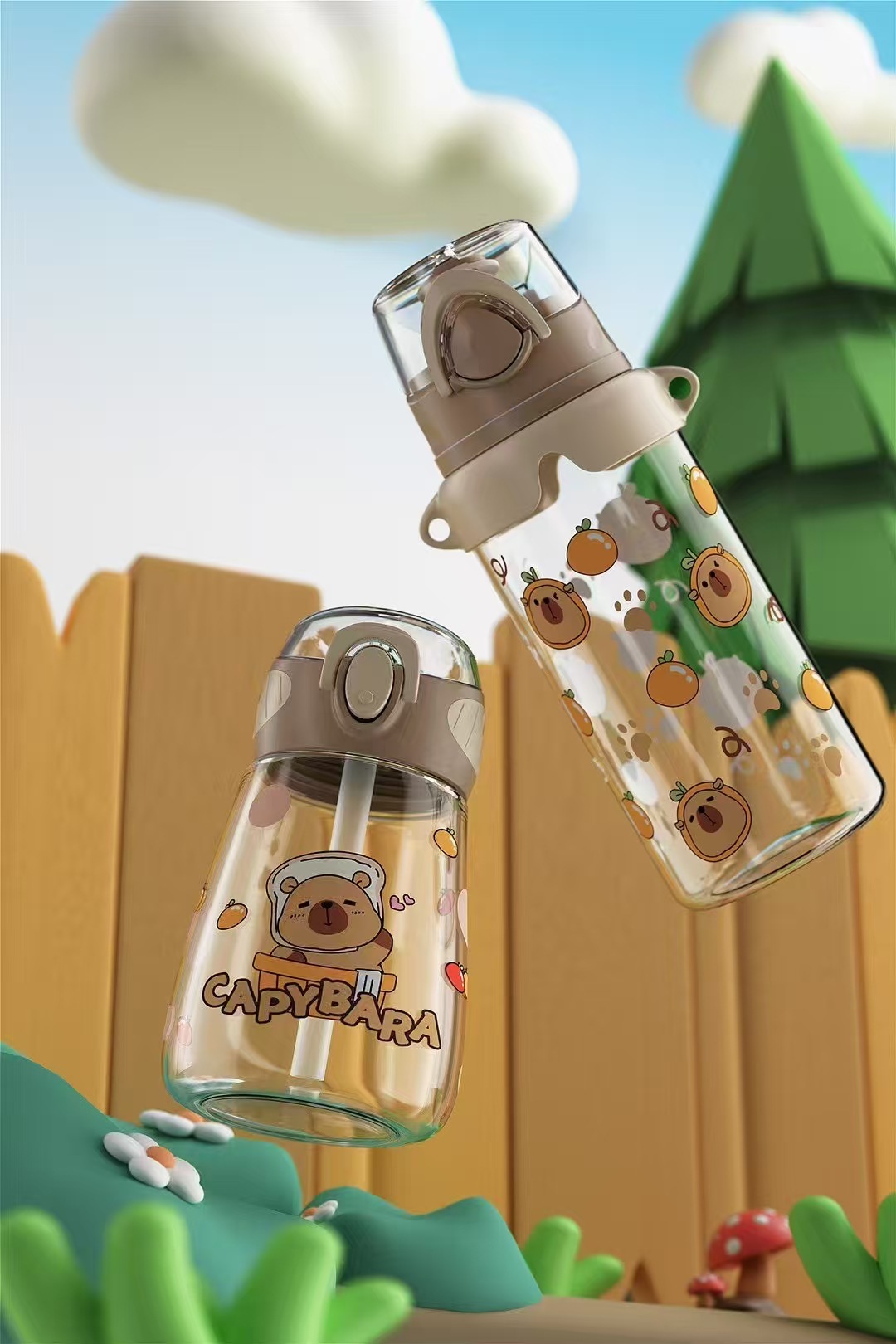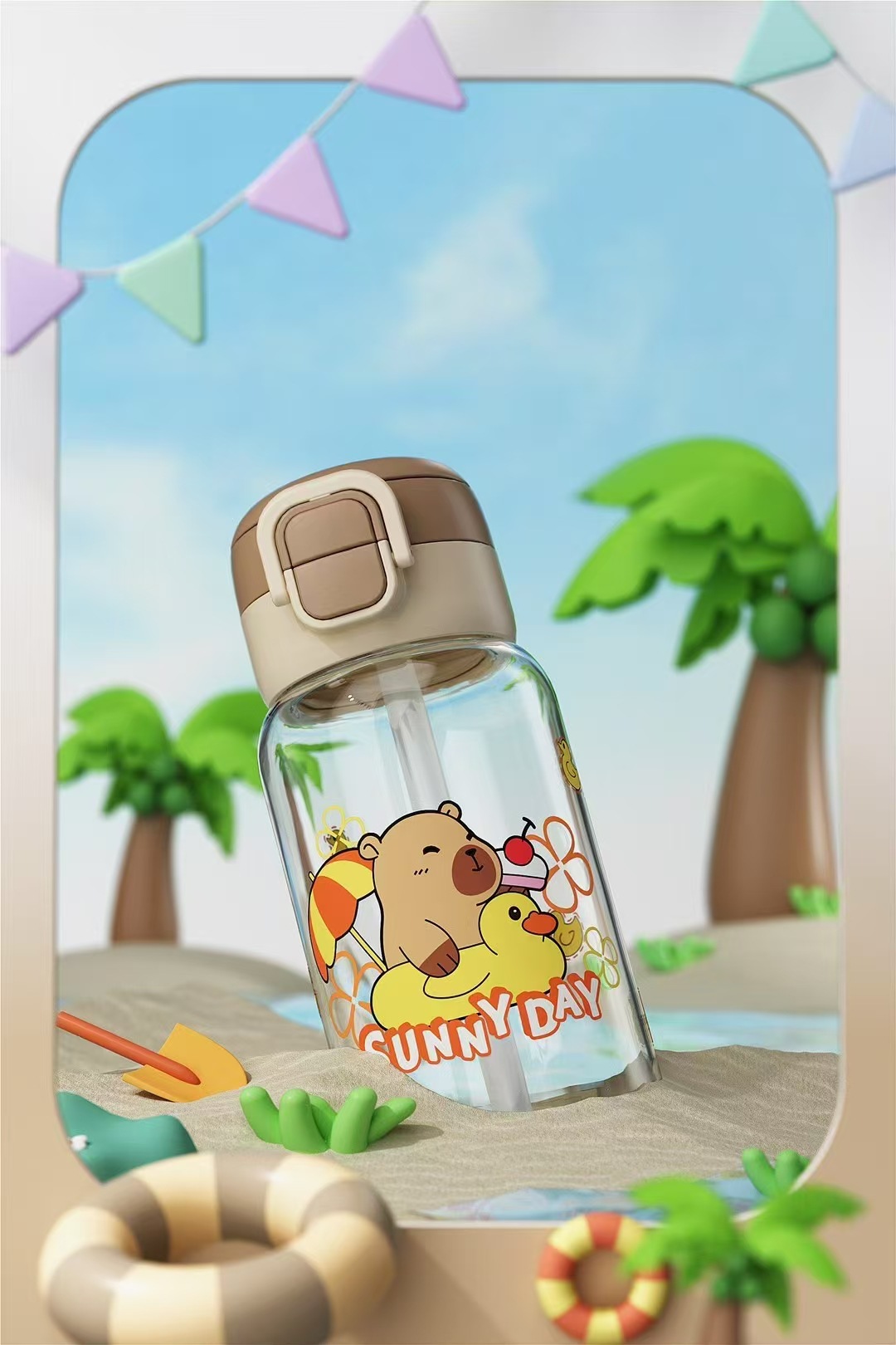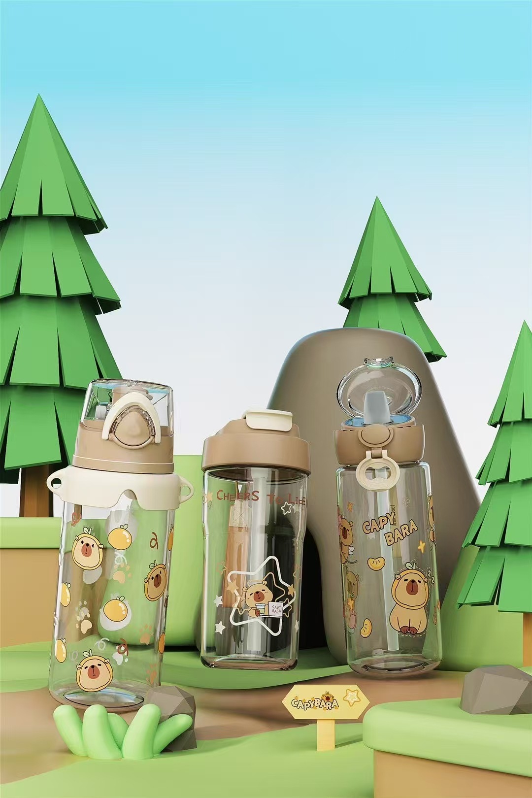 新款卡皮巴拉卡通水瓶学生杯高颜值可爱水壶手提吸管儿童水杯夏潮