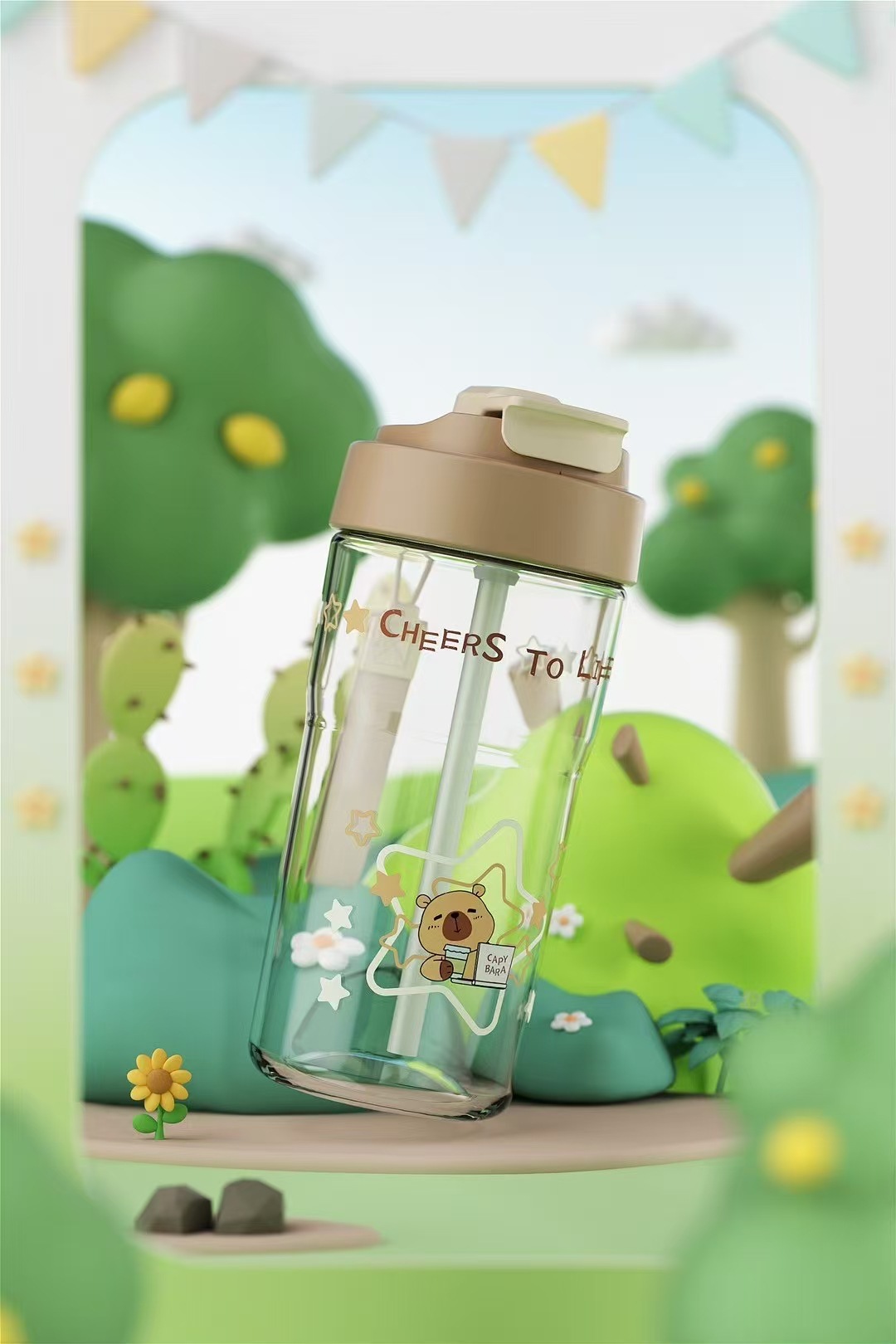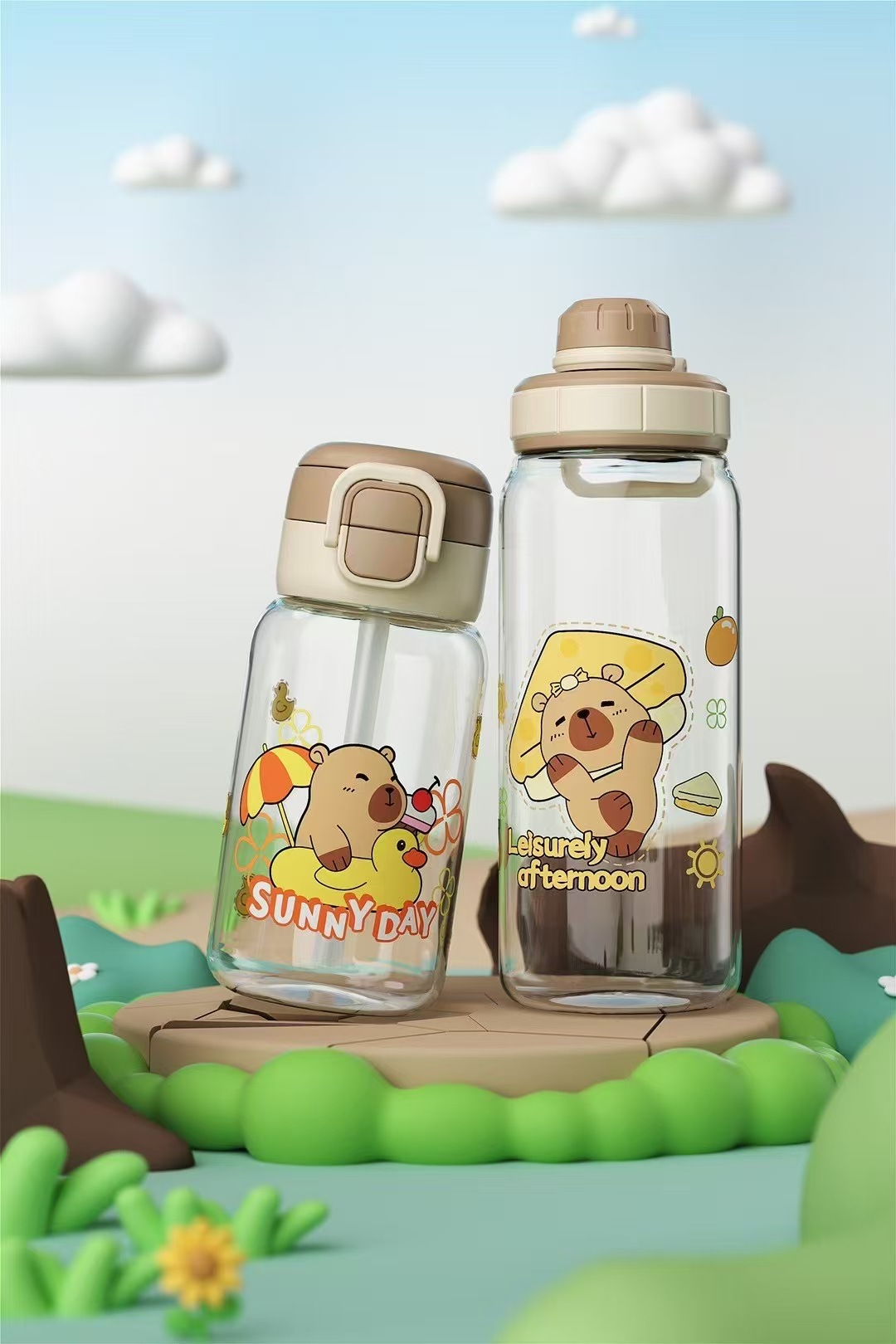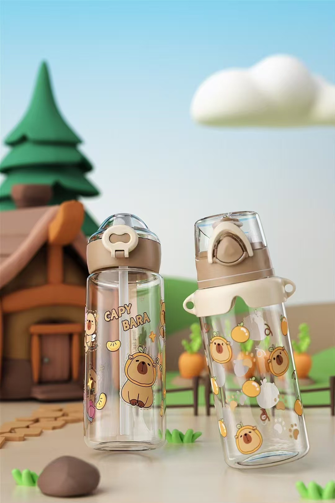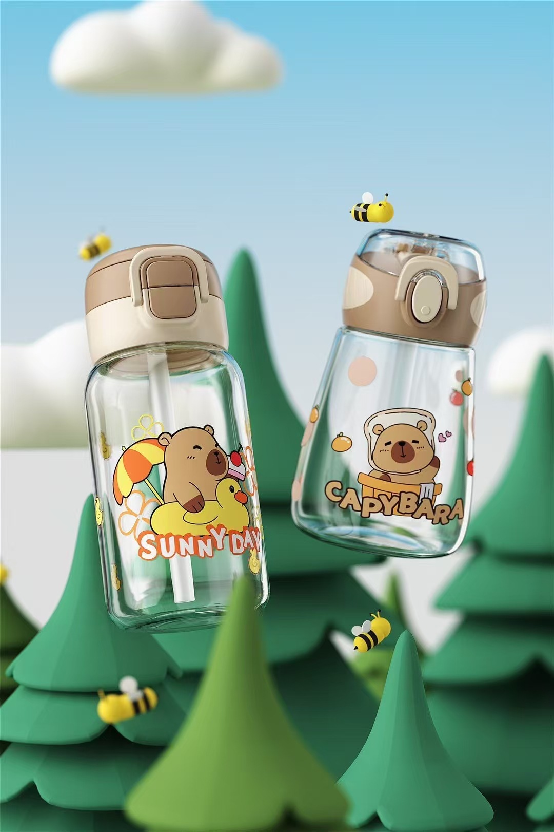 新款卡皮巴拉卡通水瓶学生杯高颜值可爱水壶手提吸管儿童水杯夏潮