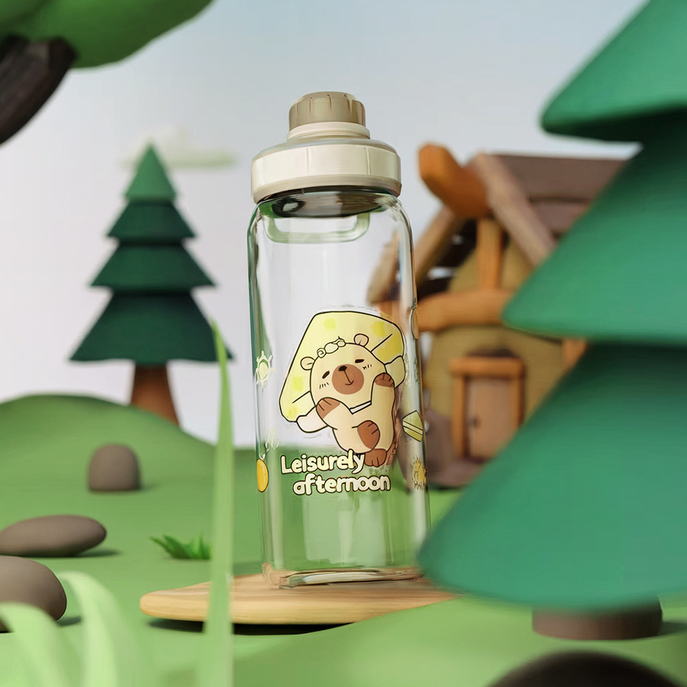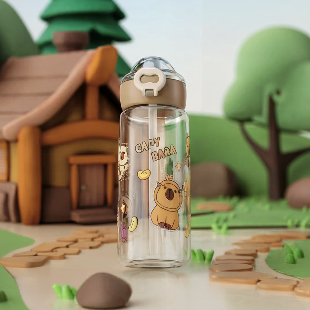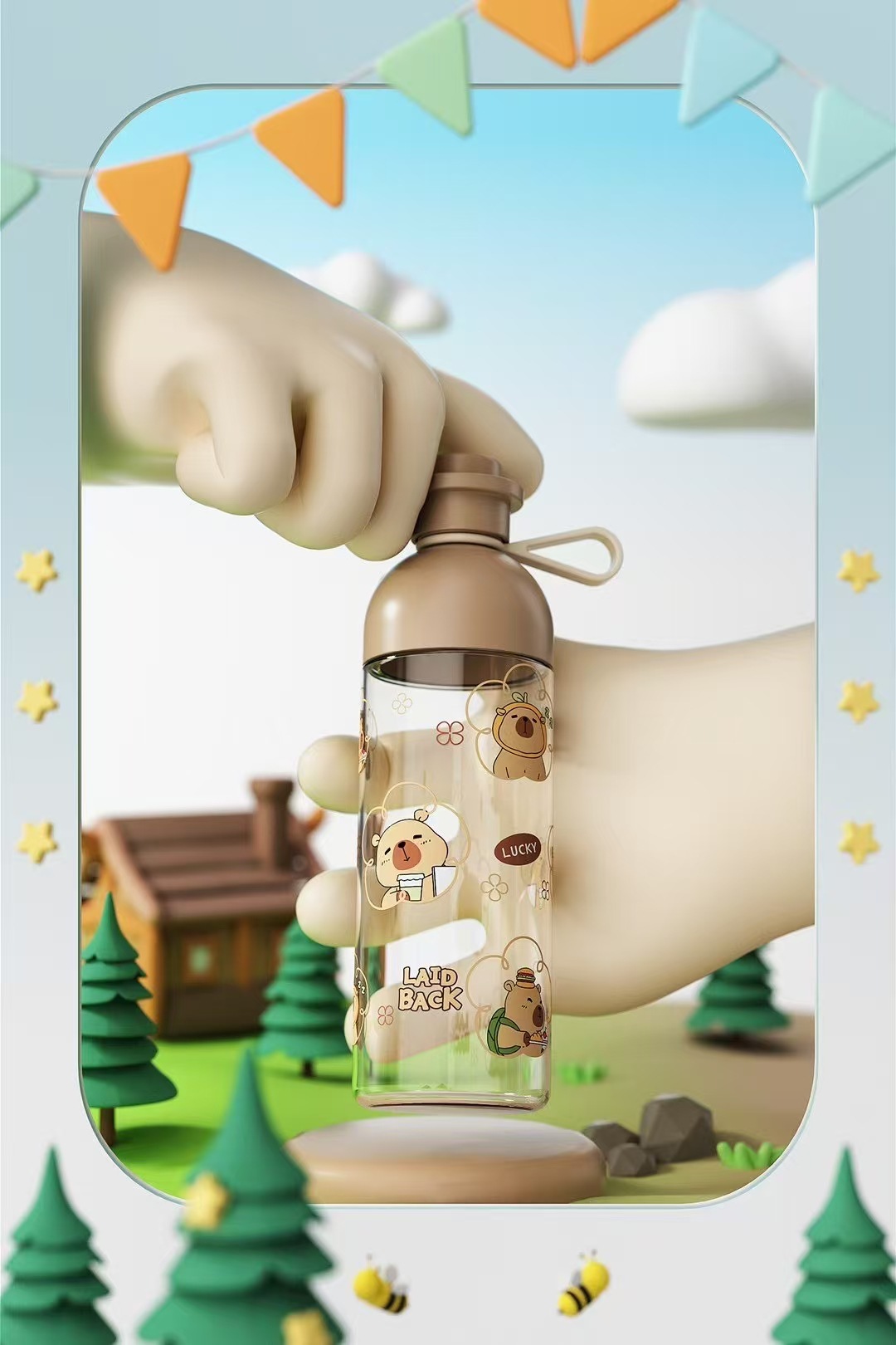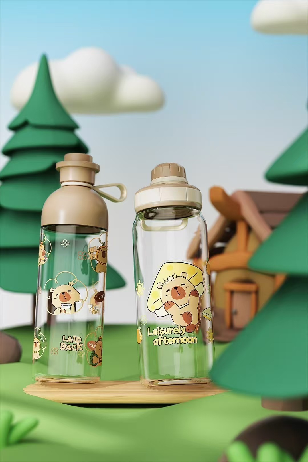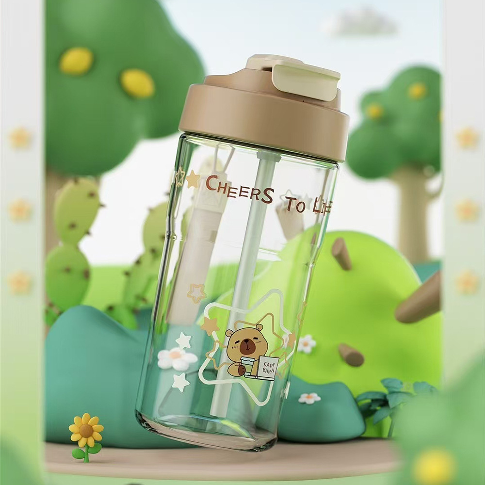 新款卡皮巴拉卡通水瓶学生杯高颜值可爱水壶手提吸管儿童水杯夏潮
