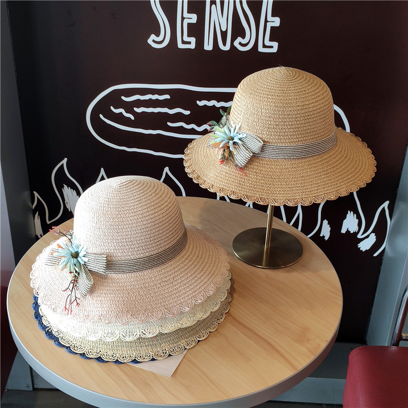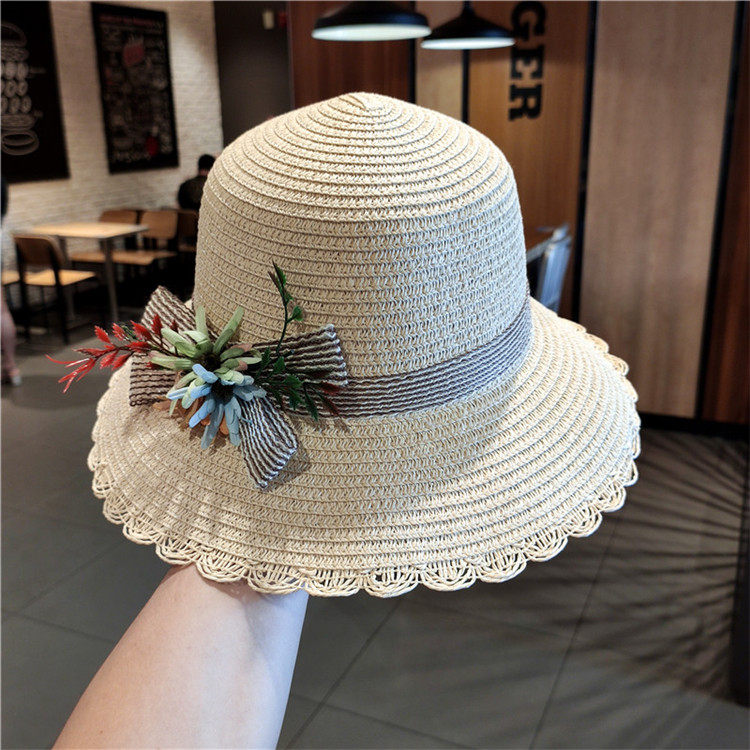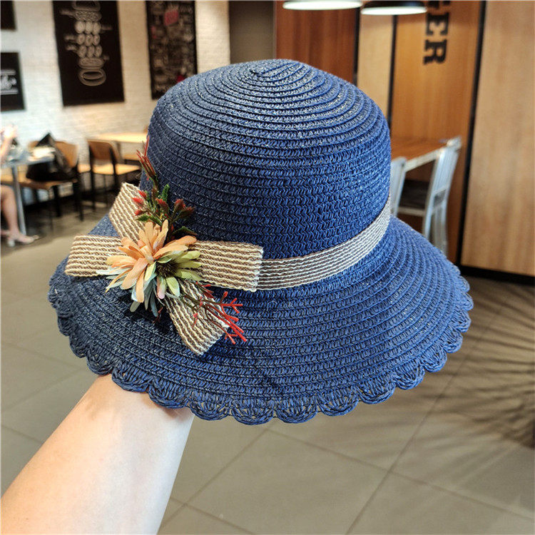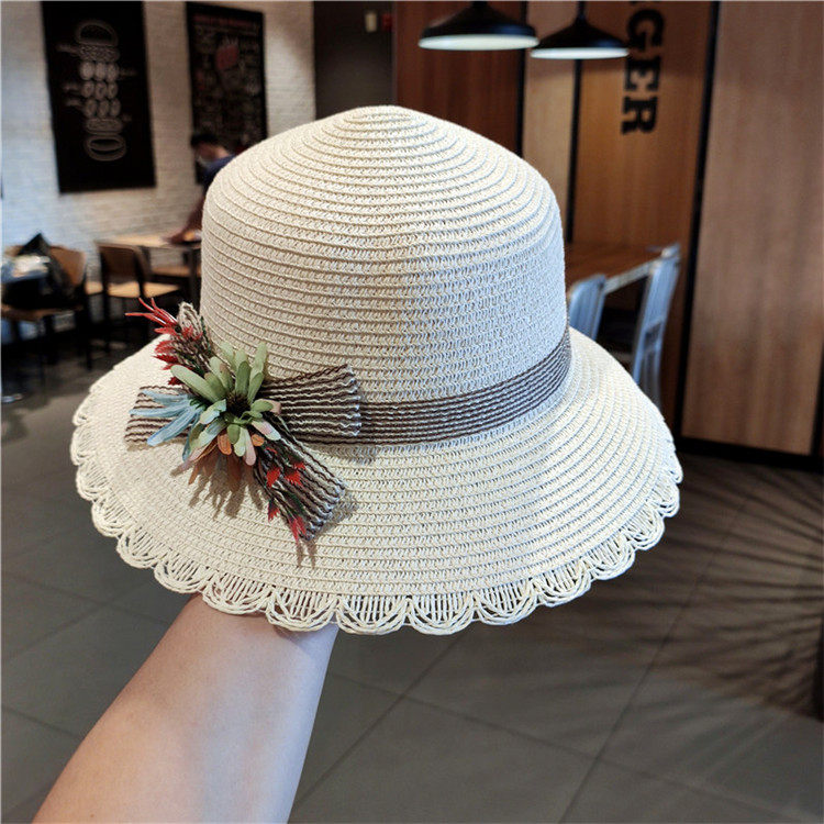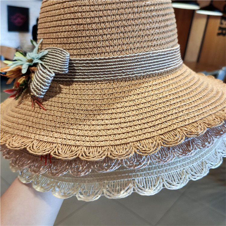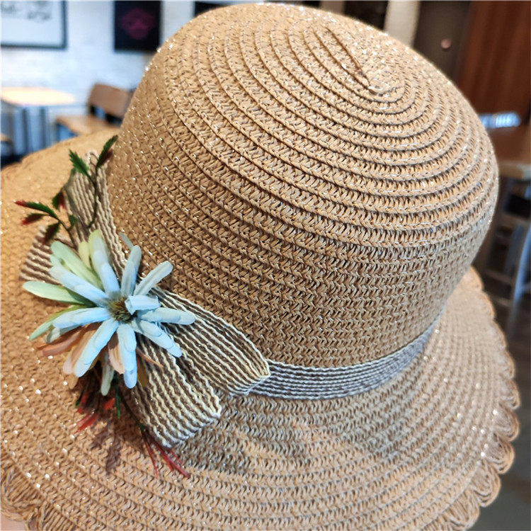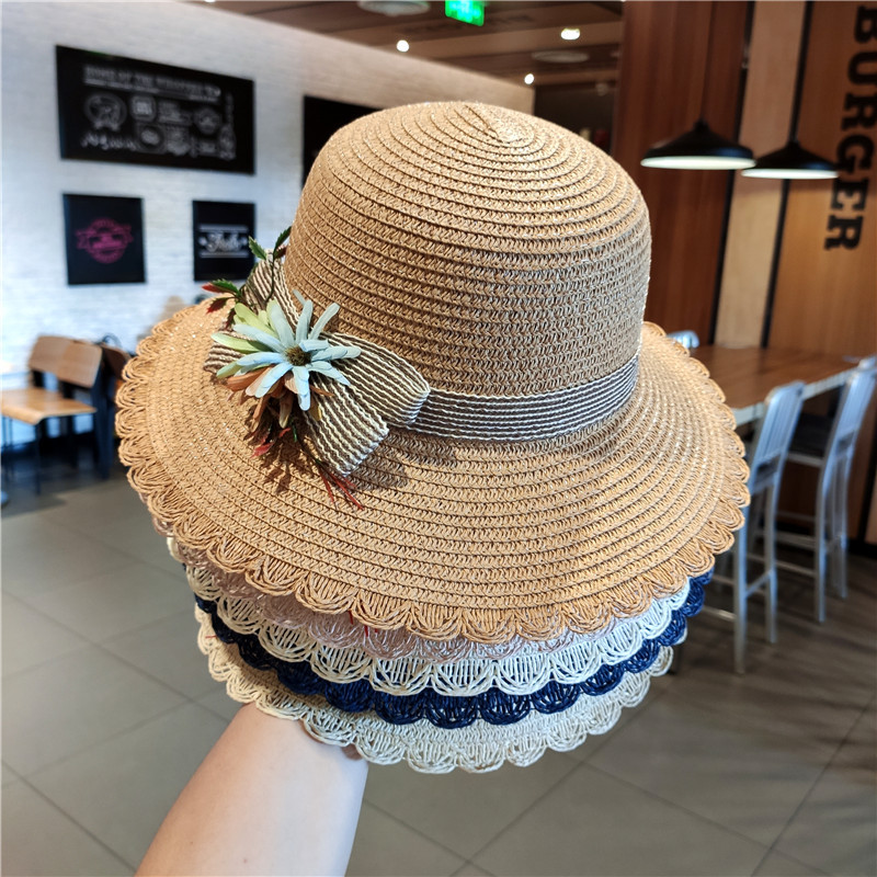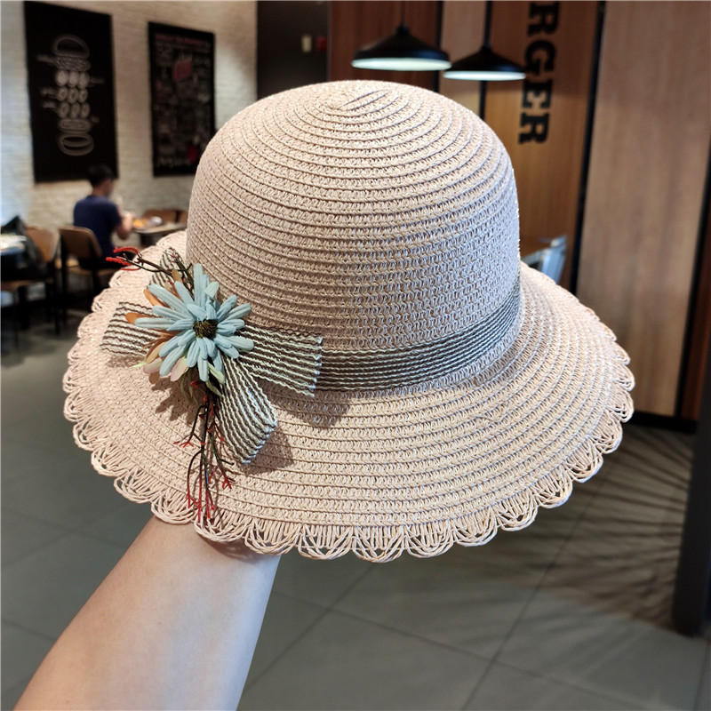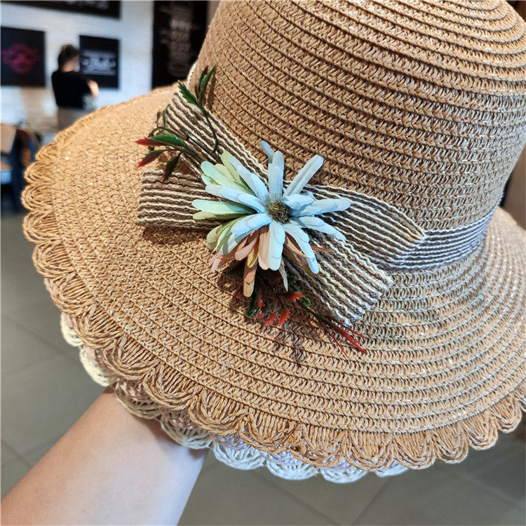 花朵草帽女夏季沙滩帽韩版可折叠出游海边防晒遮阳帽小清新太阳帽