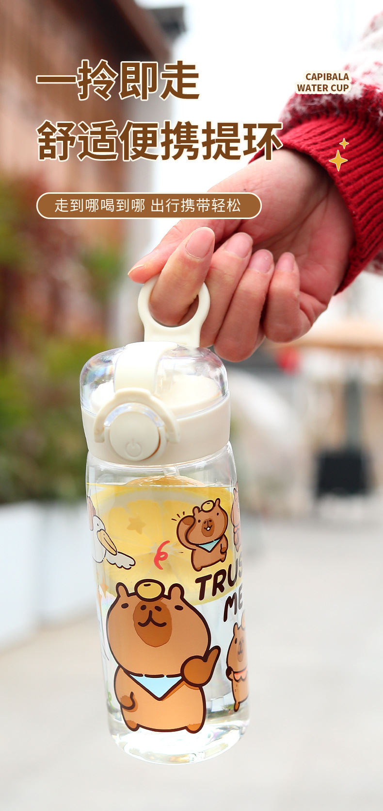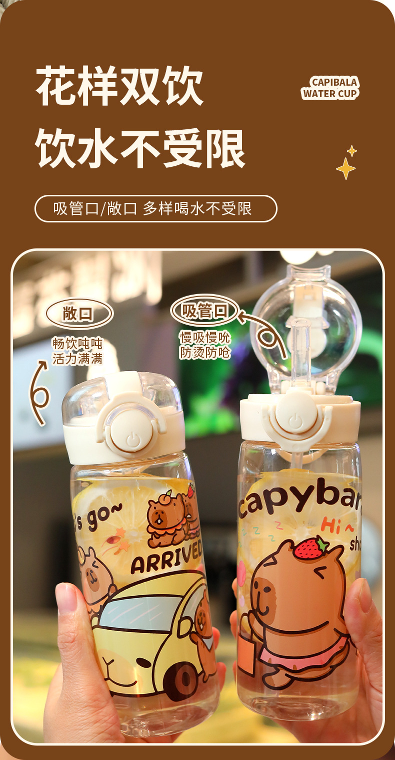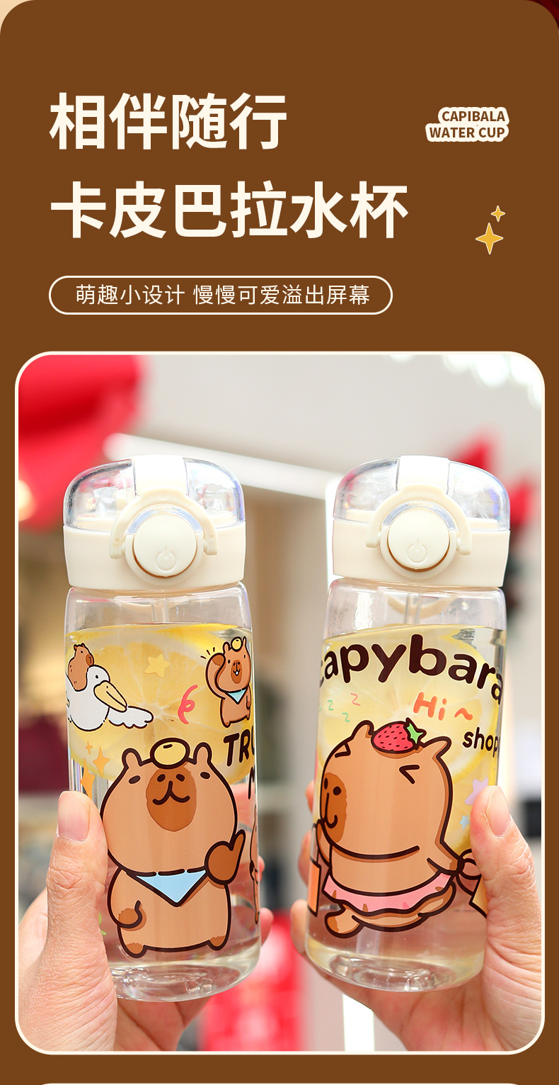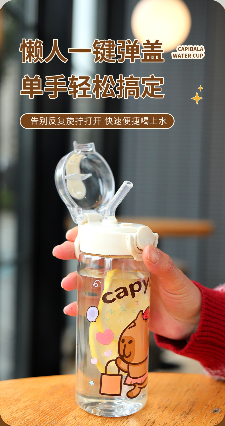 卡皮巴拉手提塑料杯可爱儿童水杯便携大容量吸管杯弹跳杯盖水杯