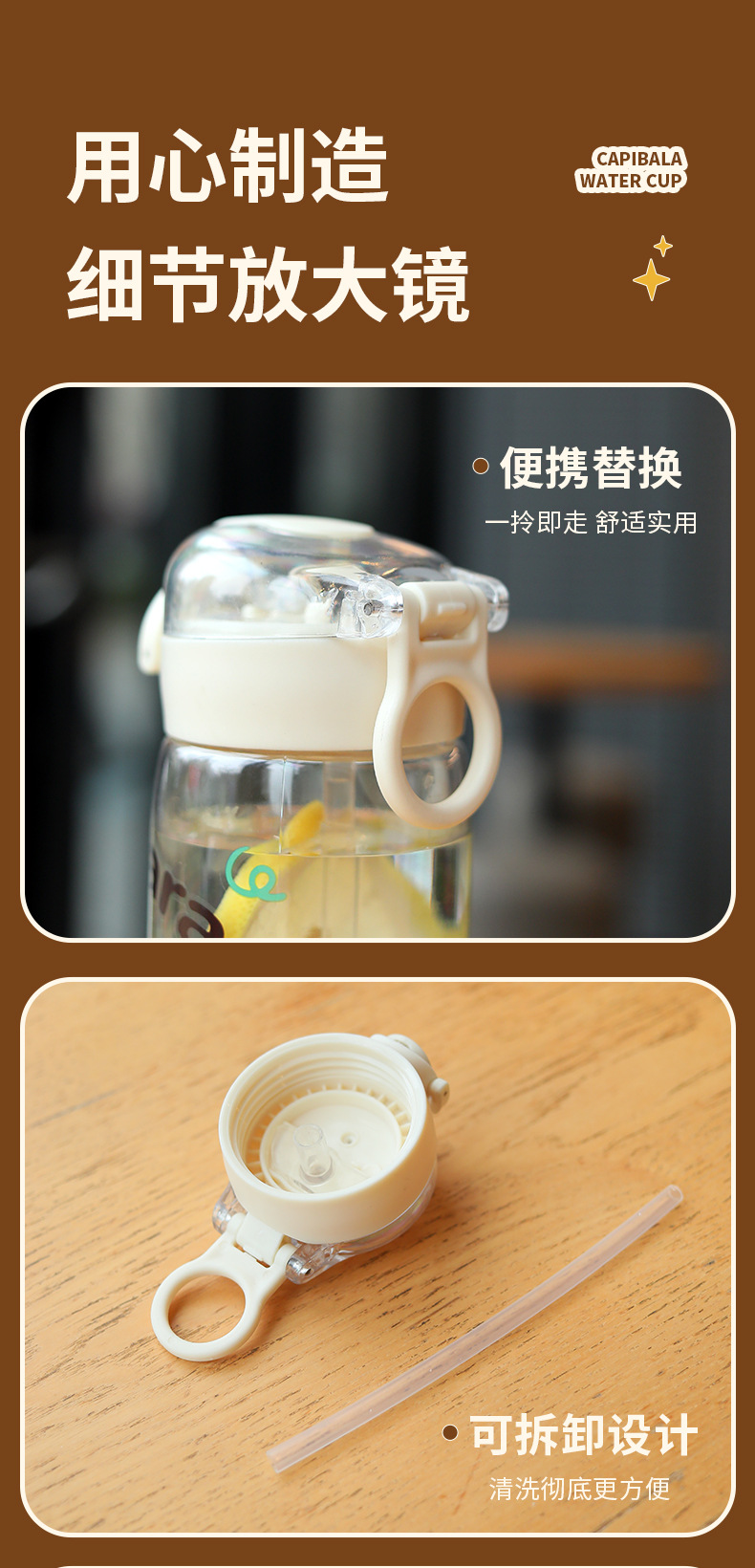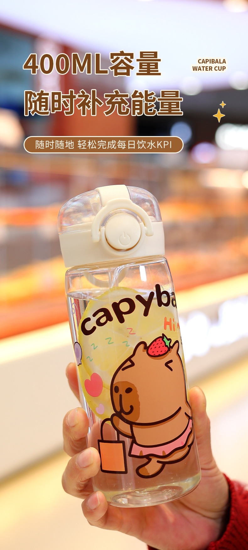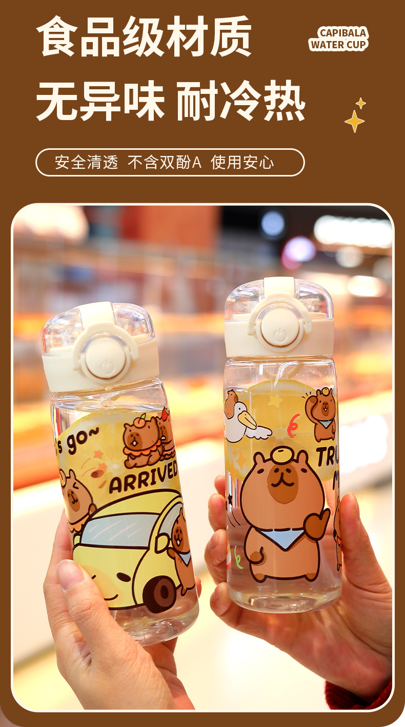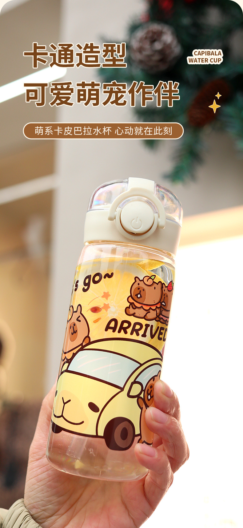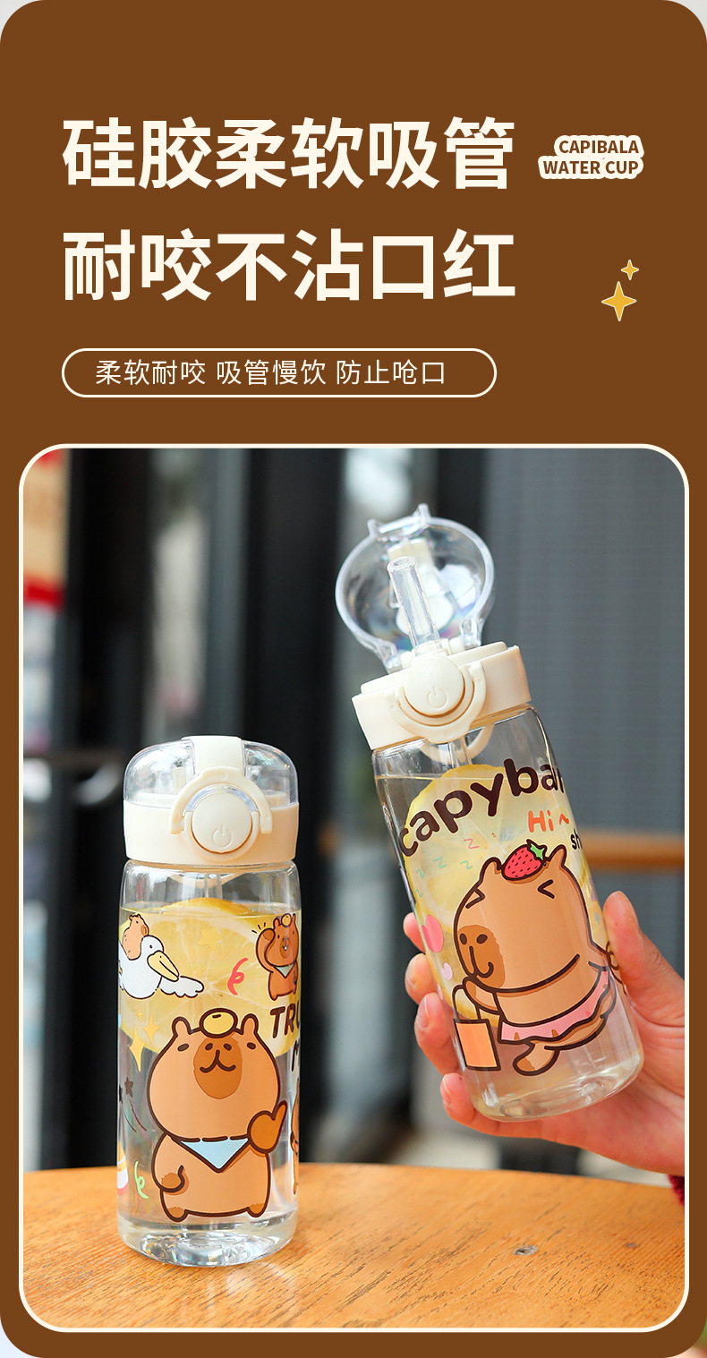 卡皮巴拉手提塑料杯可爱儿童水杯便携大容量吸管杯弹跳杯盖水杯