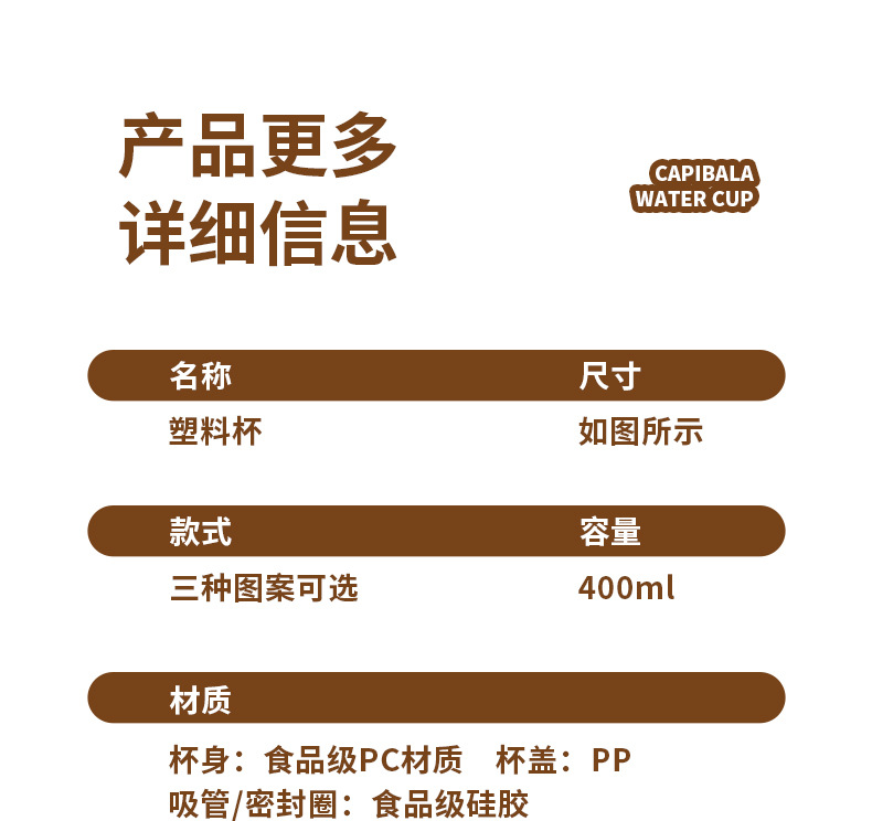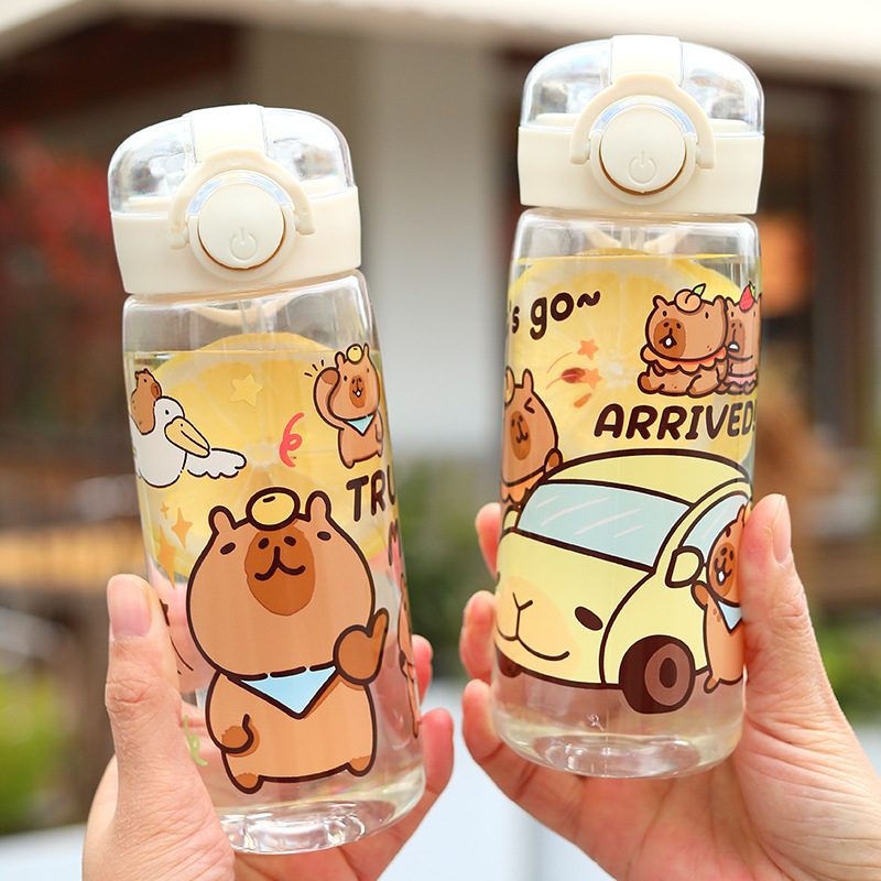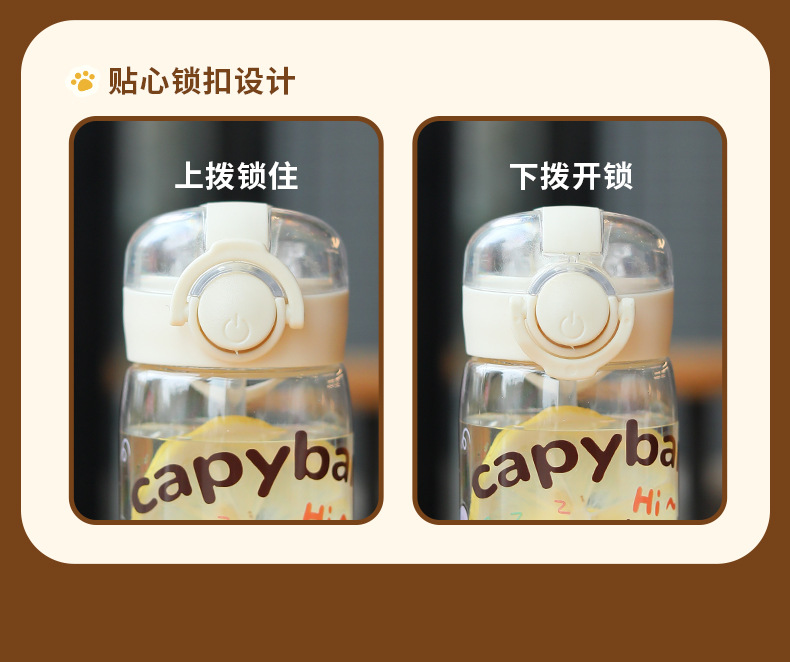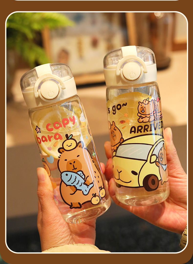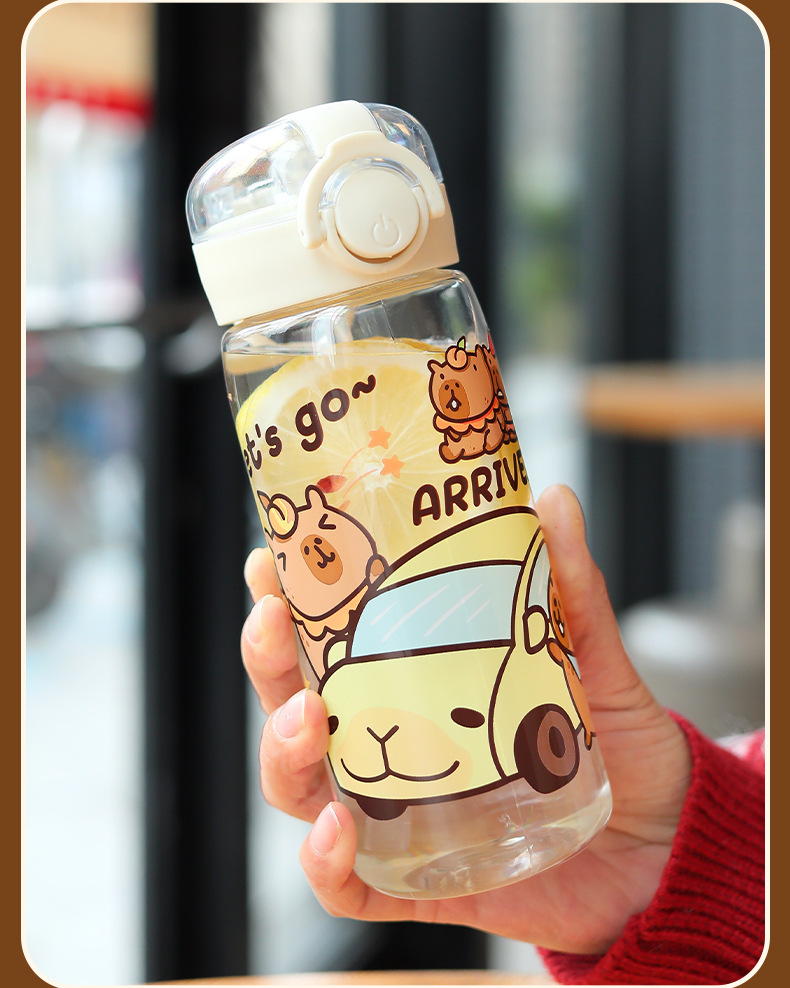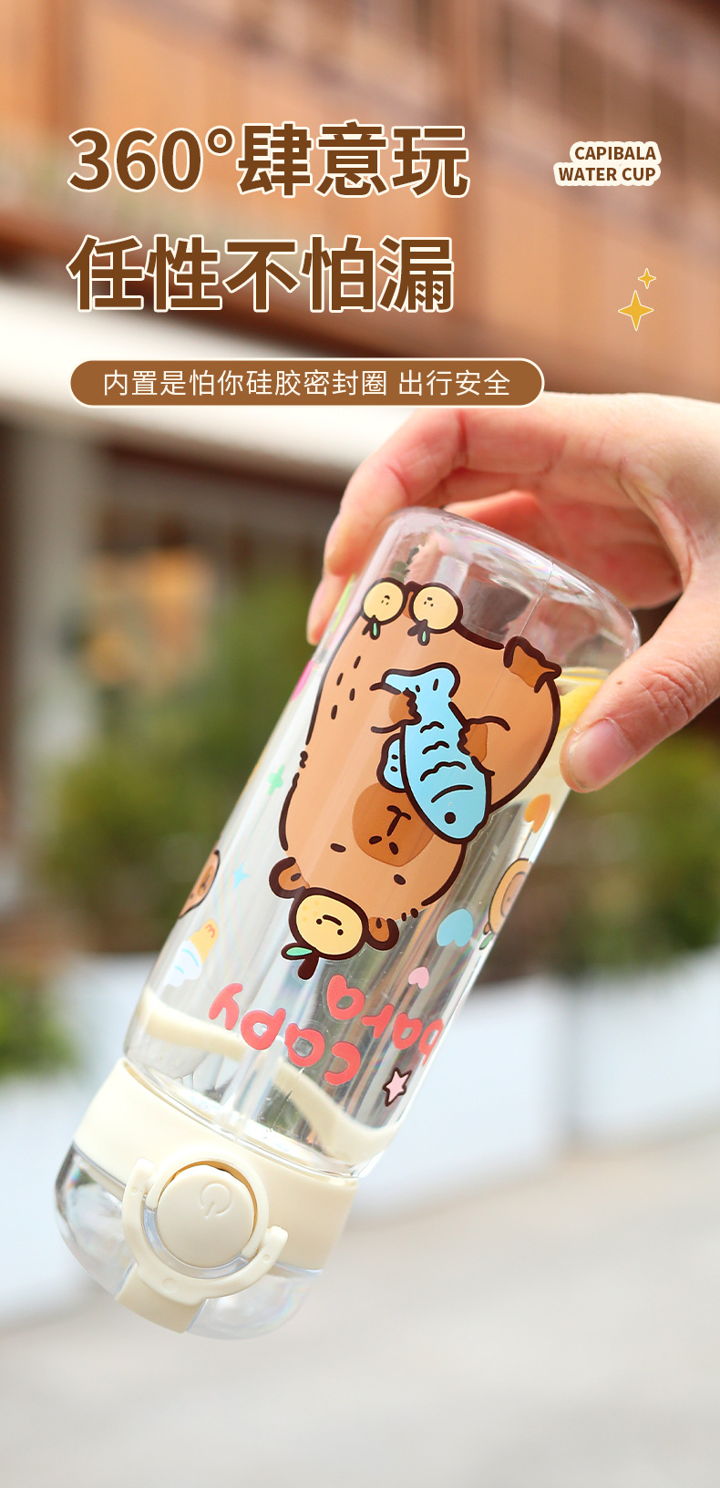 卡皮巴拉手提塑料杯可爱儿童水杯便携大容量吸管杯弹跳杯盖水杯