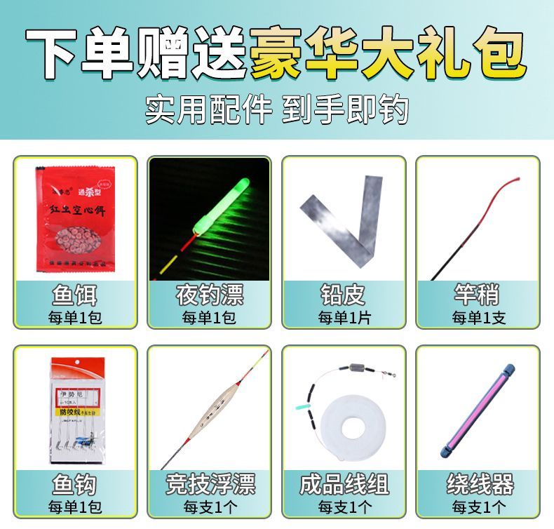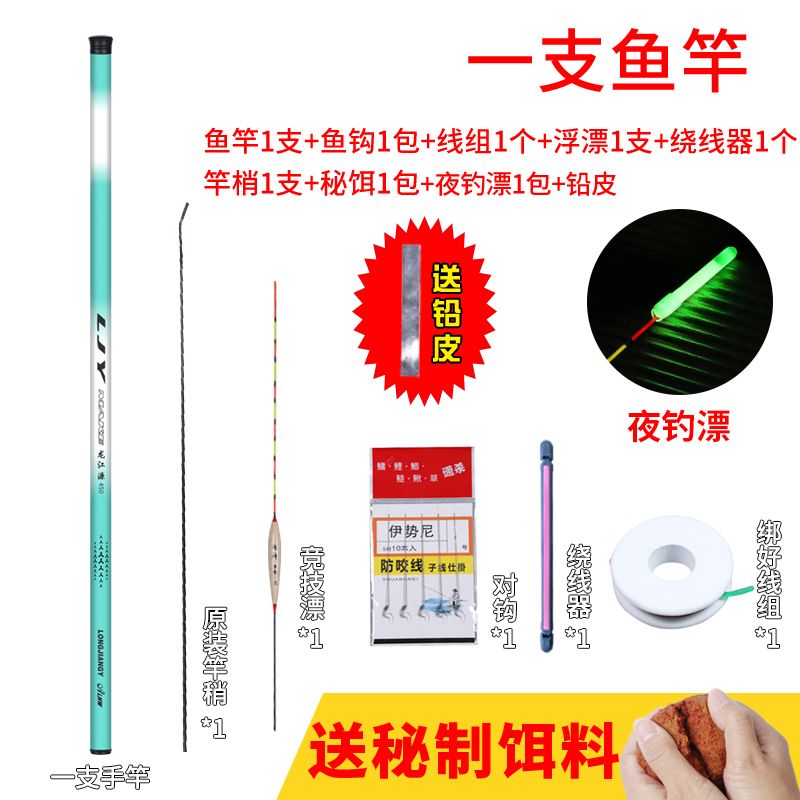 | single [4.5 m] + hook line drift + light stick(单支【4.5米】+钩线漂+夜光棒) | USD $4.01 | 999999 piece available |