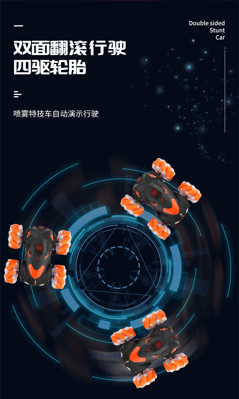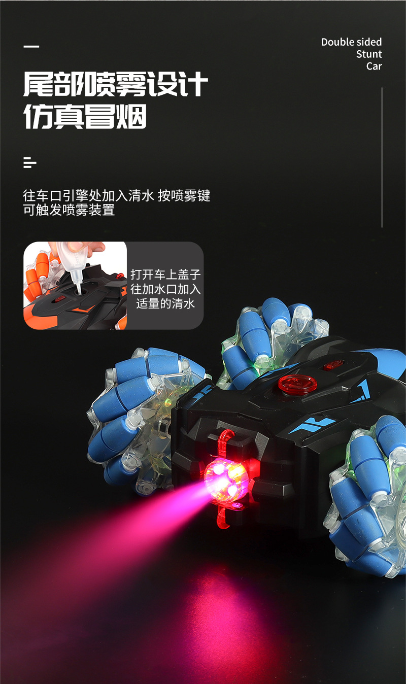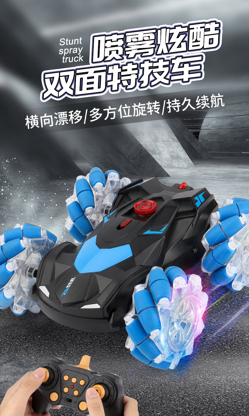 跨境2.4特技车双面灯光喷雾摇控车高速越野汽车儿童玩具车