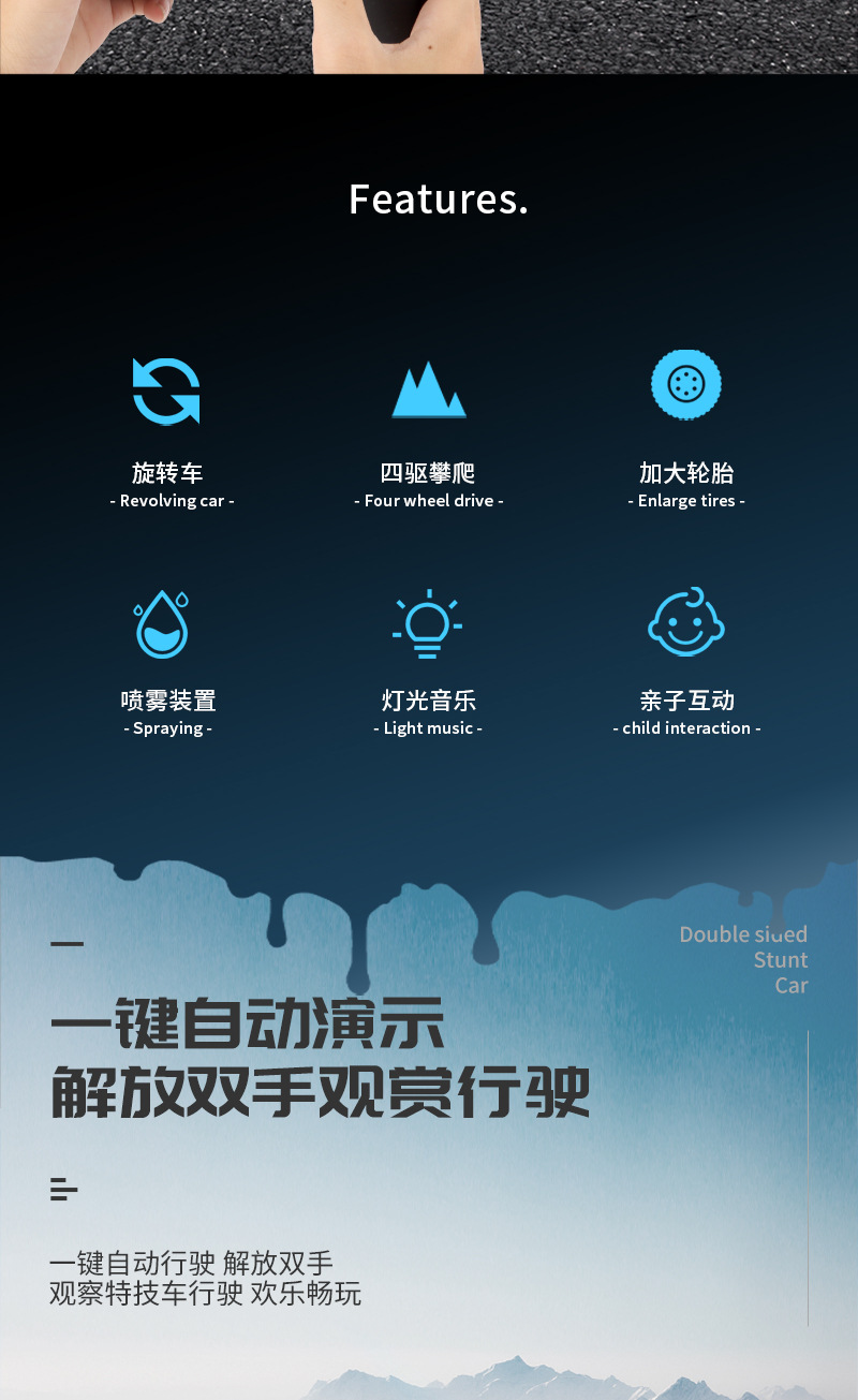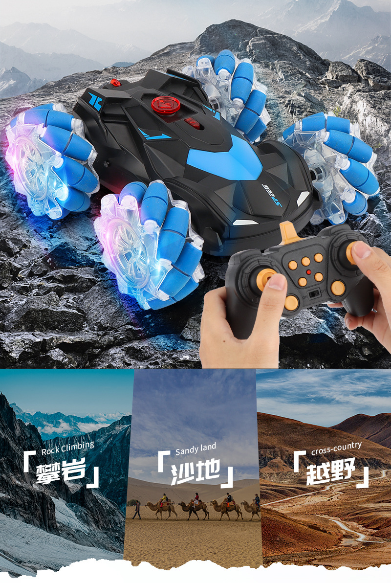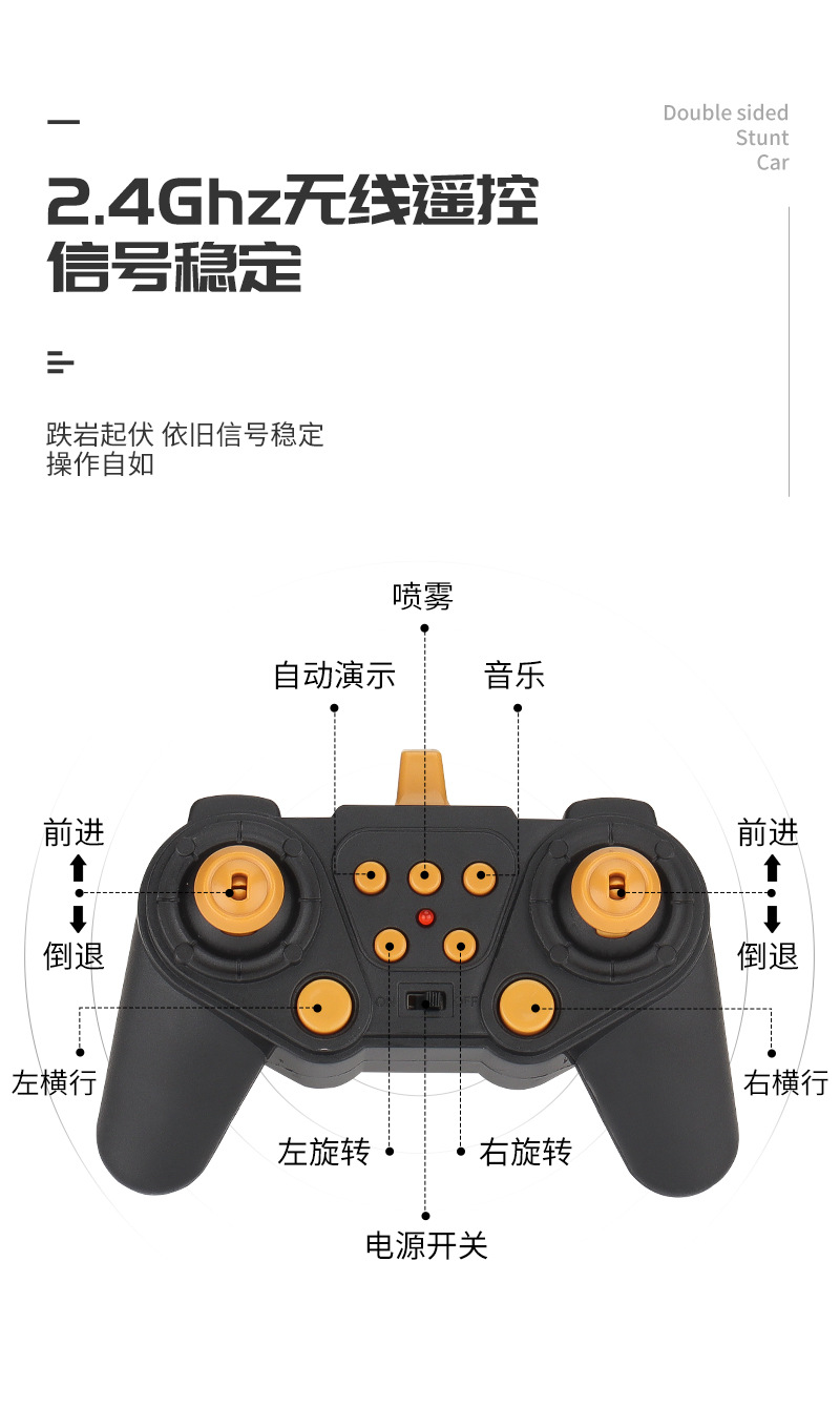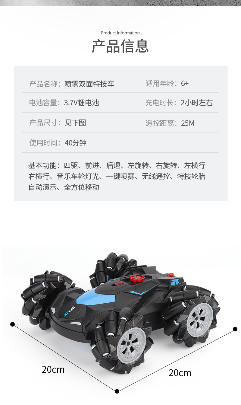 跨境2.4特技车双面灯光喷雾摇控车高速越野汽车儿童玩具车